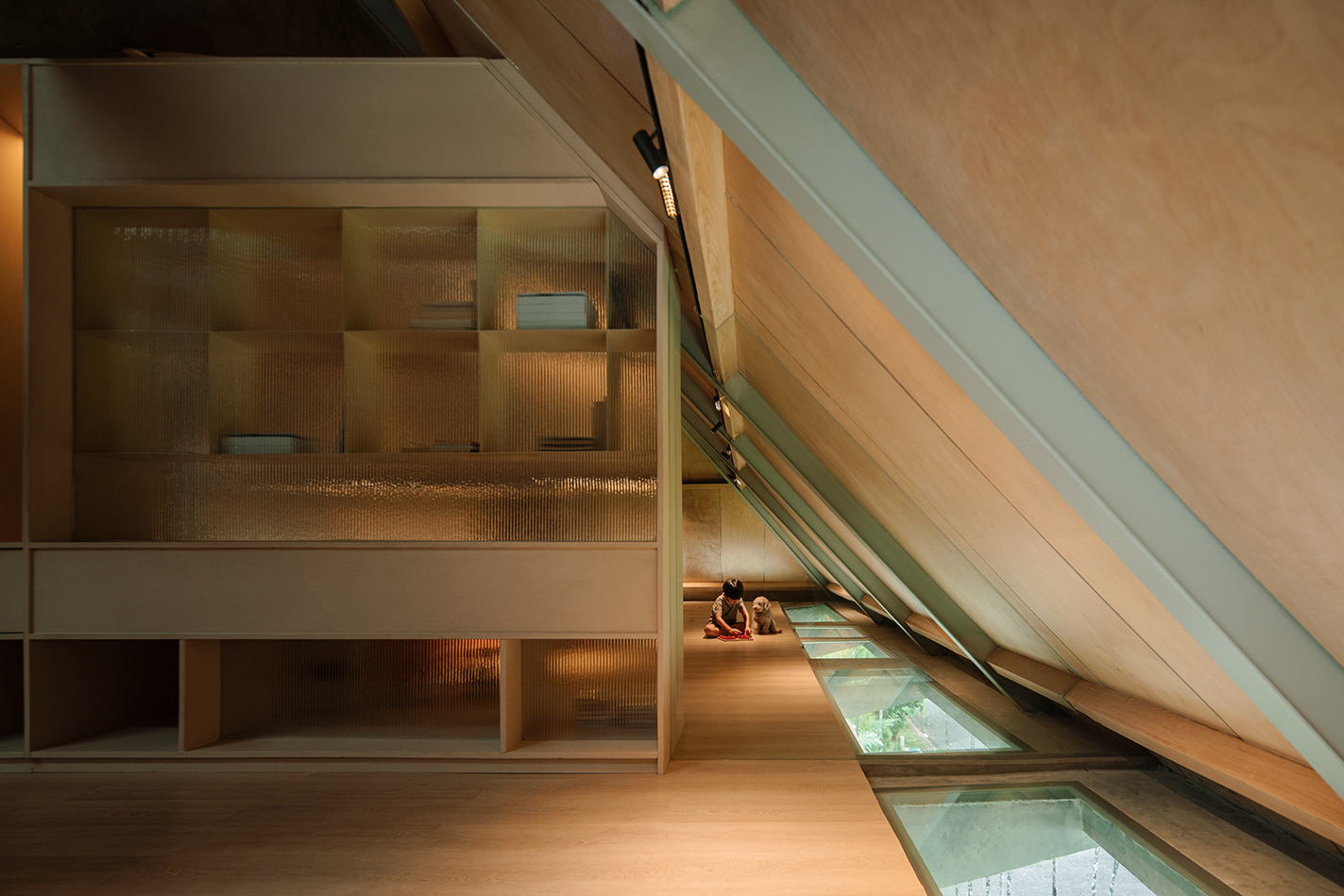 공간은 기하학적 형태와 목재 요소를 활용해 유연하고 모호한 성격을 띠며, 사용자의 변화에 따라 점차 채워질 수 있도록 여지를 남겼다. 이 집은 건축가 부부를 위한 사적인 안식처이자, 자연광과 풍경을 품은 조용한 거주 공간으로 완성되었다.