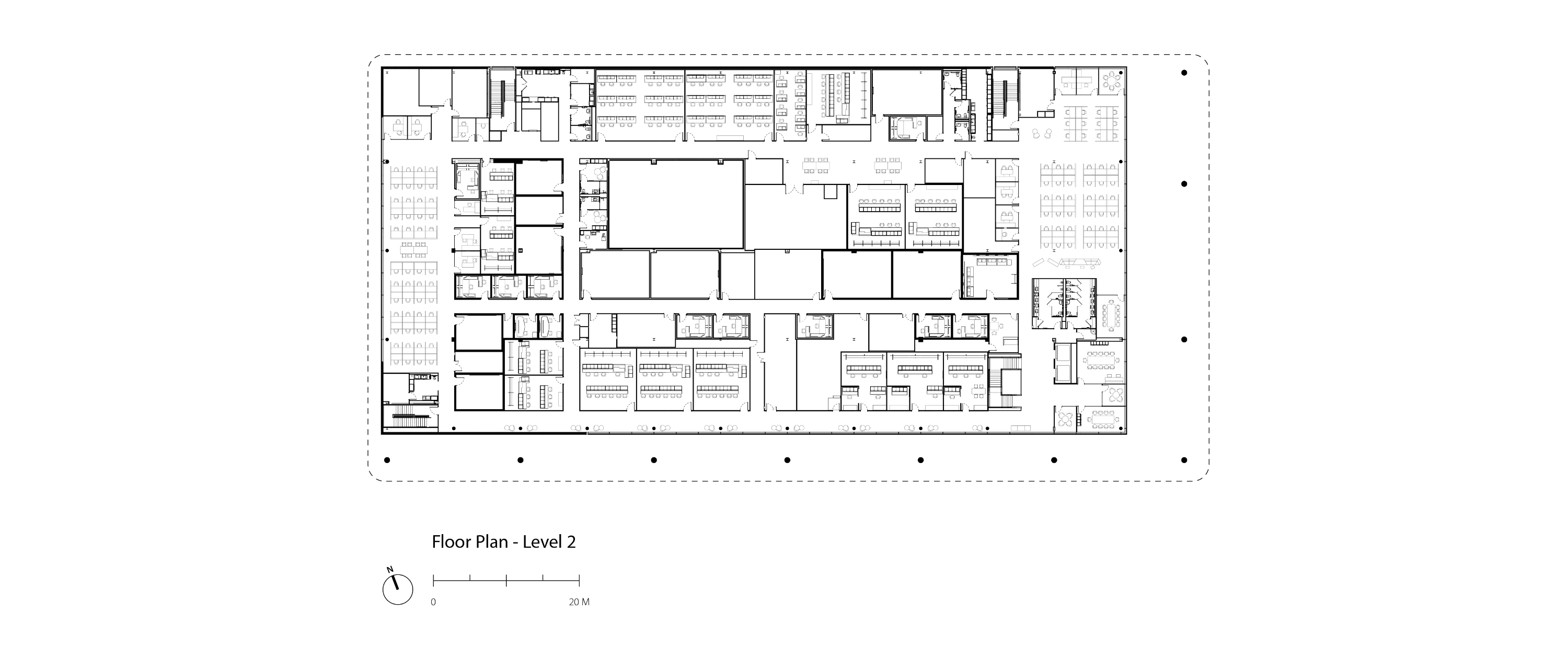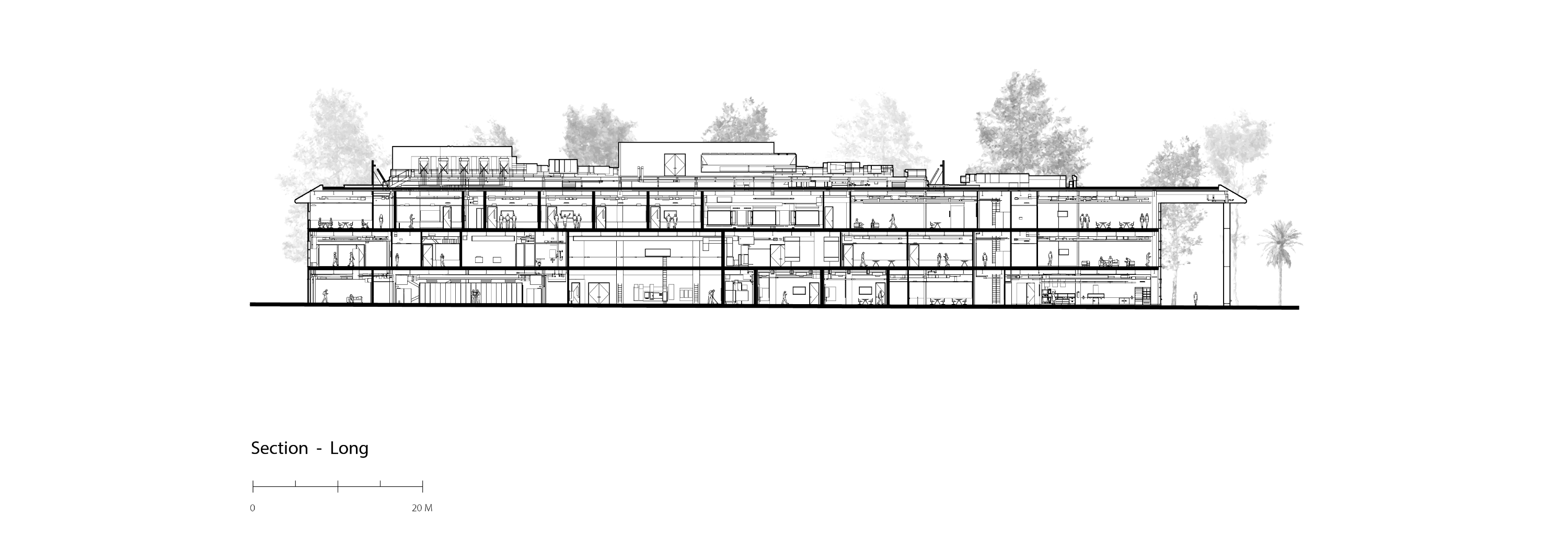 두 건물은 풍부한 조경과 인공 호수를 사이에 두고 시각적, 공간적으로 연결되어 있으며, 동일한 설계 언어로 구성되었다. 스튜디오 건물은 남측과 동측 입면에 깊은 주랑과 큰 지붕 돌출부를 두어 햇빛을 차단하고 실내를 보호하며, 유리 입면을 통해 주변 경관과 캠퍼스를 조망할 수 있도록 했다.