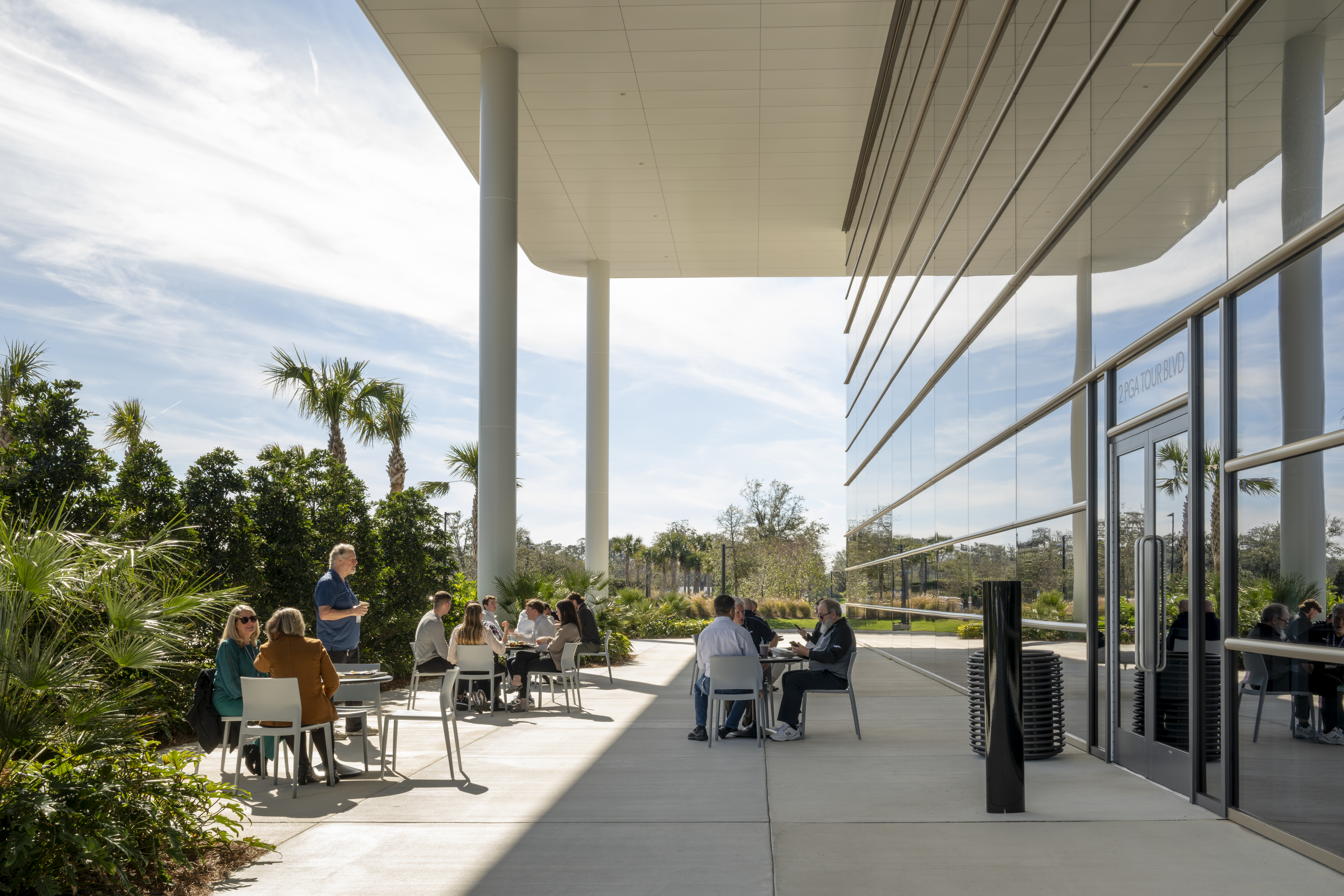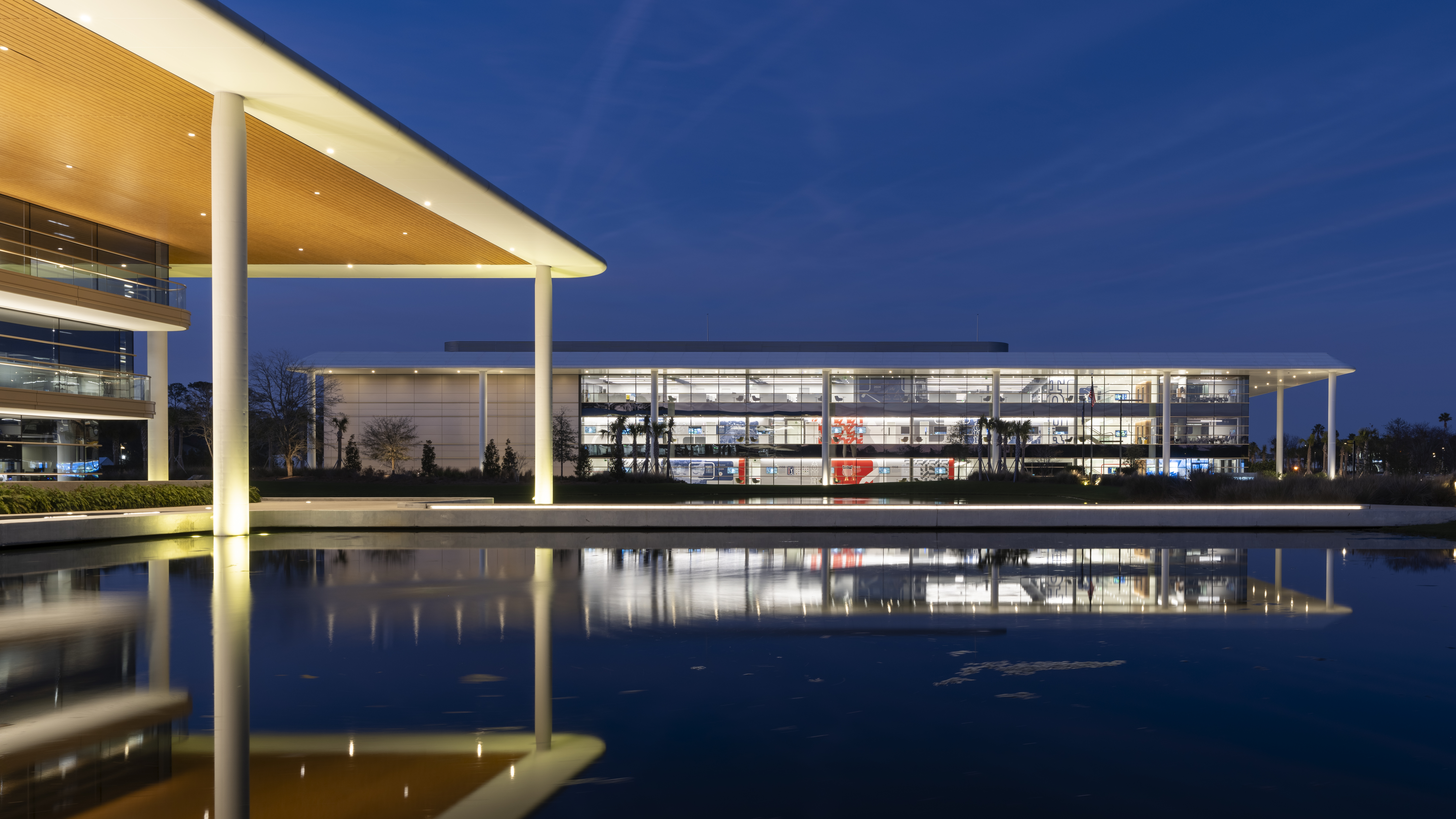 건물은 세 층으로 구성되며, 영상 제작실, 음향 제어실, LED 스튜디오, 골프 영상 아카이브, 카페와 야외 좌석 공간 등이 배치되었다. 본사와는 산책로로 직접 연결되어 있으며, 외부 재료는 흰색 금속, 콘크리트, 유리 등으로 통일감을 주도록 설계되었다. 유연한 내부 구성과 넓은 개방감을 바탕으로, PGA 투어의 콘텐츠 제작과 전달 기능을 수행하는 중심 공간으로 완성되었다.