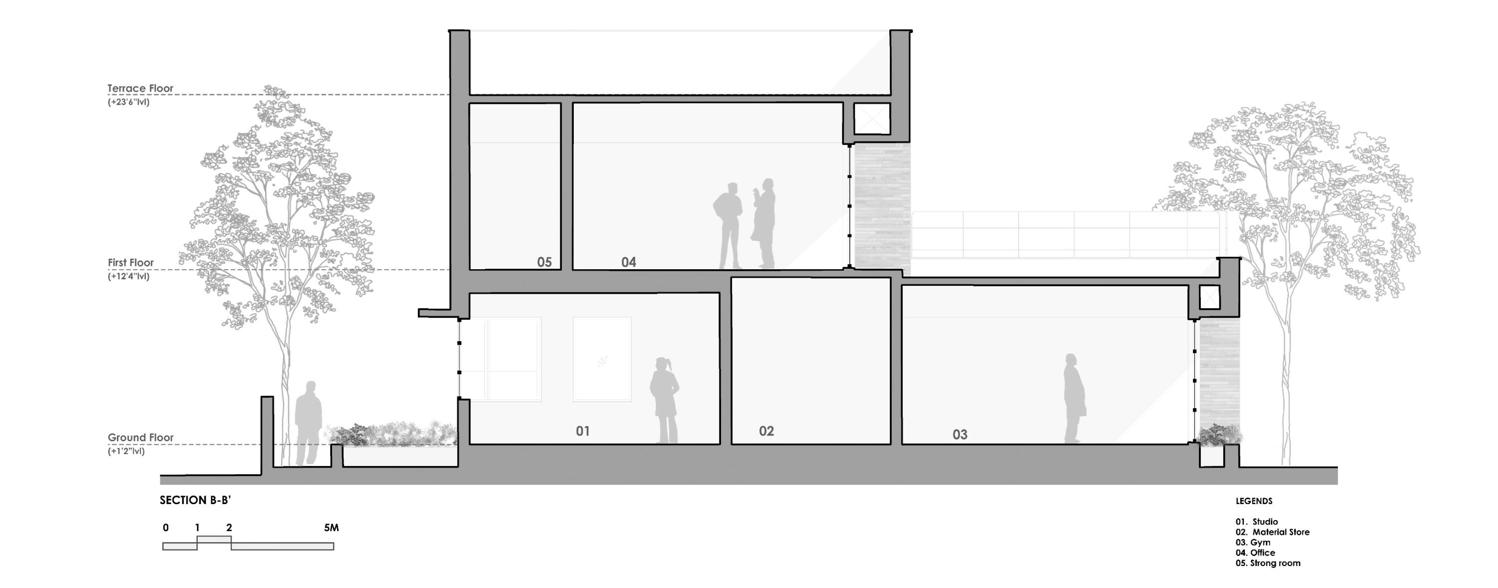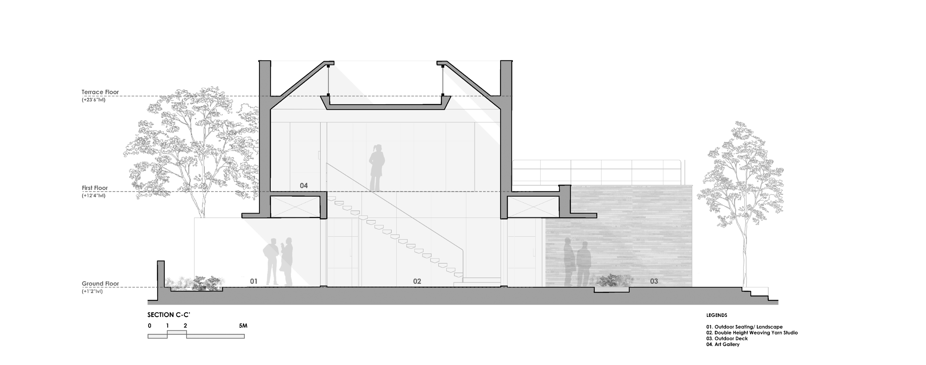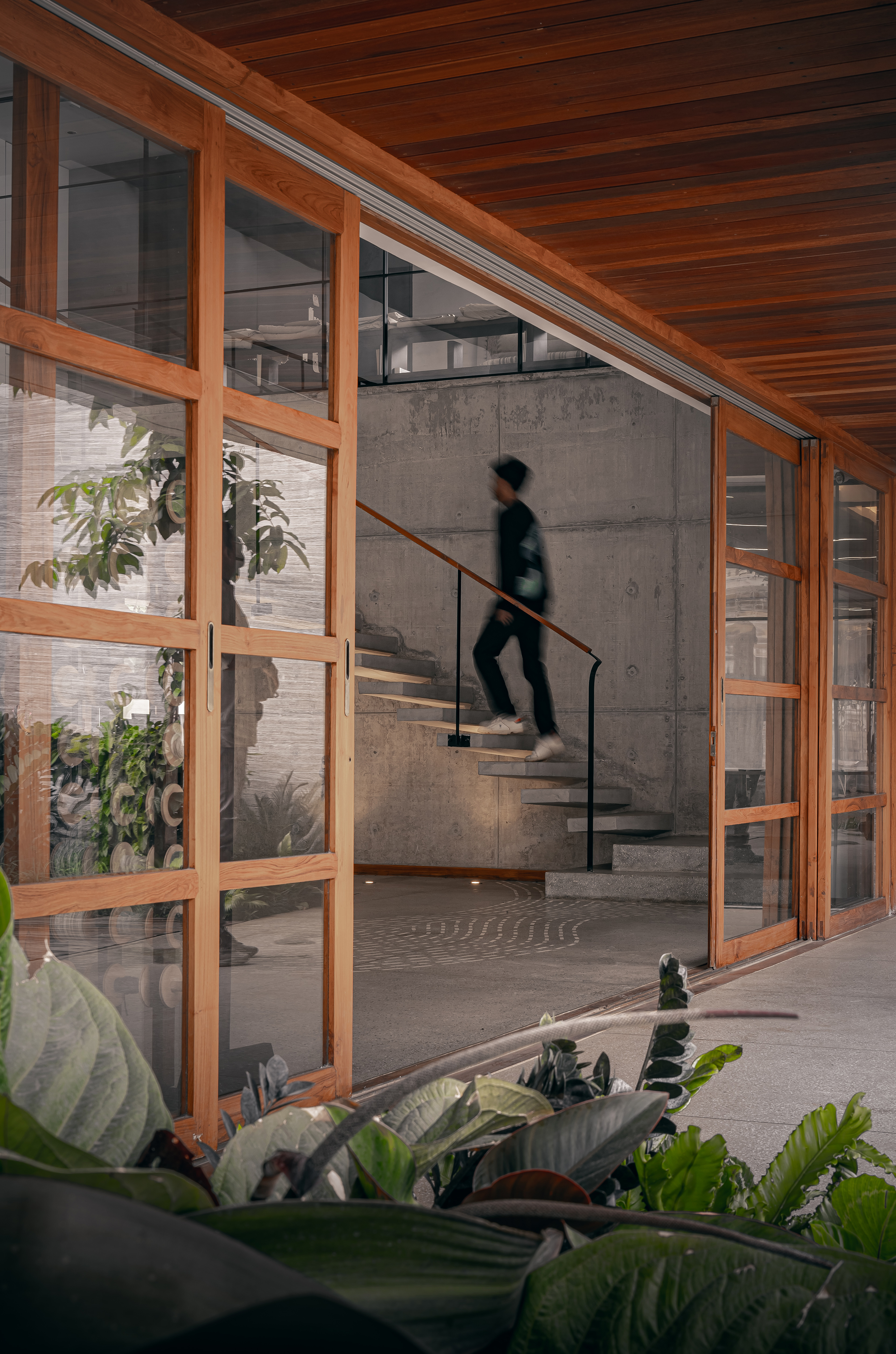 내부는 곳곳에 천창이 설치되어 부드러운 자연광이 스며들고, 외부는 열대 식물과 캔틸레버 데크로 풍부하게 조경되어 주변 환경과 조화를 이룬다. 이 스튜디오는 하나의 건축물이자 창작의 일부로, 예술과 공간이 조용한 대화를 이어가는 장소로 완성되었다.