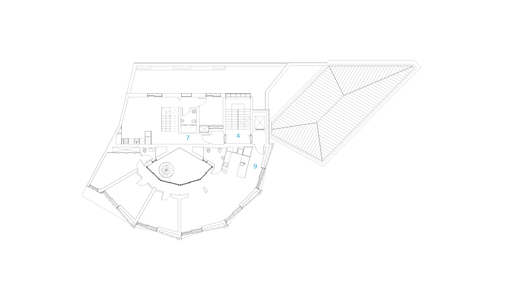 외관은 공공성을 강조하여 마치 학교나 갤러리를 연상시키는 시각적 특징을 지니며, 동시에 거주자의 프라이버시를 보호한다. 거대한 창과 강렬한 외관은 도시의 다양한 사건들이 동시다발적으로 펼쳐지는 무대와 같은 역할을 하며, 이를 통해 건축이 사회적, 개인적, 집단적인 존재 방식을 탐구하는 장치가 될 수 있음을 보여준다.