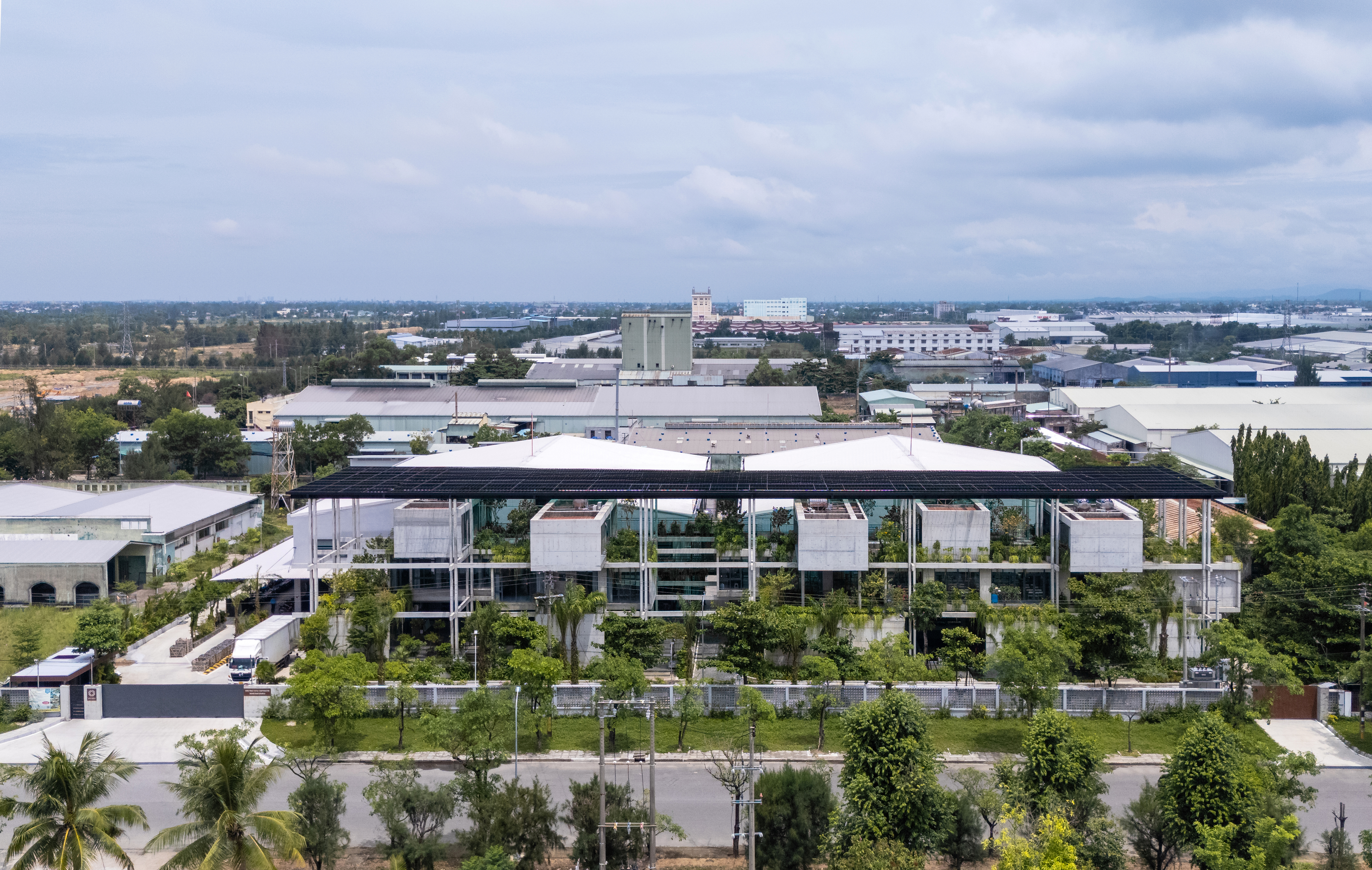 건축은 전통 직조기의 목조 프레임에서 착안한 시적인 형태로 구성되었다. 콘크리트 기둥과 보 구조 위에 배치된 사무실 매스들은 서로 엇갈리며 배치되어 마치 직조기 위에서 떠 있는 듯한 인상을 준다. 이는 구조적 안정성과 시각적 아름다움이 조화를 이루는 설계 방식으로, 기능성과 조형미를 동시에 갖춘 공간을 완성한다.