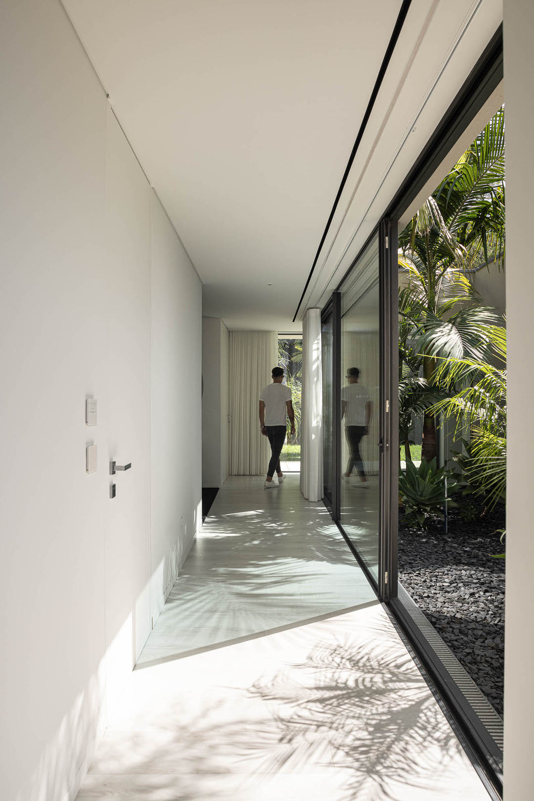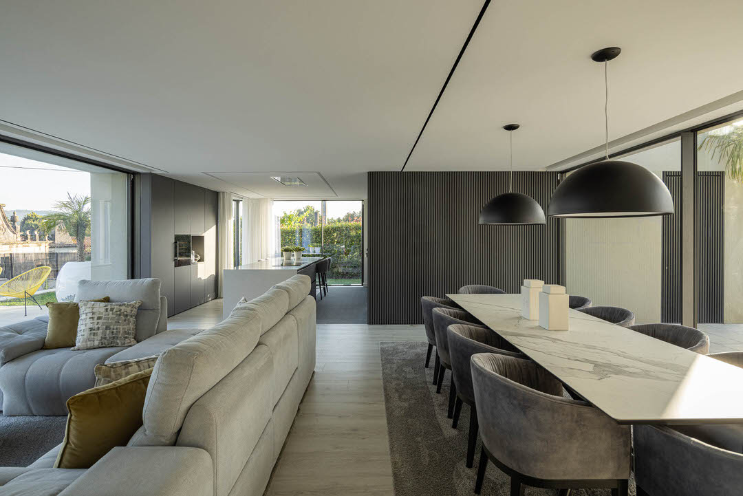 빌라는 단층 구조로 구성되며, 기능성과 편안함을 극대화하도록 신중하게 설계된 두 개의 주요 볼륨으로 나뉜다. 넓은 창문이 설치된 공용 공간은 자연 채광을 극대화하고 정원과 수영장의 탁 트인 전망을 제공하며, 개방형 공간의 개념을 드러낸다.