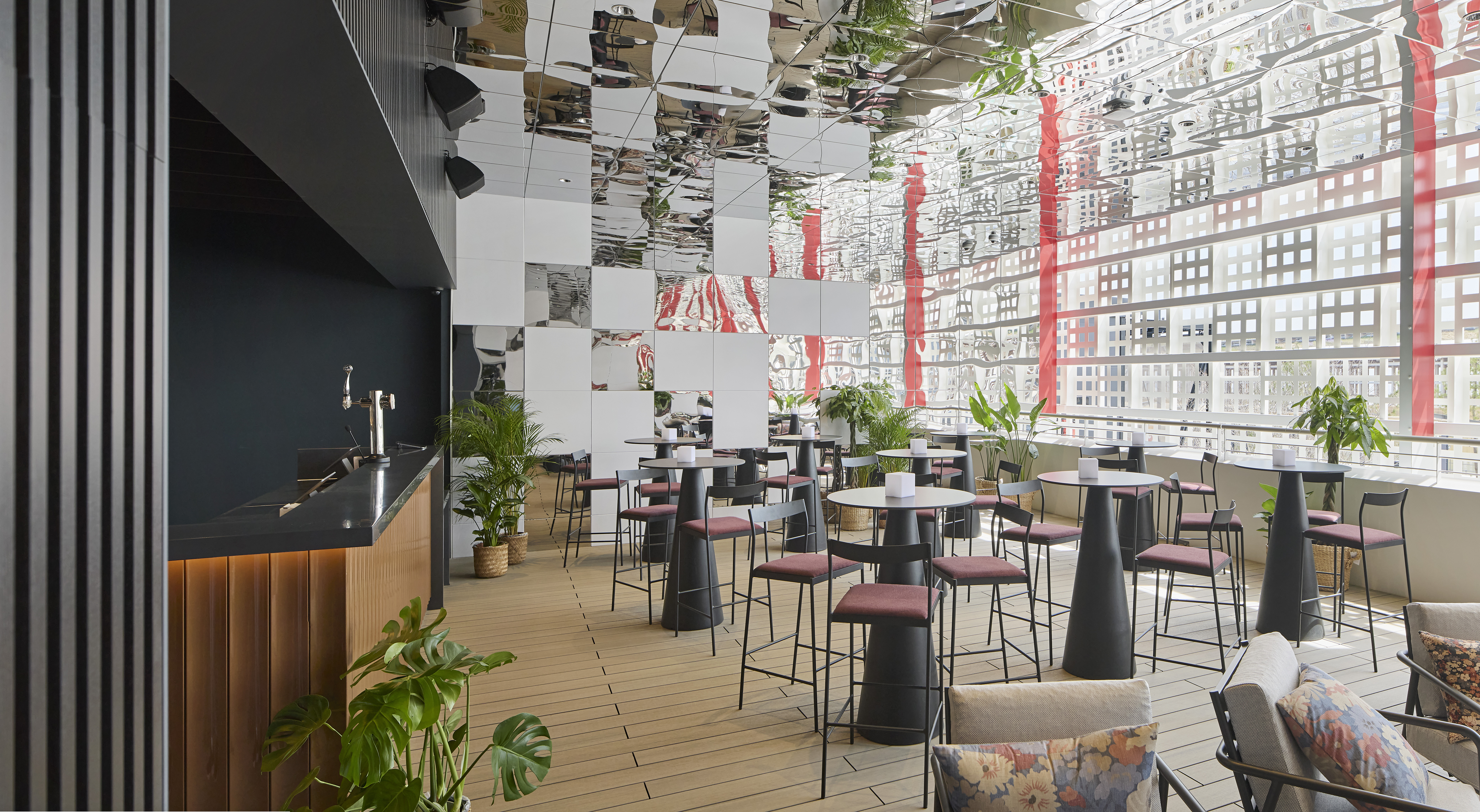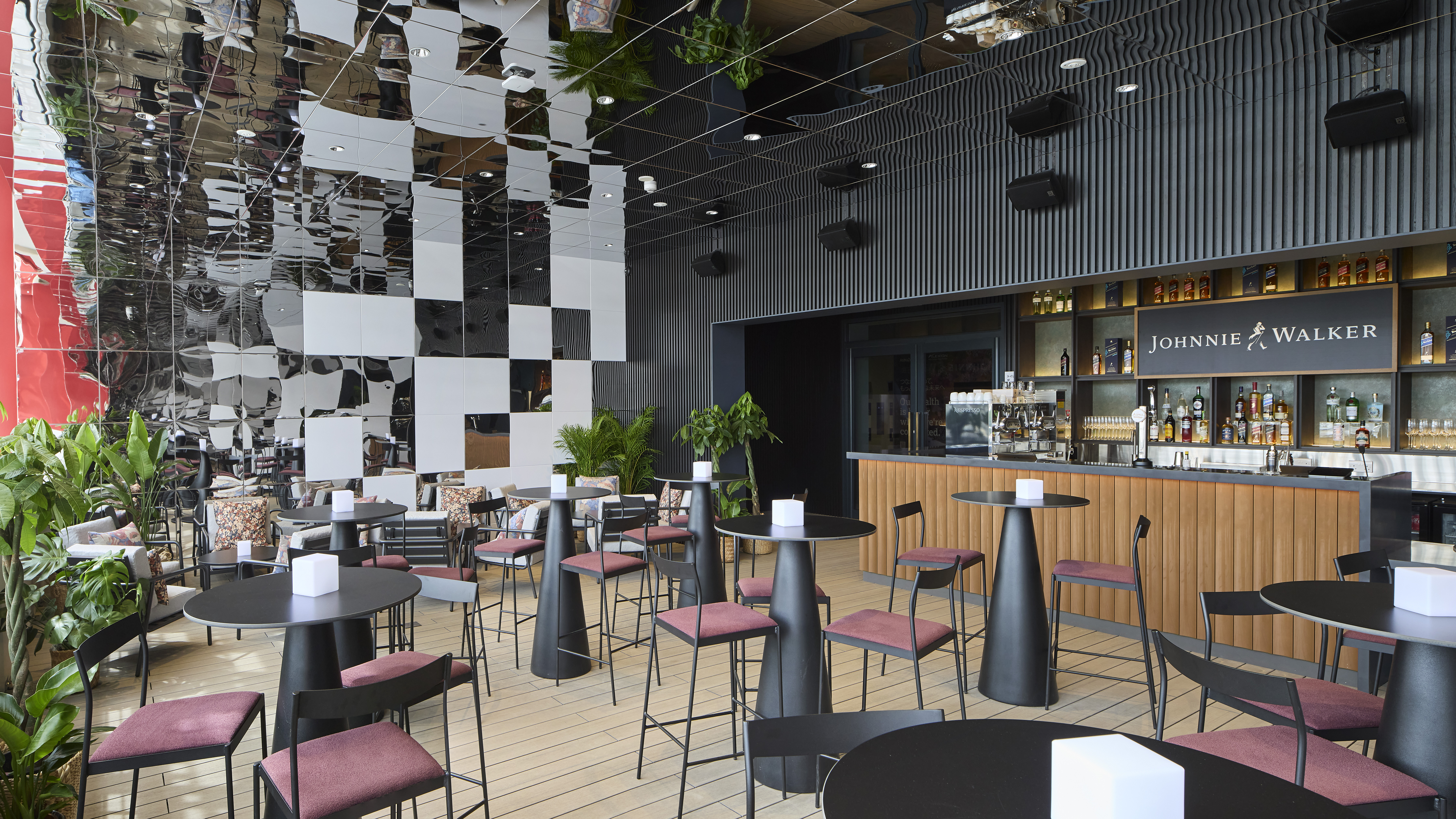 2층에는 티룸과 레스토랑이 위치해 있으며, 클래식한 브리티시 무드와 리버티 벽지가 어우러진 공간에서 다양한 영국 요리를 제공한다. 루프탑에는 ‘조니워커 바’가 자리하고 있으며, 수변 전망과 함께 유쾌한 분위기를 즐길 수 있는 공간으로 꾸며졌다. 미러 천장과 벽면은 파사드의 픽셀 조명을 반사하여 극적인 분위기를 연출한다. 최상층에는 외교 사절단 및 글로벌 리더들을 위한 호스피탤리티 스위트와 회의실이 마련되어 있으며, 티타임부터 식사까지 영국 특유의 환대 문화를 경험할 수 있다.