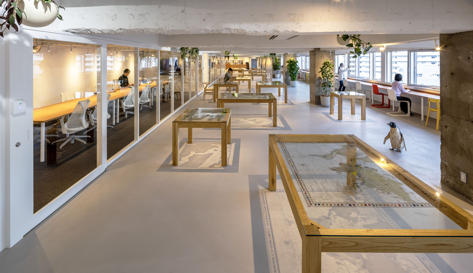 이 프로젝트는 TBWA 하쿠호도의 자회사로 새롭게 설립된 Earth Centric Design Lab(ECD)의 사무실 내부 리노베이션으로, 기존의 인간 중심 디자인에서 지구 중심 디자인으로의 전환을 목표로 한 공간입니다. 건축적 관점에서 핵심은 ‘지구 친화적’ 리노베이션에 있습니다. 기존 사무실에서 나온 가구와 폐자재는 새 사무실 재사용, 다른 장소에서 재사용, 자원으로 재활용, 적절한 폐기 순으로 분류되었고, 약 95.5%의 자재를 재사용하였습니다. 기존 바닥은 철거하지 않고 레벨링 페인트를 덮었고, 벽돌 벽은 그대로 두고 석고보드로 마감하여 폐기물 발생을 최소화했습니다. 조명, 페인트, 카펫 타일, 가구 등도 이전 사무실 또는 폐자재에서 가져와 재활용했으며, 신규 구매 시에도 환경 영향을 고려했습니다.