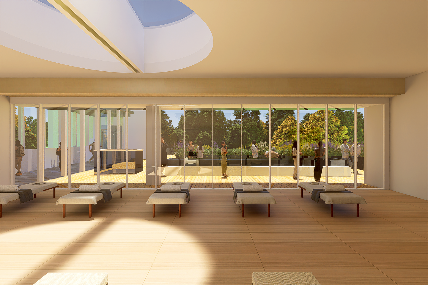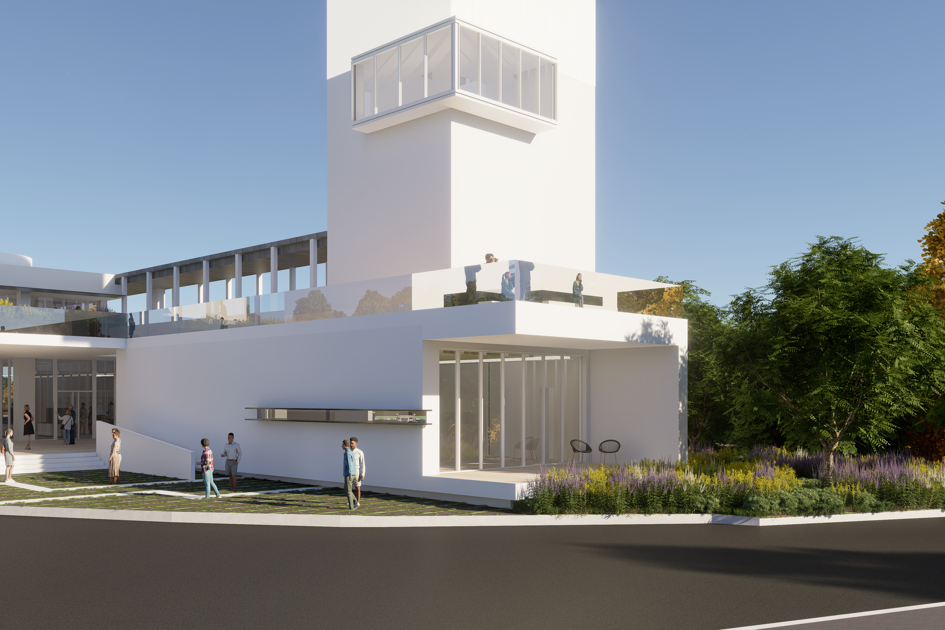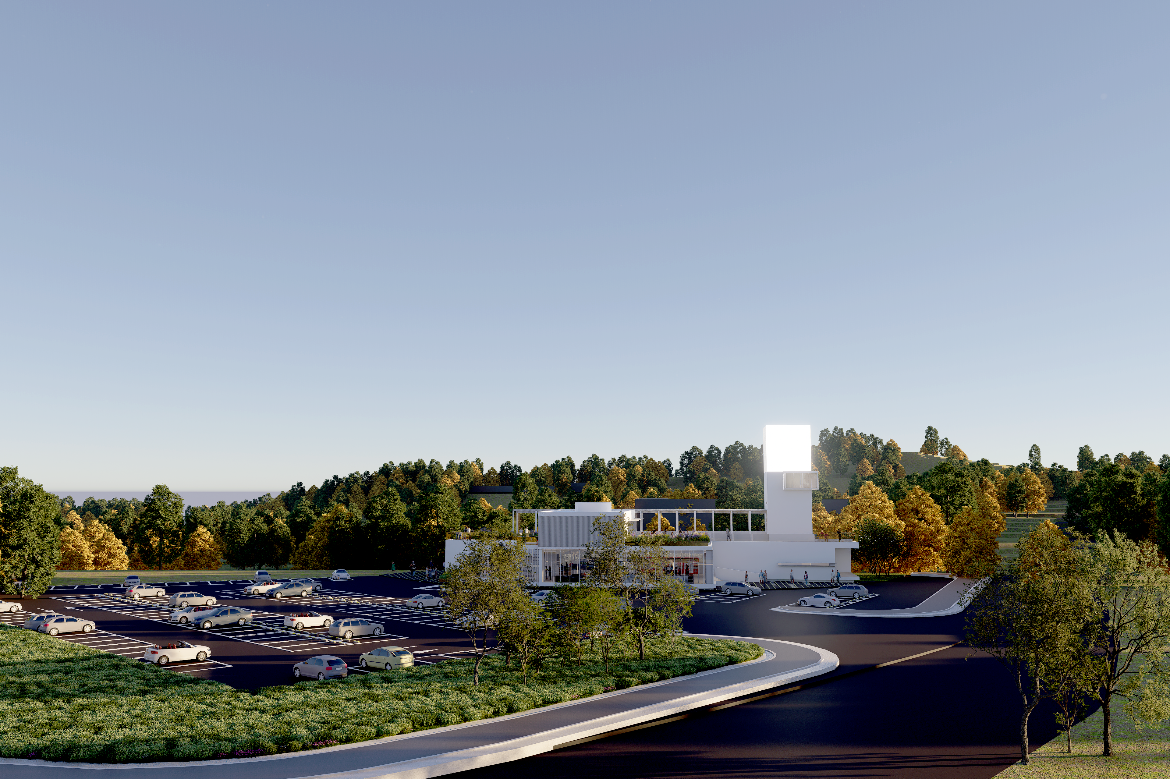 장방향으로 긴 건축은 주변을 다양한 방식으로 조망하기 위한 장소의 건축이다. 보행진입로와 조망산책로의 두 축은 수평적 조형을 위한 아이디어이다. 또한 내부공간은 내·외부로 확장되어 더 많은 프로그램을 넣을수 있는 유연한 공간으로 만들어 진다.
