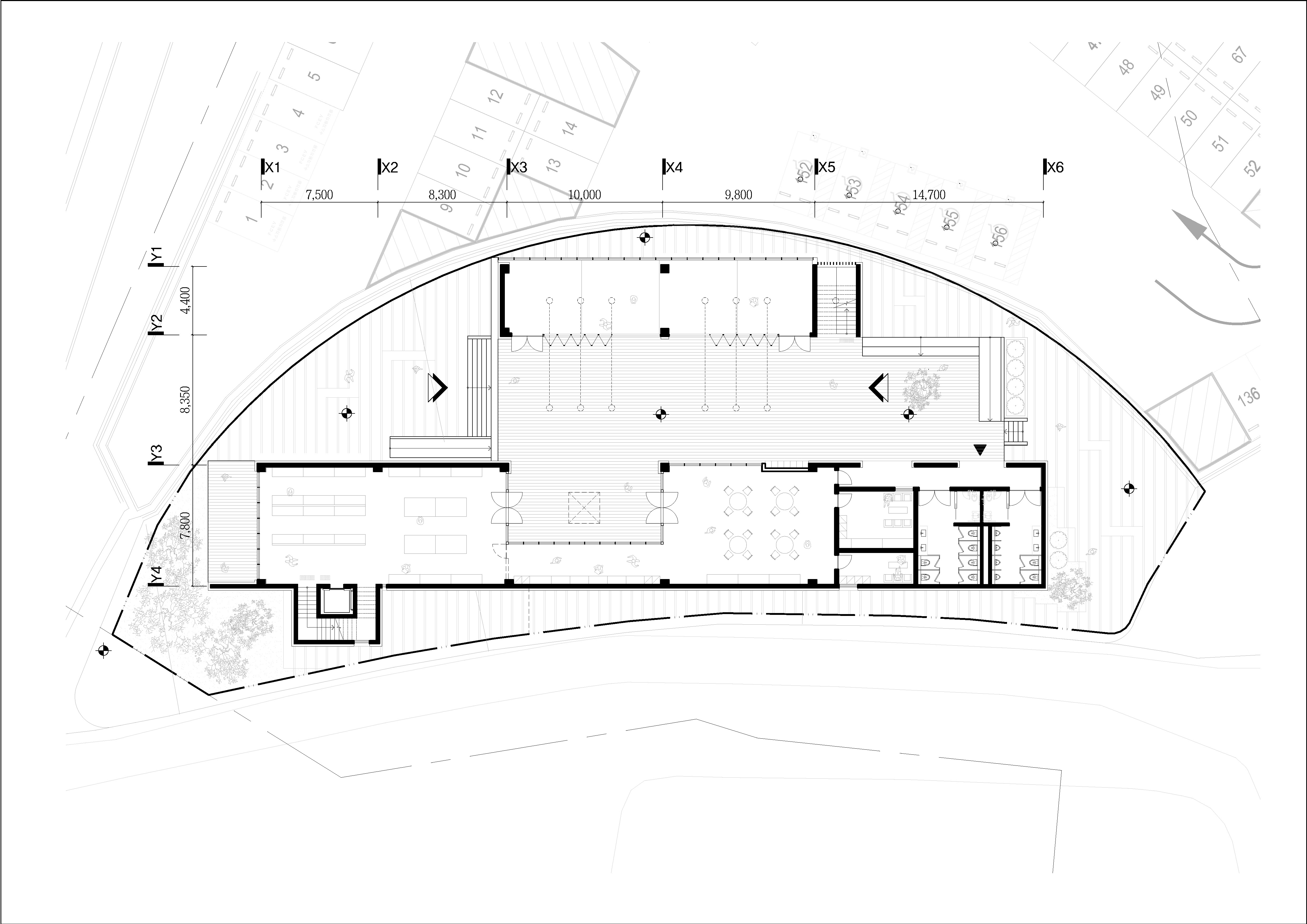 장방향으로 긴 건축은 주변을 다양한 방식으로 조망하기 위한 장소의 건축이다. 보행진입로와 조망산책로의 두 축은 수평적 조형을 위한 아이디어이다. 또한 내부공간은 내·외부로 확장되어 더 많은 프로그램을 넣을수 있는 유연한 공간으로 만들어 진다.