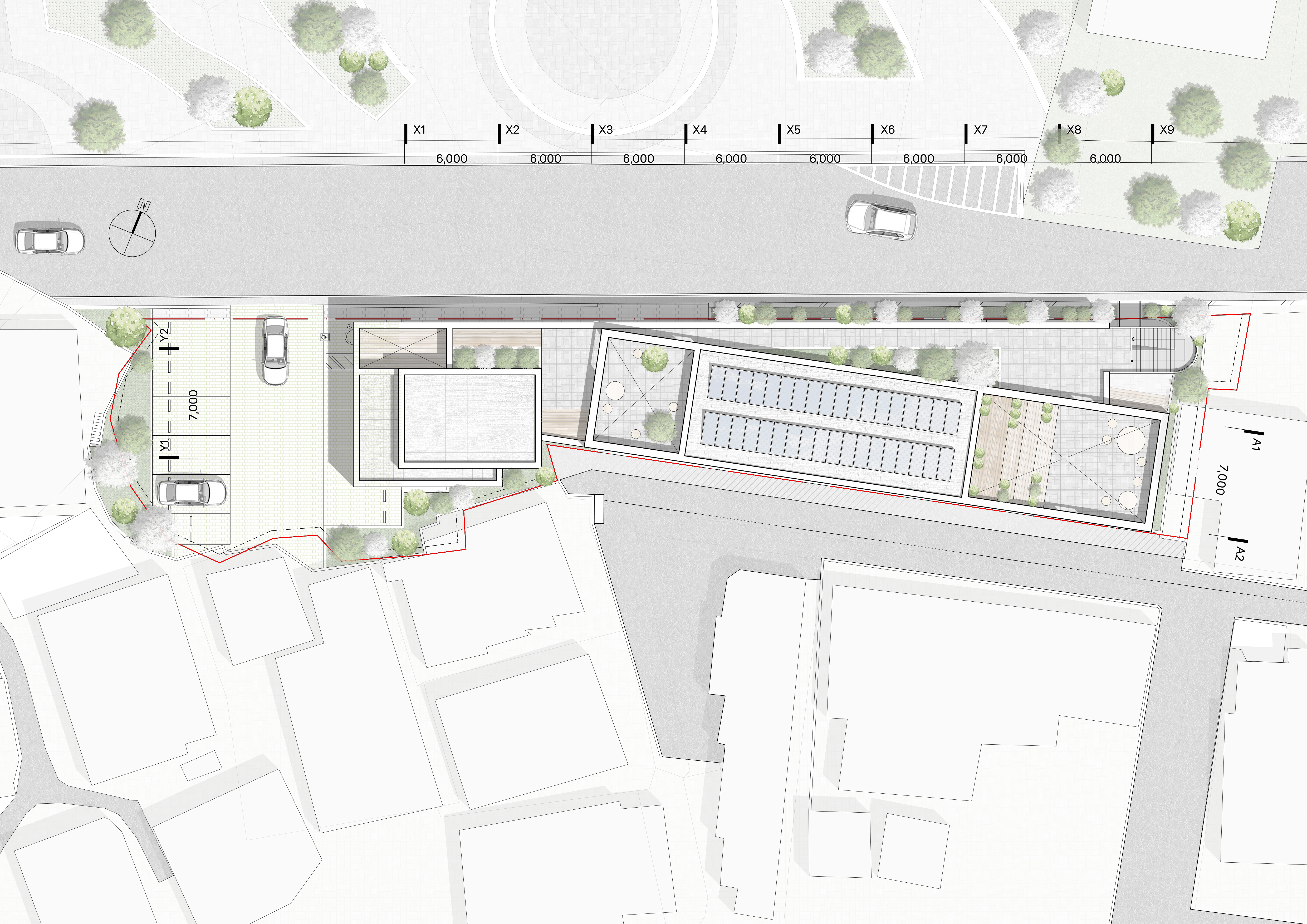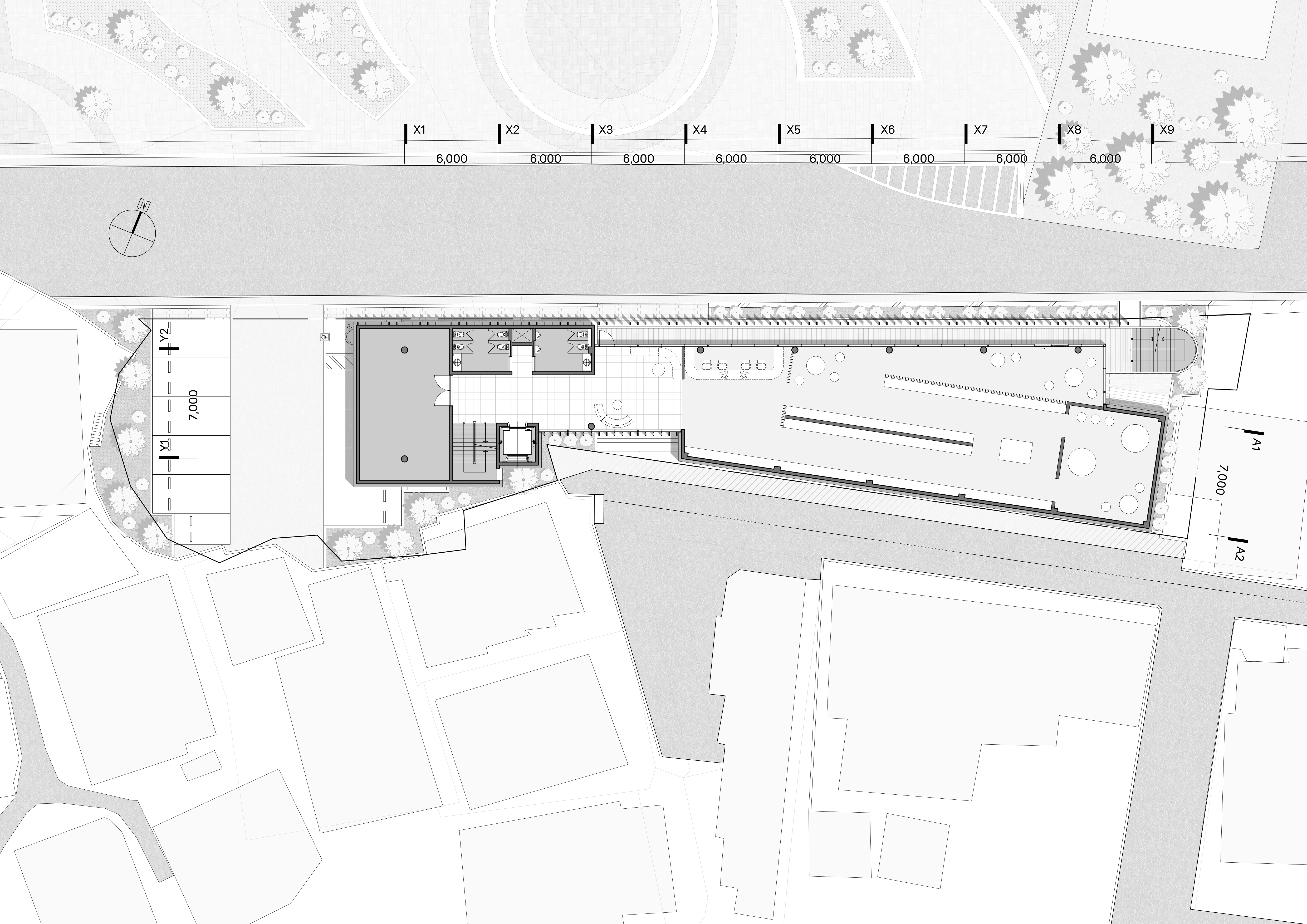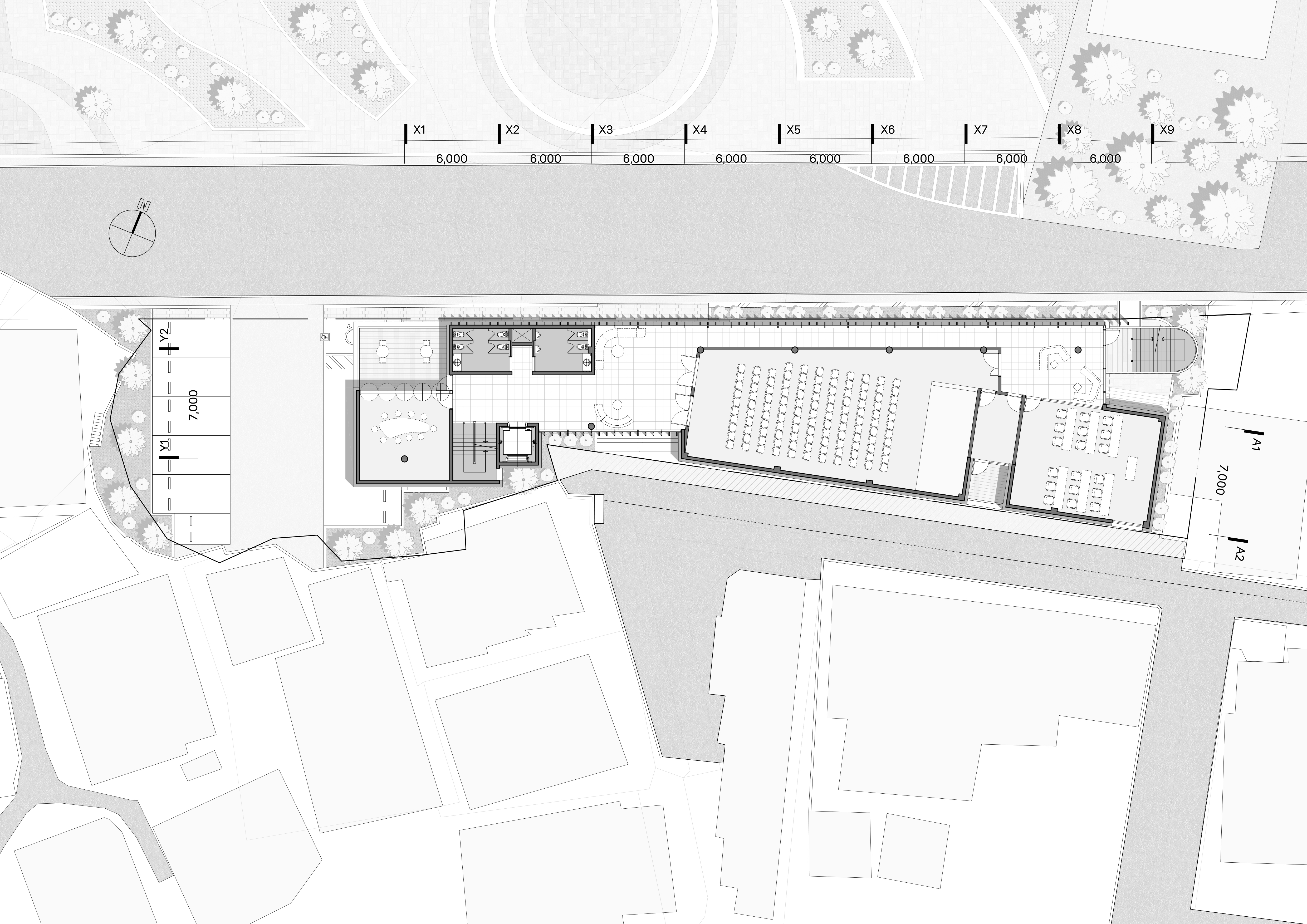 프로젝트 대상지는 폭 7-15미터와 길이 70미터의 세장한 형상으로, 이로 인해 음악마을 아트홀은 남북을 단절하는 장벽과 같은 볼륨을 형성하게 된다.