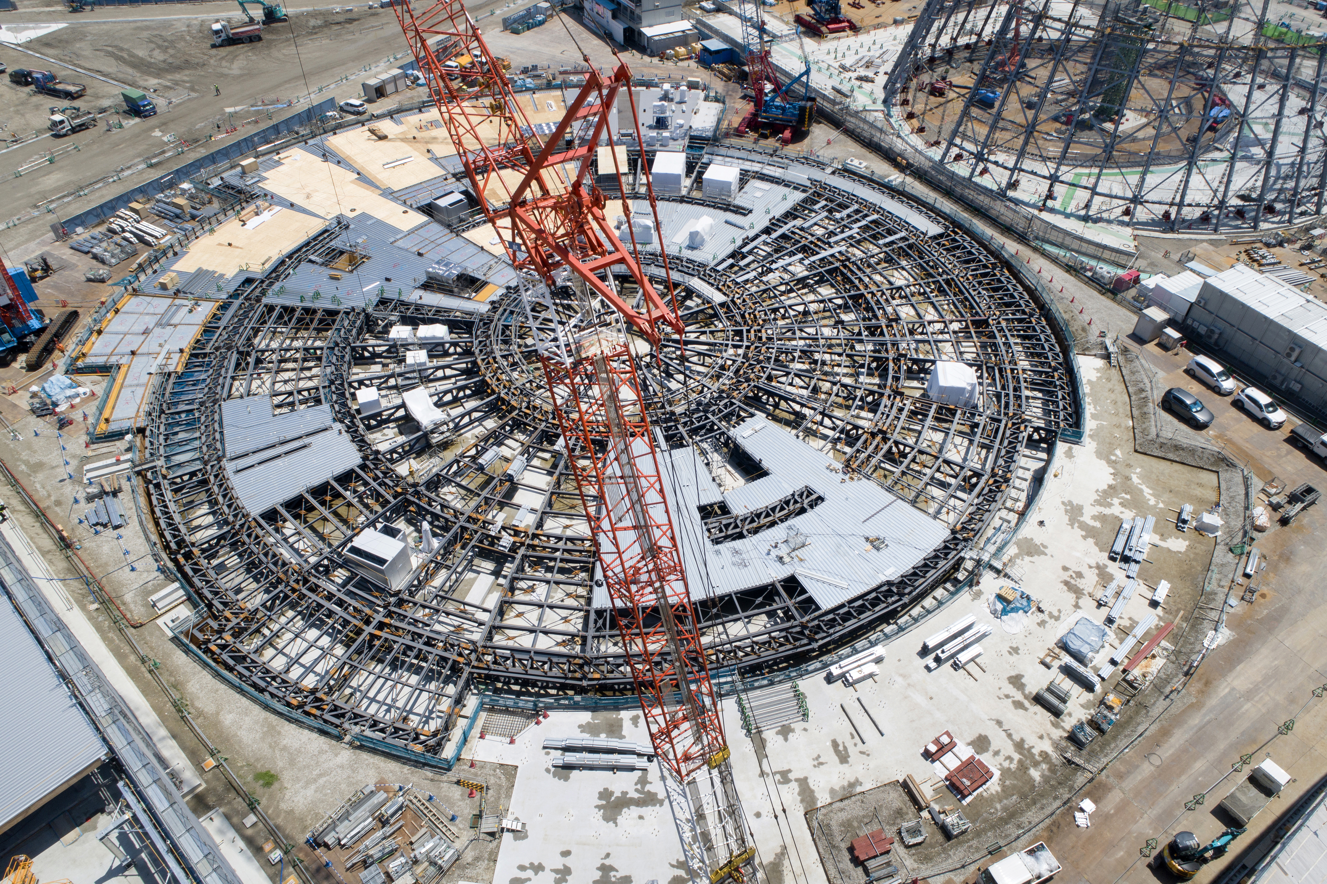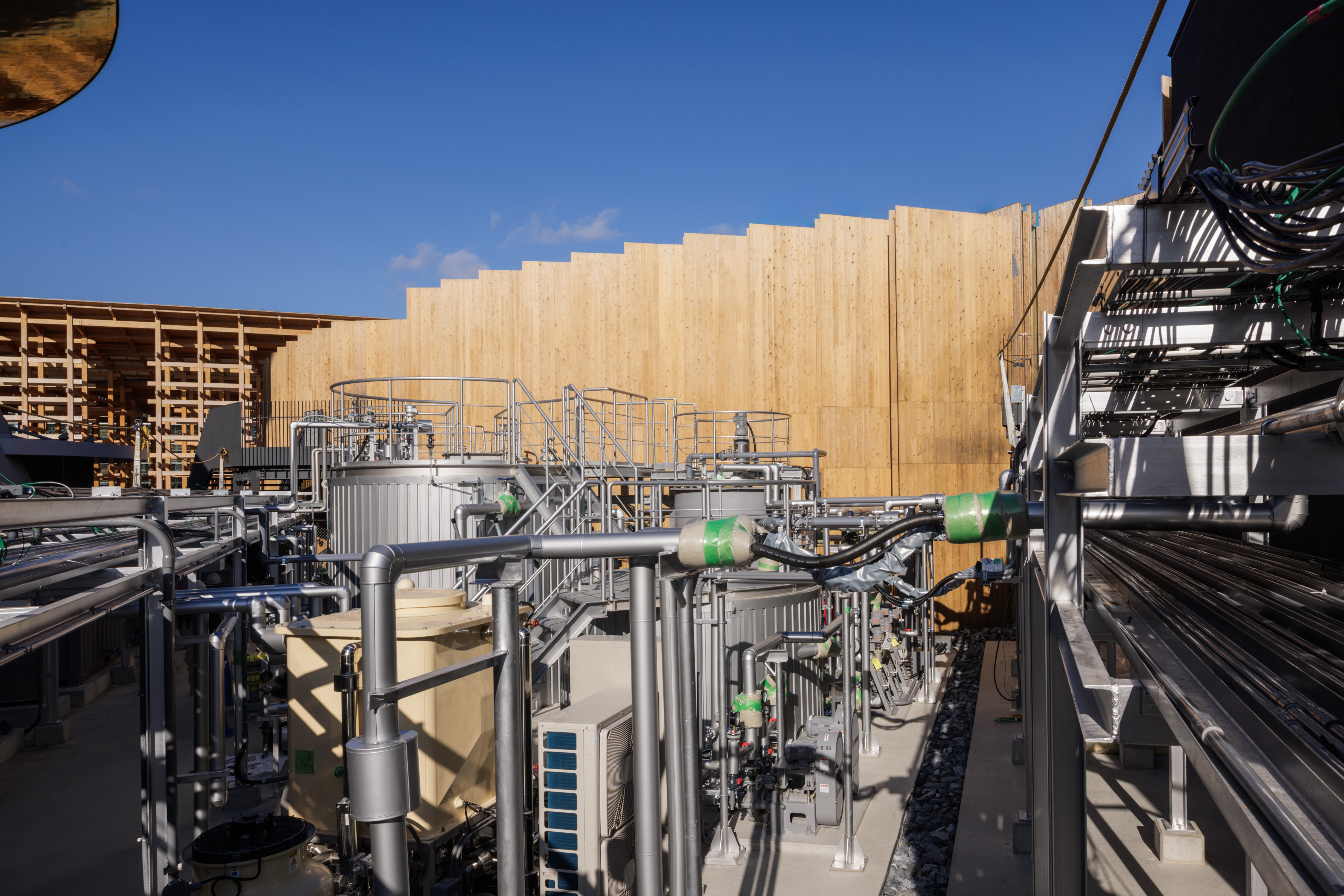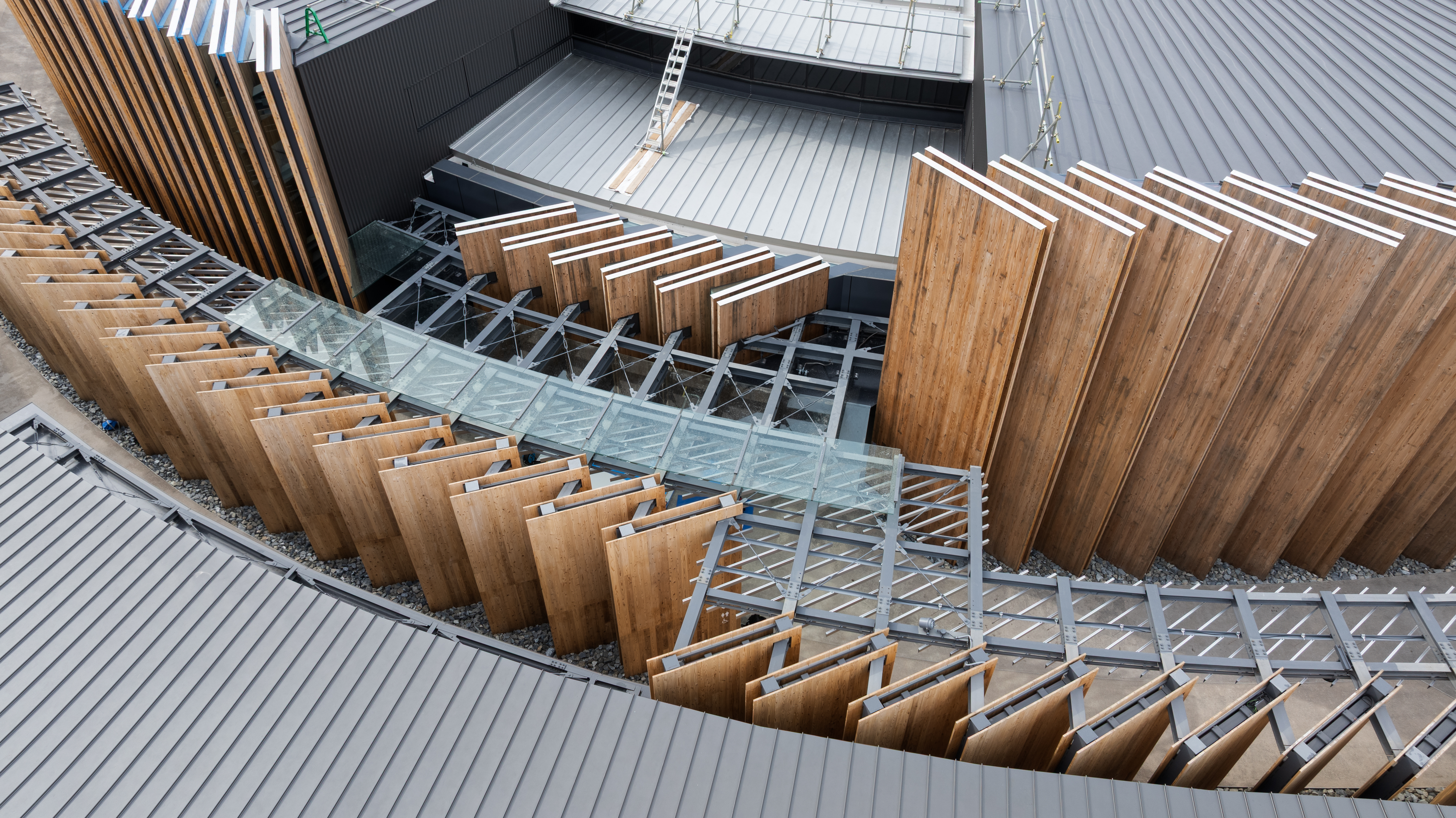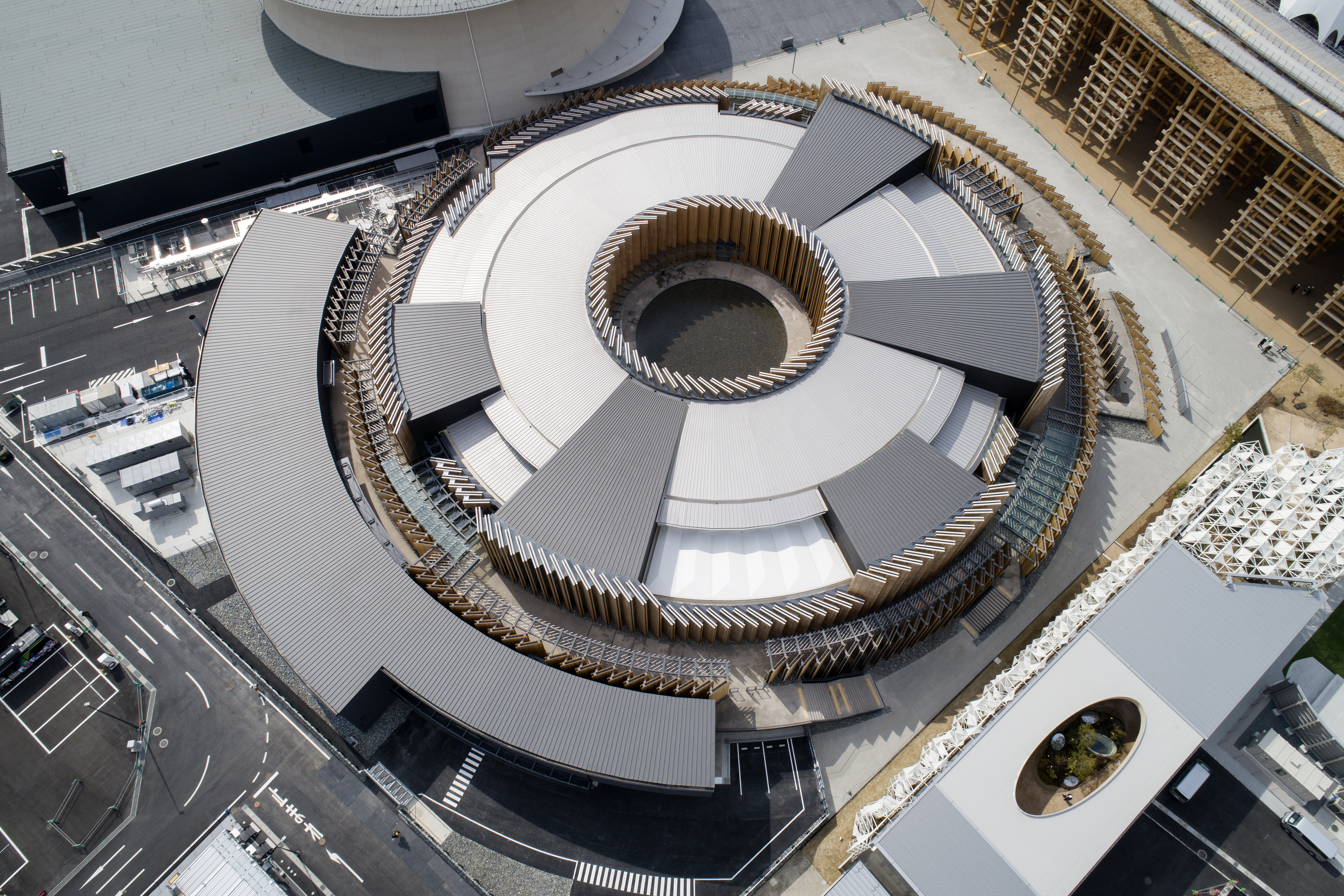 2025년 일본 국제 박람회(오사카 간사이 엑스포)의 일본 정부관. “생명과 생명 그 사이에”라는 전시 콘셉트 하에, CLT(직교 집성판)의 비스듬한 배열을 통해 무수한 원형상을 반복시킴으로써, “생명의 릴레이”, “생명의 순환”을 건물로 구현하였다.