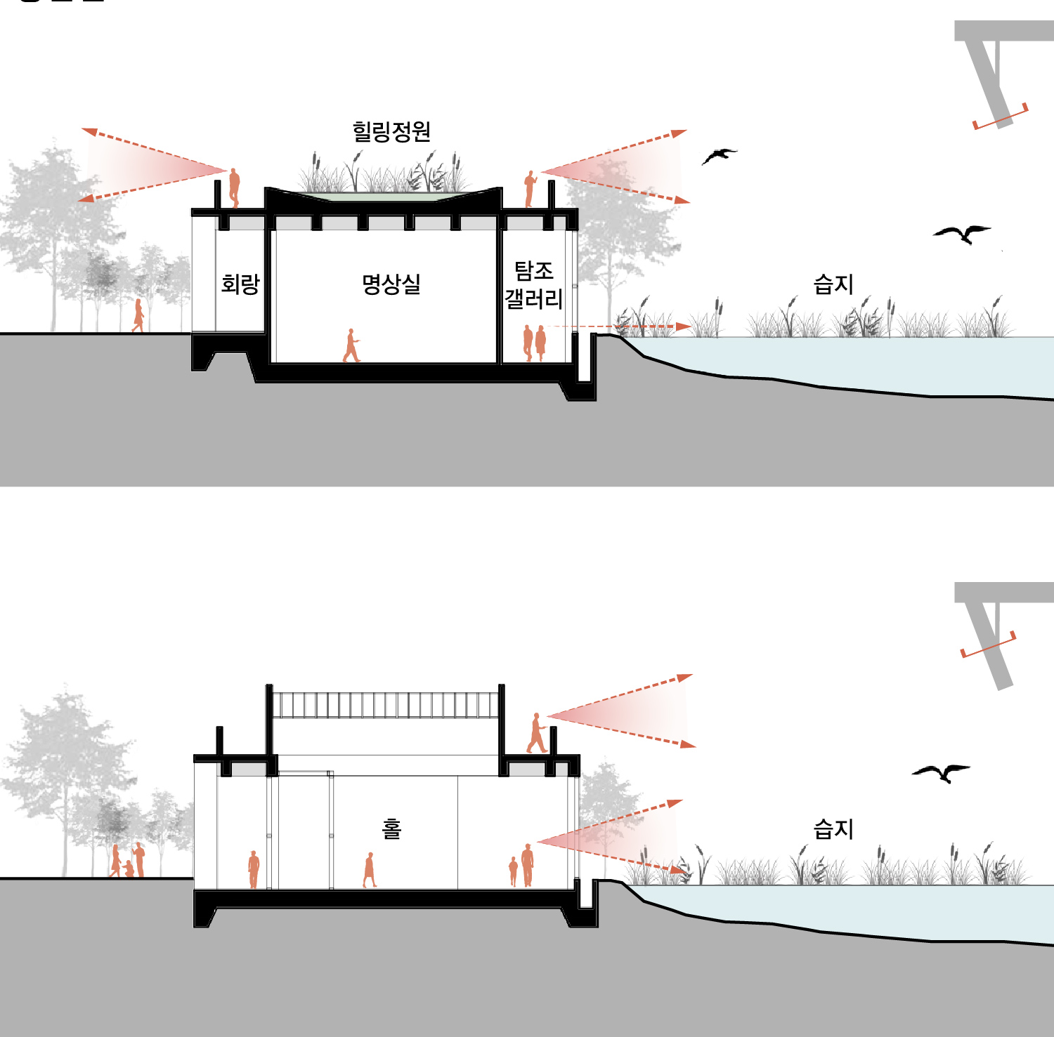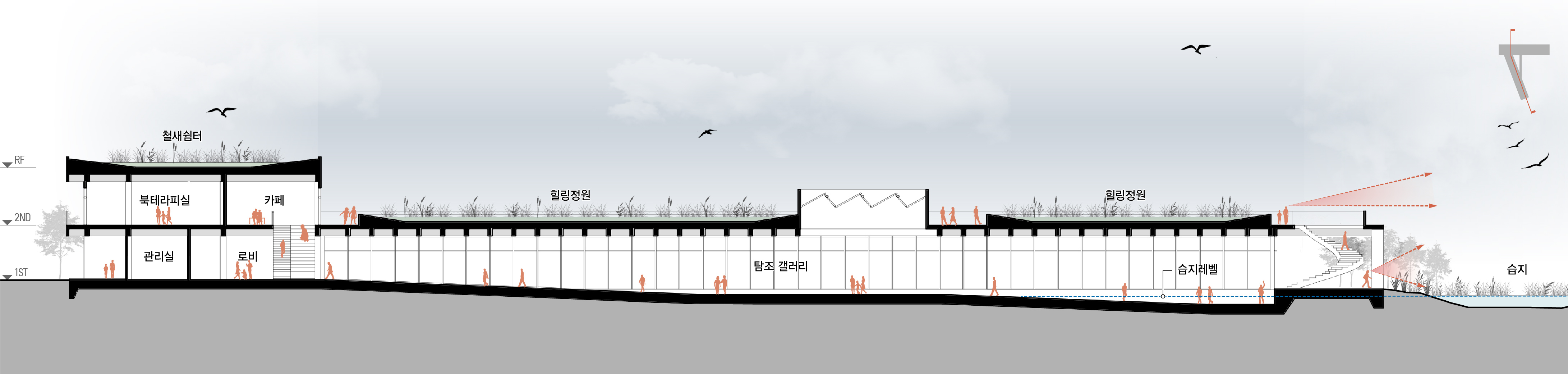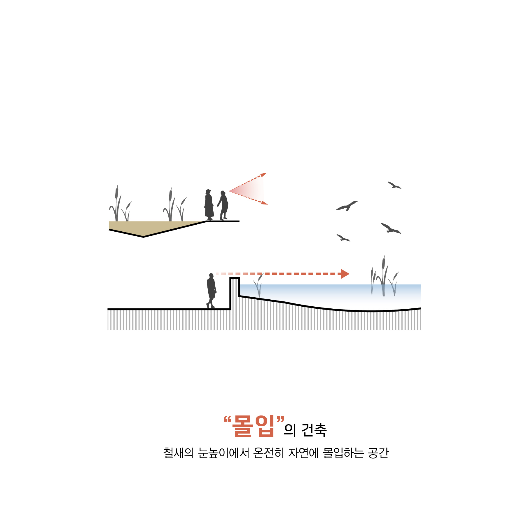 우리는 이곳을 철새의 눈높이에서 건축물이 아닌 순천만의 자연스러운 풍경이 되고자 한다.