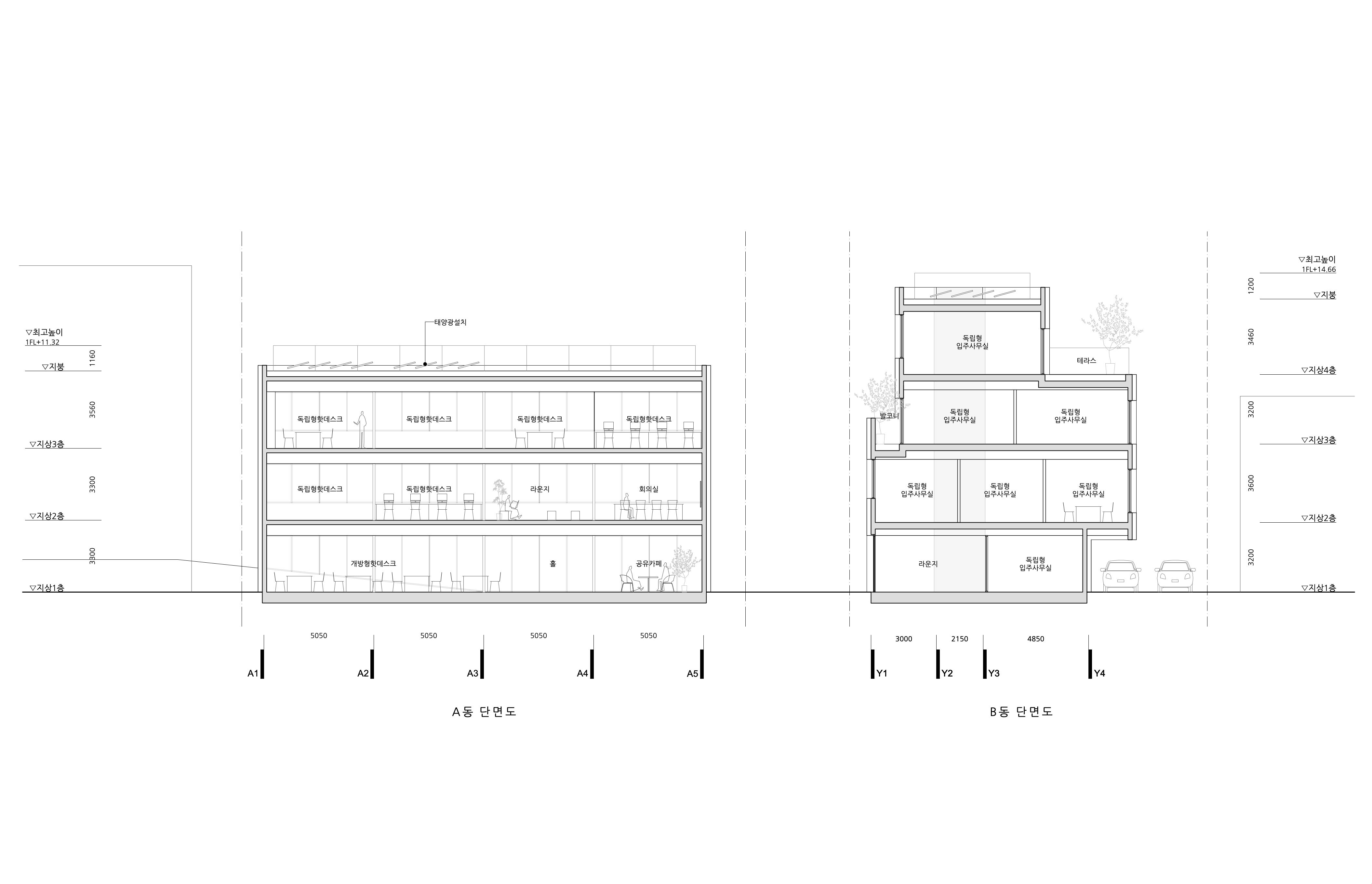 두 동은 각각의 위치적 특성과 주변 맥락을 반영해 차별화된 방식으로 계획되었다.