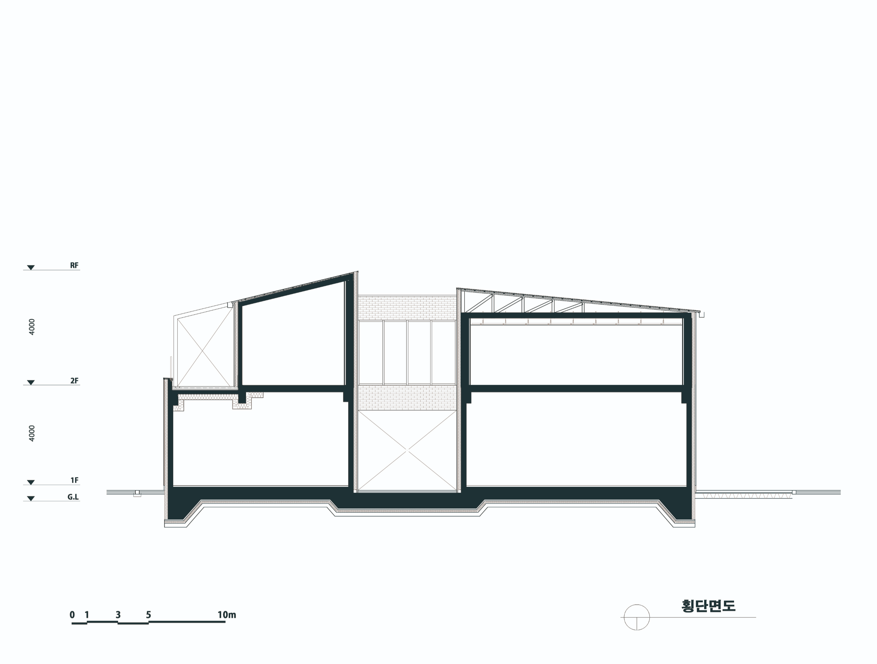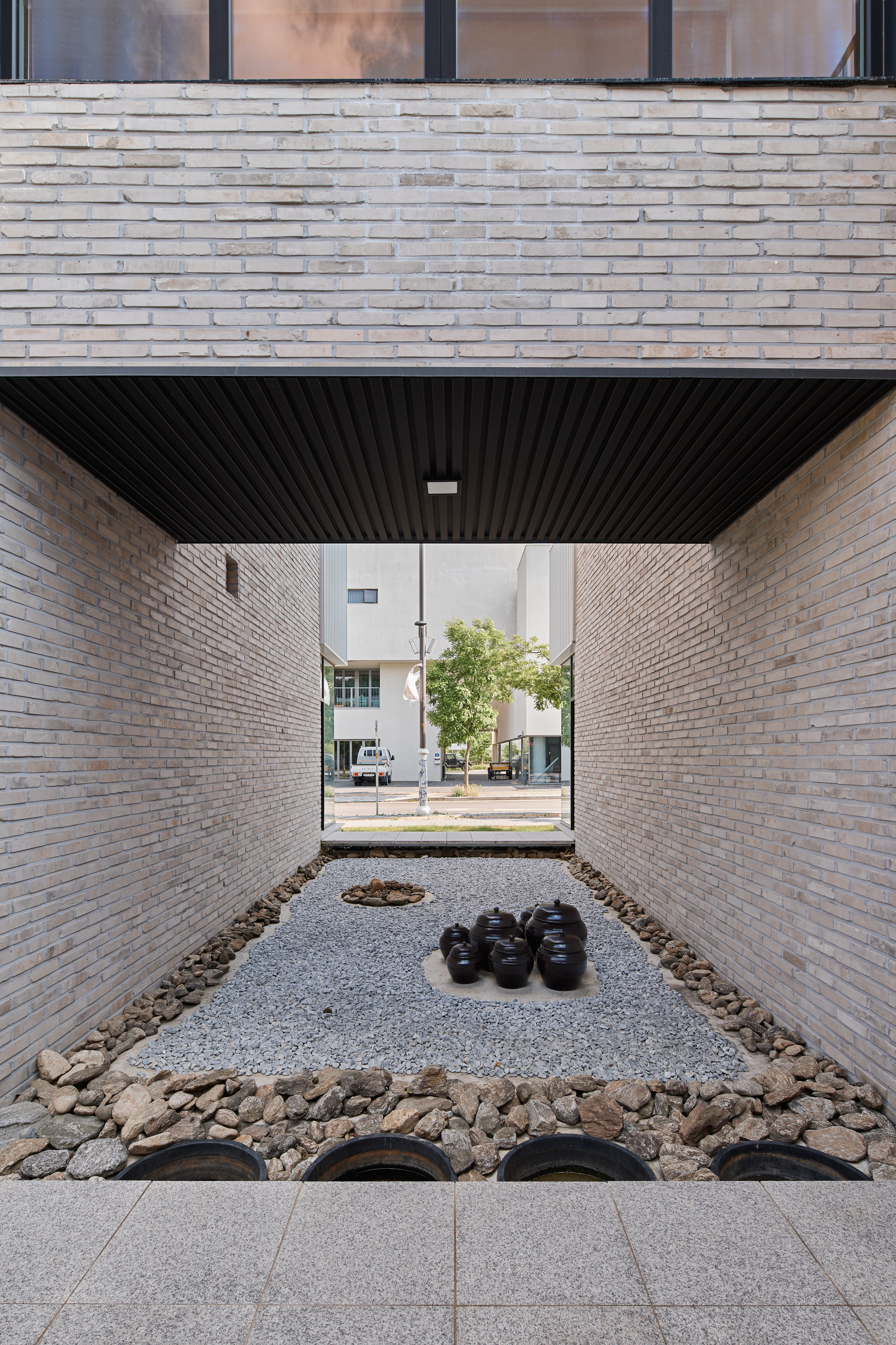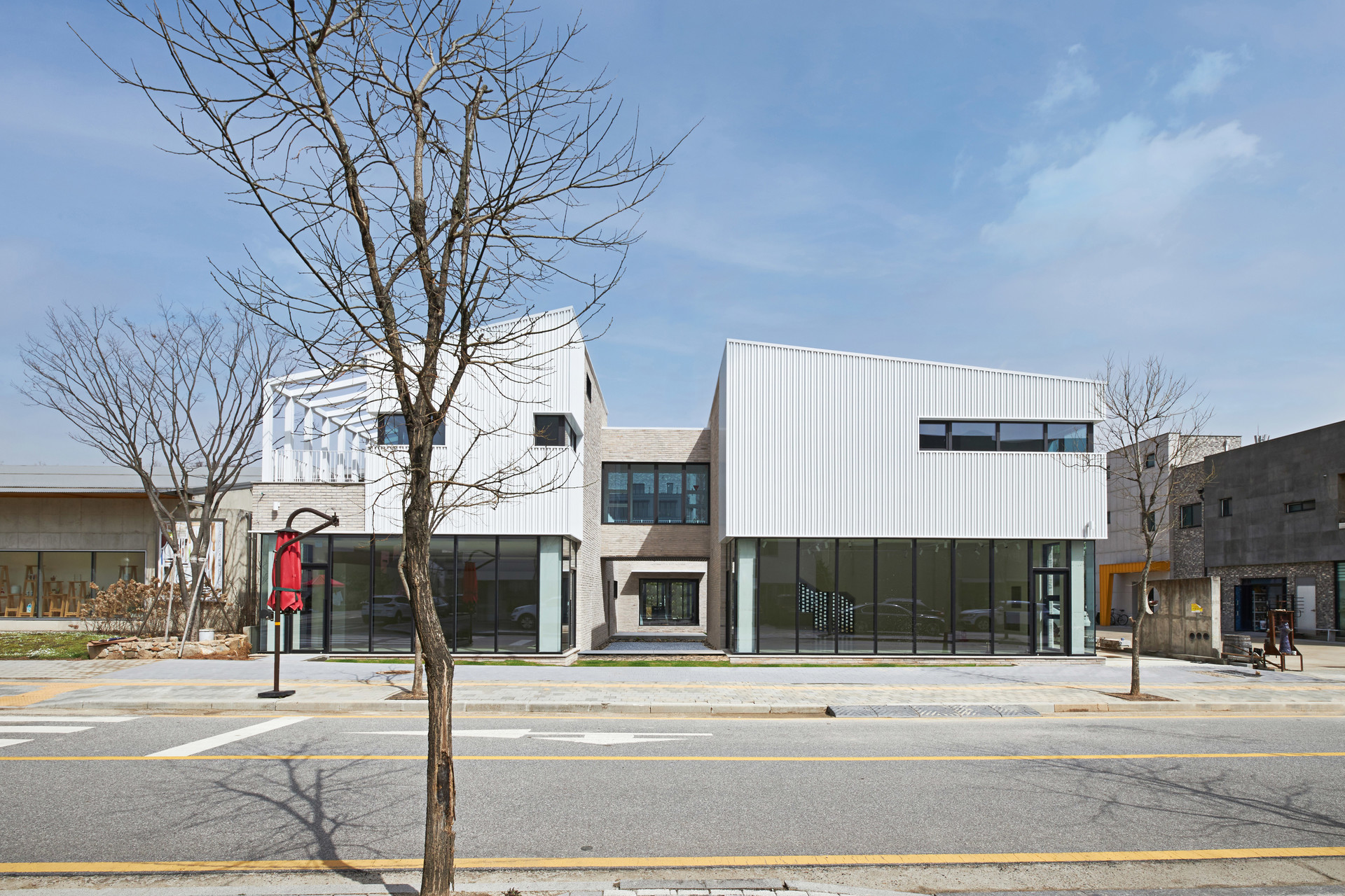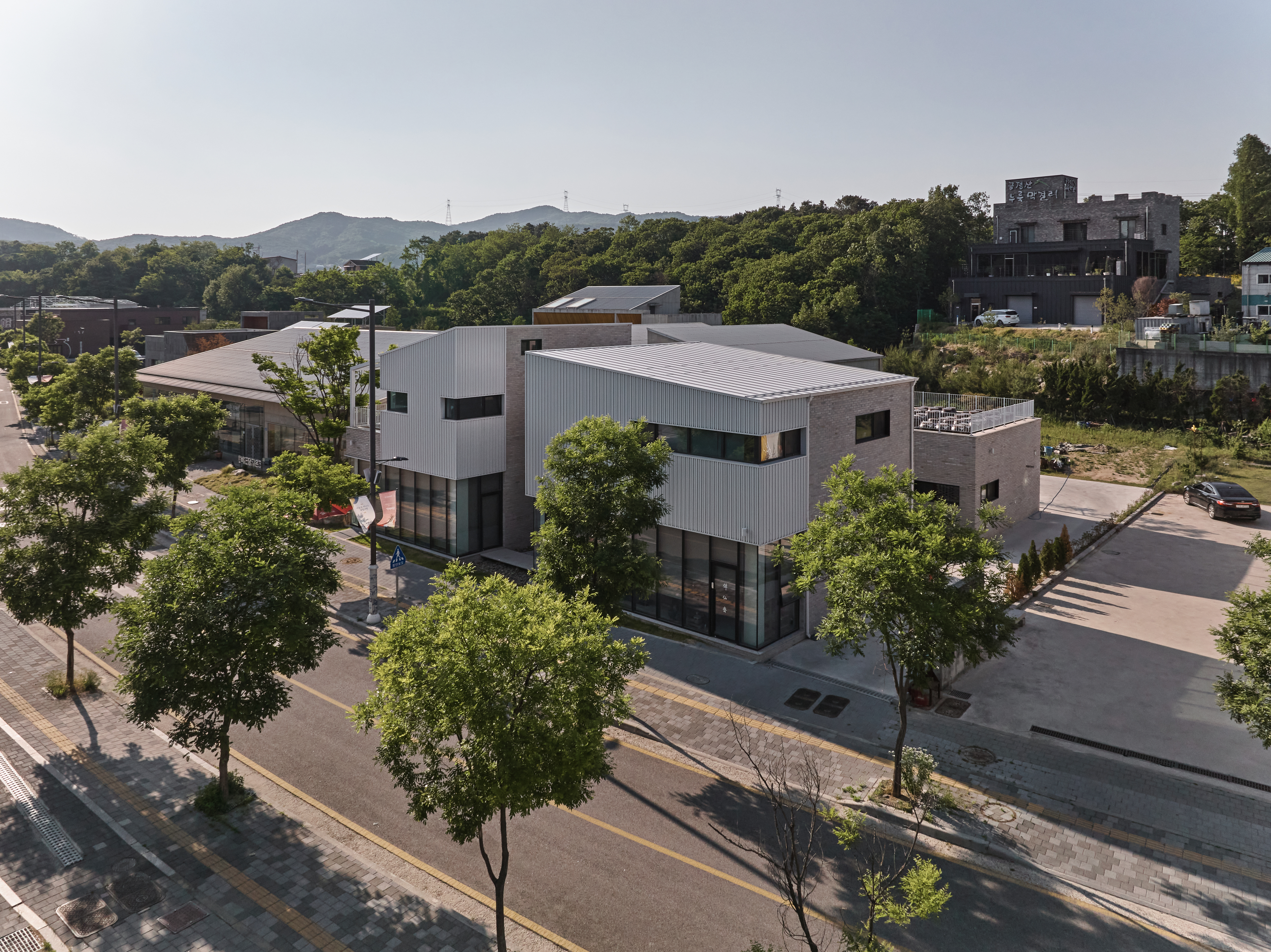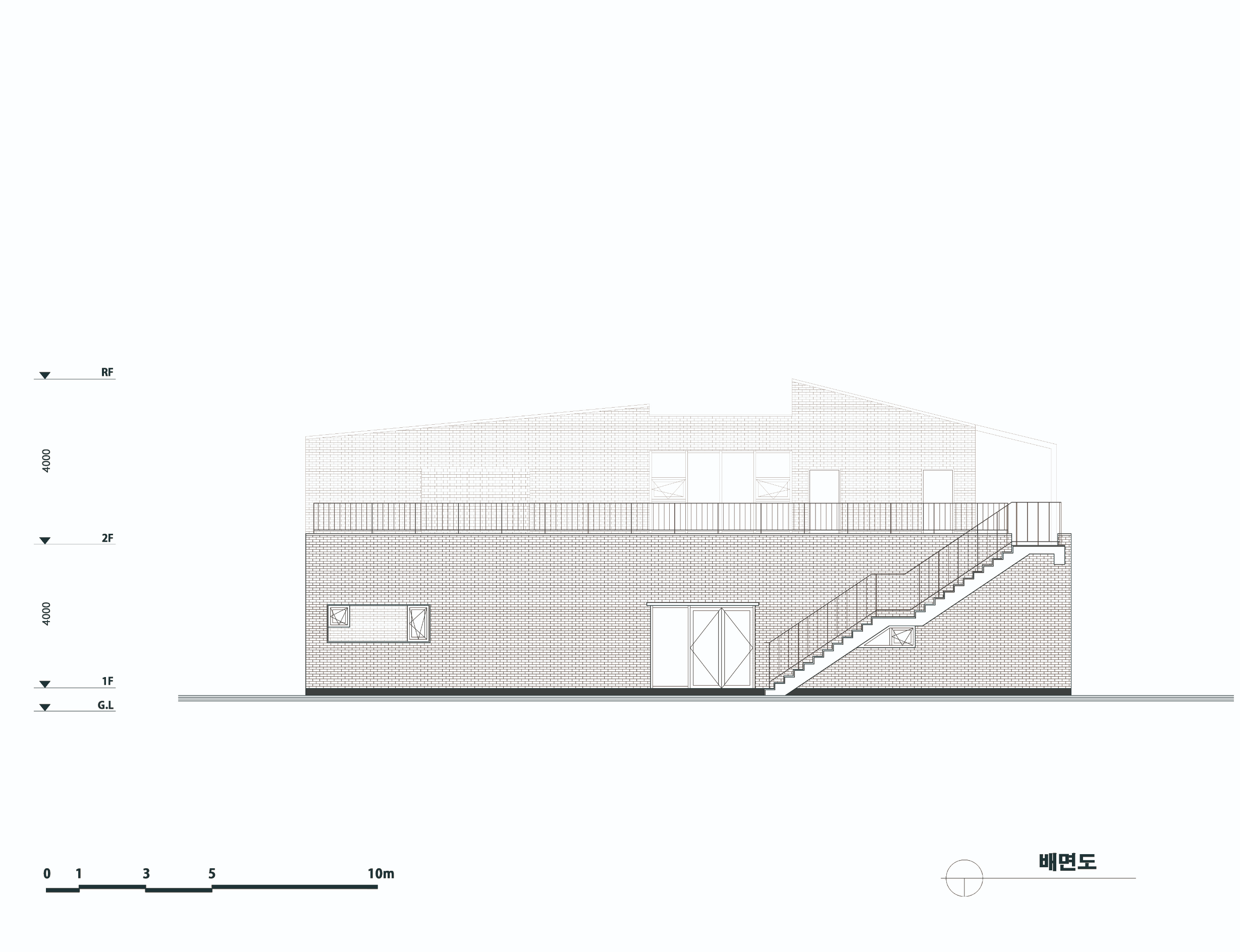 반선재의 주 입면은 남쪽 방향으로, 알루미늄 성형 판넬을 활용하여 도자기의 결을 형상화하고, 다양한 빛과 재료의 물성을 구현하고 있다. 이러한 입면 연출 기법은 도로에서 반선재의 상징성을 부여하며, 성형 판넬이 끝나는 지점에서 공적인 영역과 사적인 영역이 분리된다. 사적인 영역이 시작되는 부분에서는 백고 벽돌 마감을 통해 예스파크 도자 마을의 주변 건물들과 조화를 이루며, 따스하고 아늑한 분위기를 연출한다. 반선재는 도자기와 문화가 어우러진 공간으로, 단순한 건축물 이상의 의미를 지니며, 예술과 창작의 새로운 장을 열어갈 것이다.