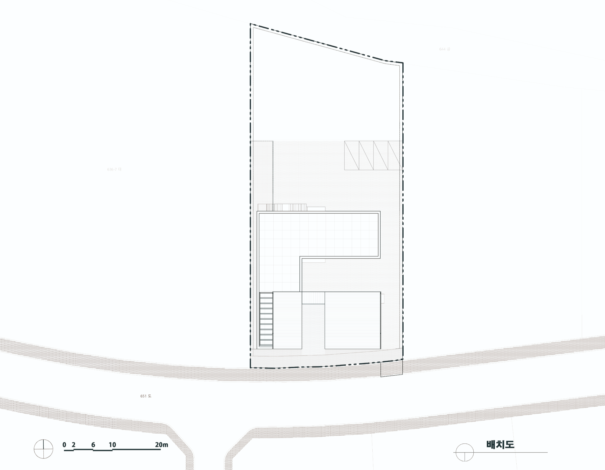 반선재의 가장 큰 특징은 하나의 독립된 볼륨이면서도 외부 공간과의 관계를 통해 다양한 장소와 이야기를 만들어내는 점이다. 건물은 “ㄱ”자 형태로 중정을 중심으로 남쪽 중정과 동쪽 중정으로 나뉘어 있다.