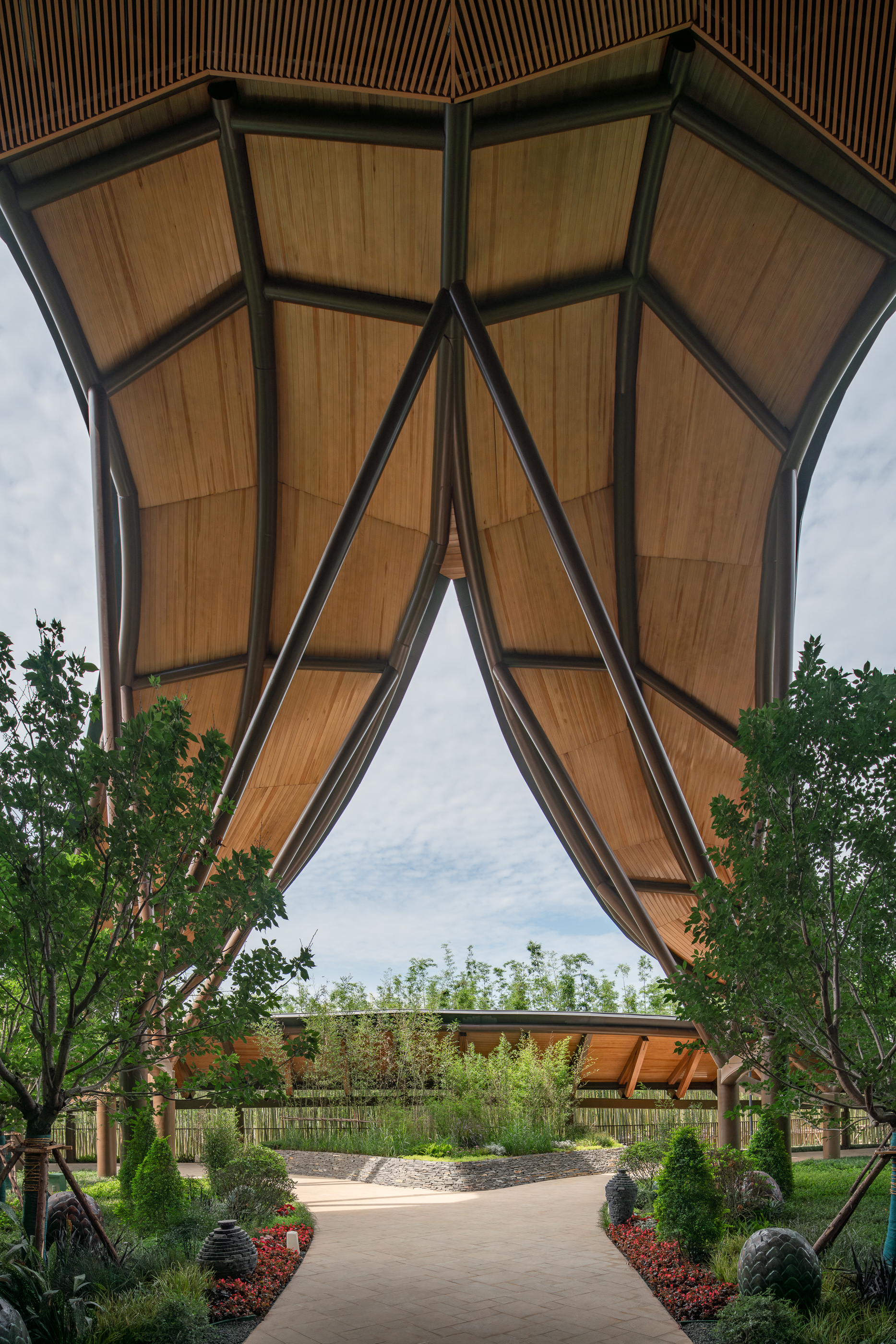 객실 동에 가까워질수록 척추 지붕 구조는 더욱 드라마틱하게 열리며, 빛과 푸르른 중정 정원을 품어낸다. 이처럼 압축과 개방의 극적인 상호작용은 독특하고 강렬한 건축 경험을 만들어내며, 건축과 자연, 사람 사이의 역동적인 균형을 이룬다.