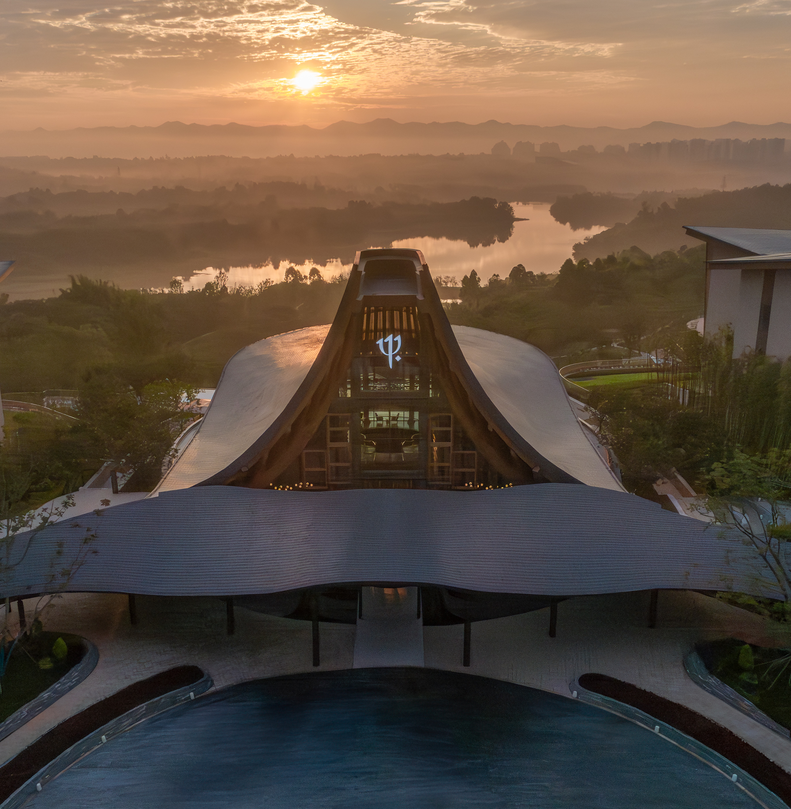 객실 동에 가까워질수록 척추 지붕 구조는 더욱 드라마틱하게 열리며, 빛과 푸르른 중정 정원을 품어낸다. 이처럼 압축과 개방의 극적인 상호작용은 독특하고 강렬한 건축 경험을 만들어내며, 건축과 자연, 사람 사이의 역동적인 균형을 이룬다.