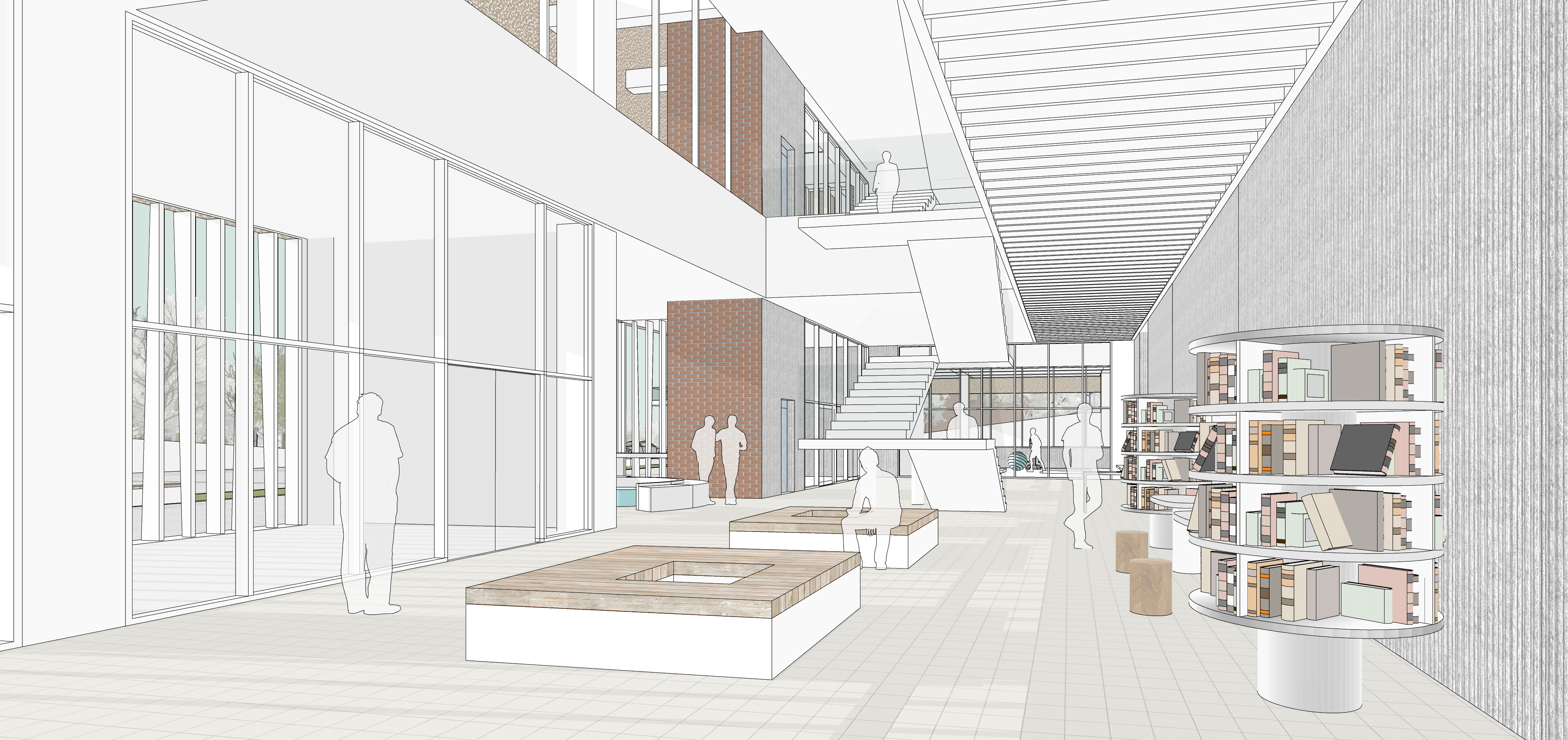 경사지형과 건축물이 하나 되어, 청소년센터에서 산림지까지 수평으로 이어지는 길이 만들어진다. 청소년센터의 체육관과 다목적체육관을 서로 공유하며 연결되는 길은, 휴게공간을 거쳐 숲길과 만나며, 마당과 광장으로 이어져 자연을 품은 체육시설의 새로운 동선체계를 이루며 주변 시설을 순환시킨다.