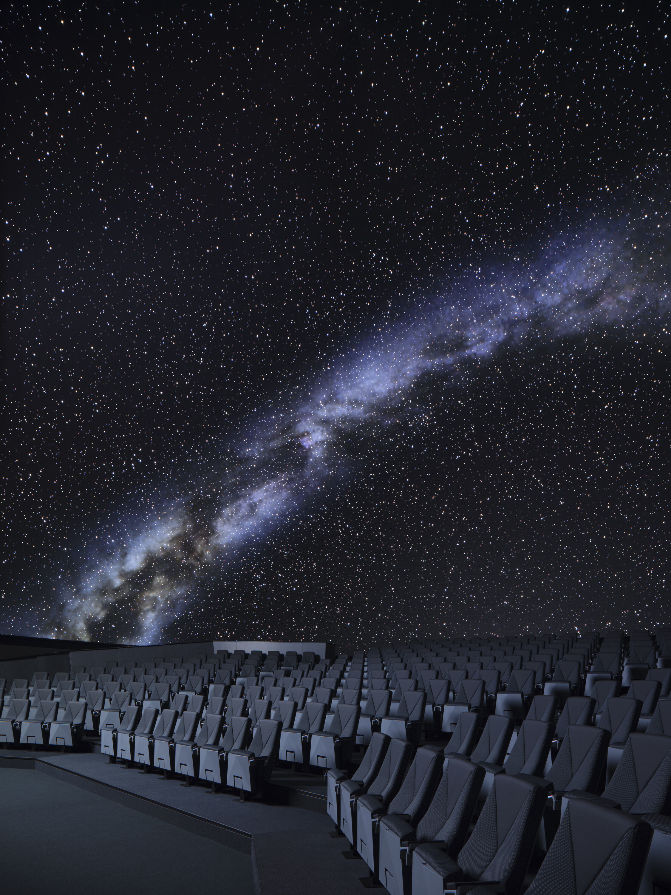 콜콜 스튜디오가 설계한 관람실은 관객이 수평선을 넘어 떠오르는 듯한 느낌을 주는 계단식 기하 구조를 도입하였다. 좌석 수는 20% 증가하여 총 277석이 되었고, 여유 있는 공간 배치로 관람의 편안함과 동선의 안전성을 확보하였다. 좌석은 조절이 가능하고 인체공학적으로 설계되어 관람객의 집중력을 높인다. 스크린 뒤편에 숨겨진 음향 처리 기술은 무한한 공간감의 착시를 더욱 강화한다. 이번 리노베이션은 로비와 부대시설에도 영향을 미쳤다. 입구에 있던 기존 전시는 원형 LED 스크린으로 대체되어 추가 프레젠테이션 공간으로 활용되며, 새롭게 설계된 클록룸은 입장 및 퇴장 동선을 분리하여 이용 편의를 높였다. 여름에는 지하에 시뮬레이터 전시가 새롭게 열릴 예정이며, 외부 조경 작업이 마무리되면 출구 근처에 상점도 마련될 계획이다. 기존 장미 정원과 연결된 불편한 경사로는 철거되고, 상점을 통해 무장애 동선을 확보하게 된다.