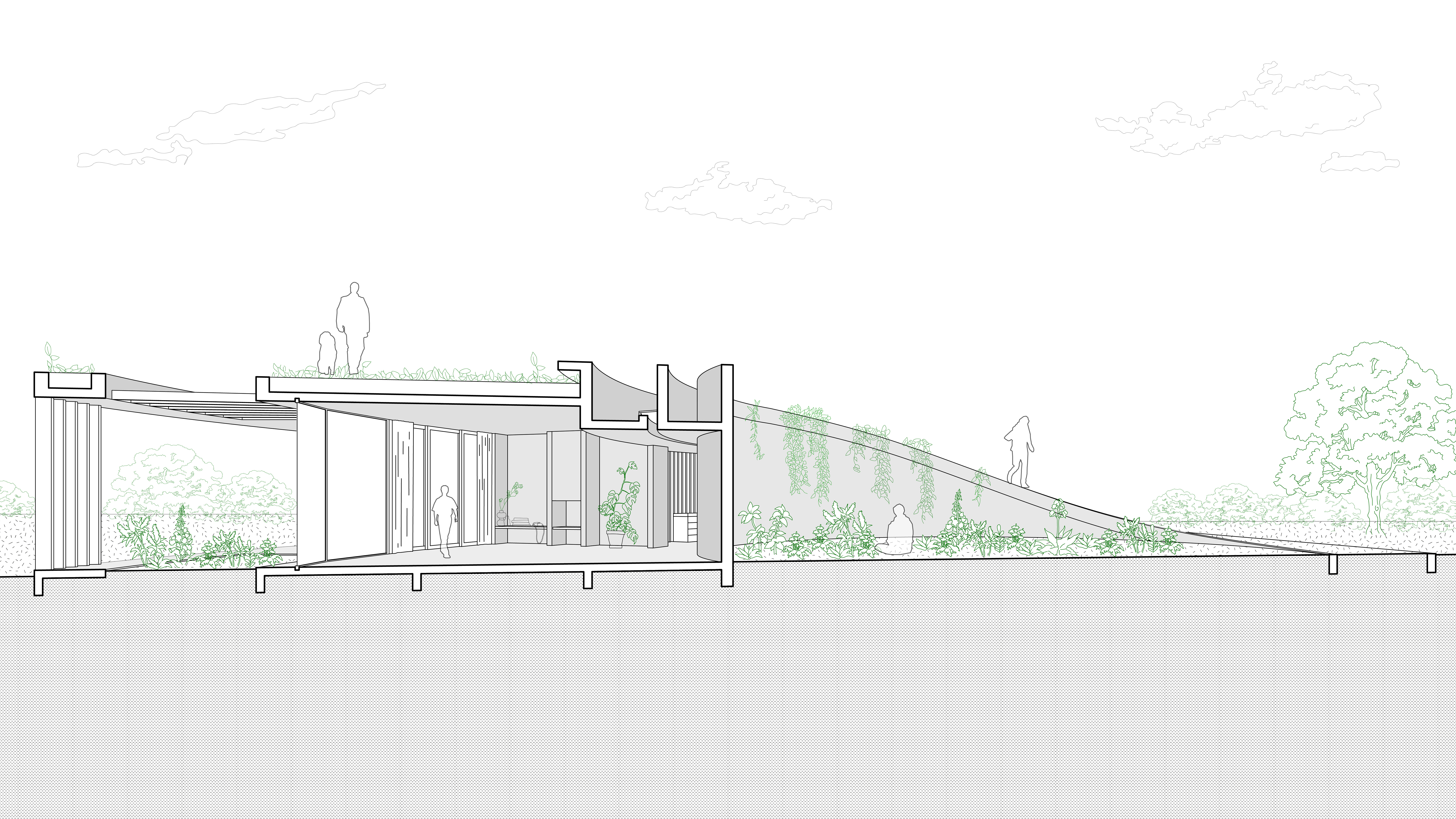 기하학과 자연의 결합은 하나의 연장된 경사 경로를 만들어낸다. 이는 기존 기하의 흐름 위에 구축된 새로운 차원의 공간으로, 다른 레벨에서 파노라마 전망을 갖는 거주 환경을 제공한다. 이처럼 건축이 주변 환경과 하나가 되기 시작할 때, 여러 가지 이점이 생긴다. 생태적·기능적 측면의 효과는 물론이며, 건축물 자체보다 자연이 중심이 되는 새로운 구조가 만들어진다. 무엇보다 중요한 점은, 시간이 흐르며 마모되기만 하는 기존 건축물과 달리, 이 프로젝트는 자연과 점진적으로 융합된다는 데에 있다.