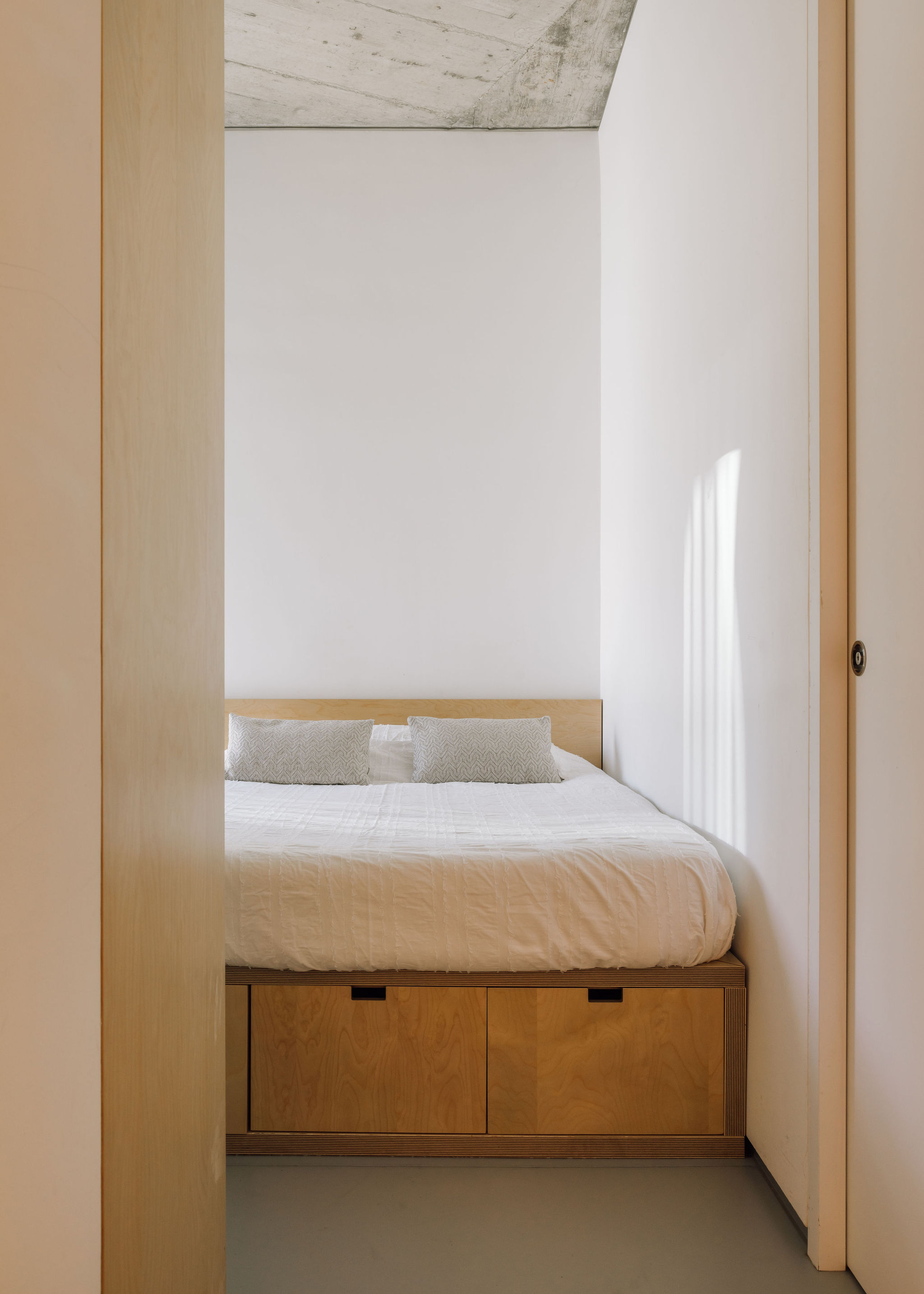 실내는 자작나무 합판을 활용한 맞춤 제작 가구로 마감되었으며, 리셉션 데스크는 건물의 계단형 매스를 반영해 디자인되었다. 각 방 번호는 벽에 설치된 지붕 타일에서 은은하게 발광되며, 외관 디자인의 주제를 실내에서도 일관되게 이어간다. 이는 내구성과 심미적 연속성을 모두 고려한 설계 전략이다.