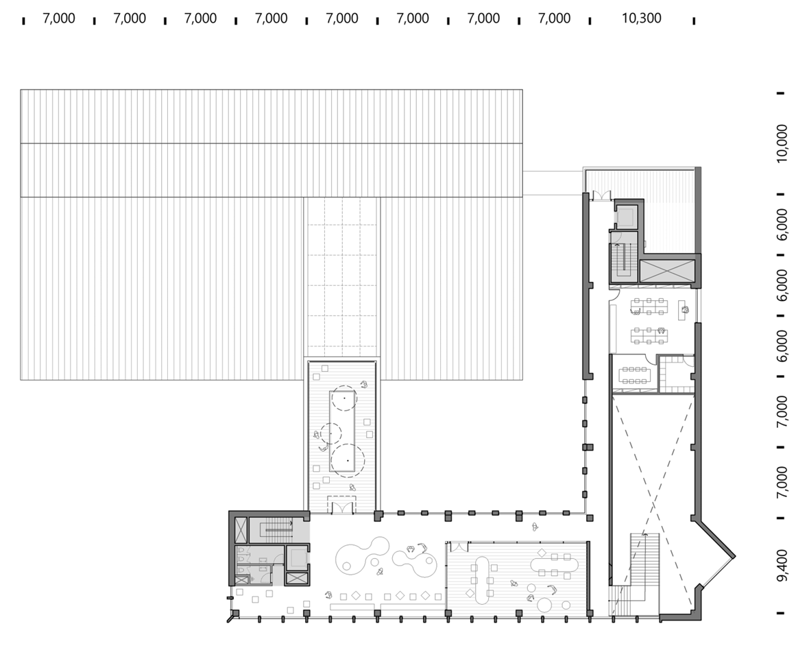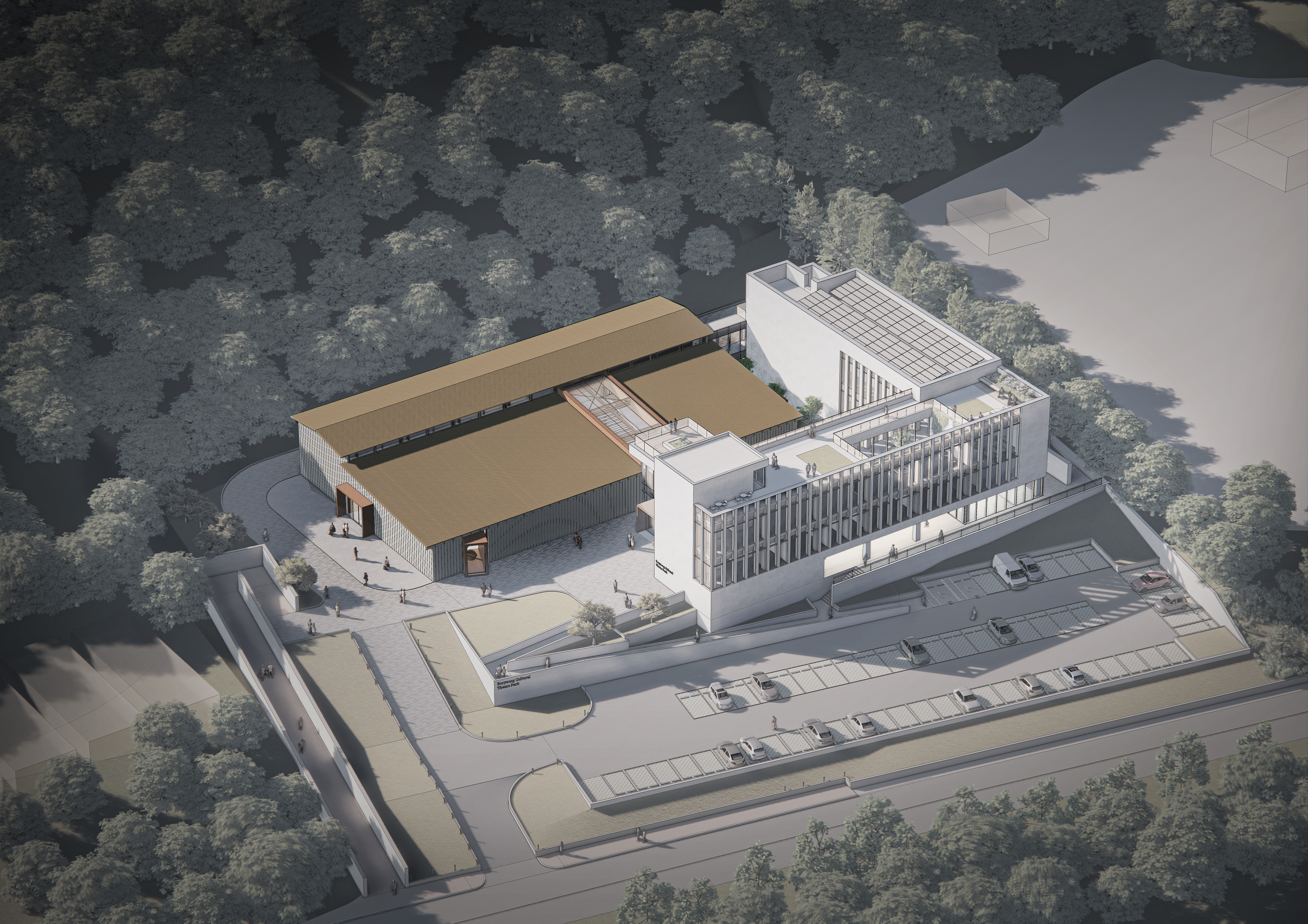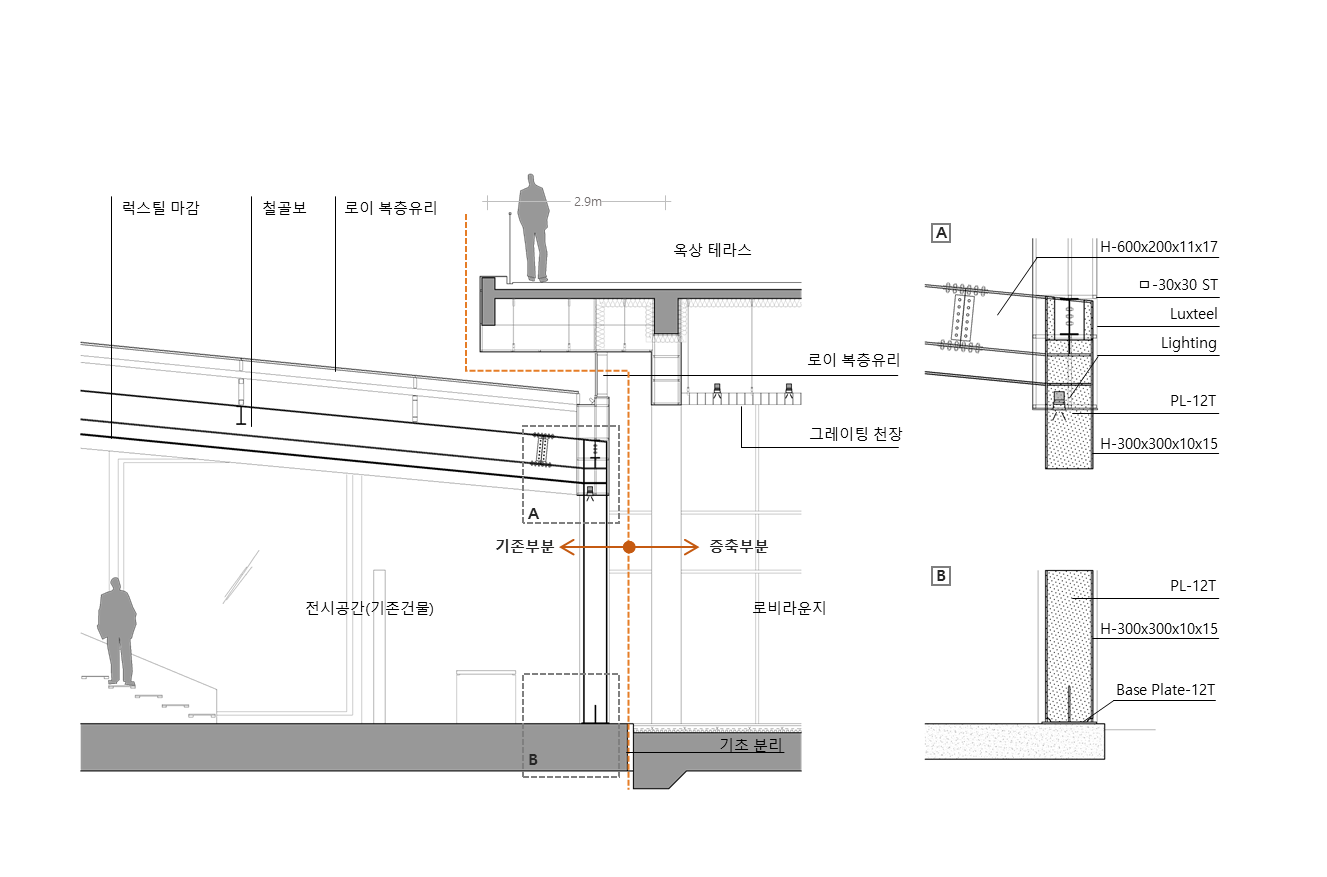 기존건물은 메인 전시관, 증축건물은 지원시설이다.