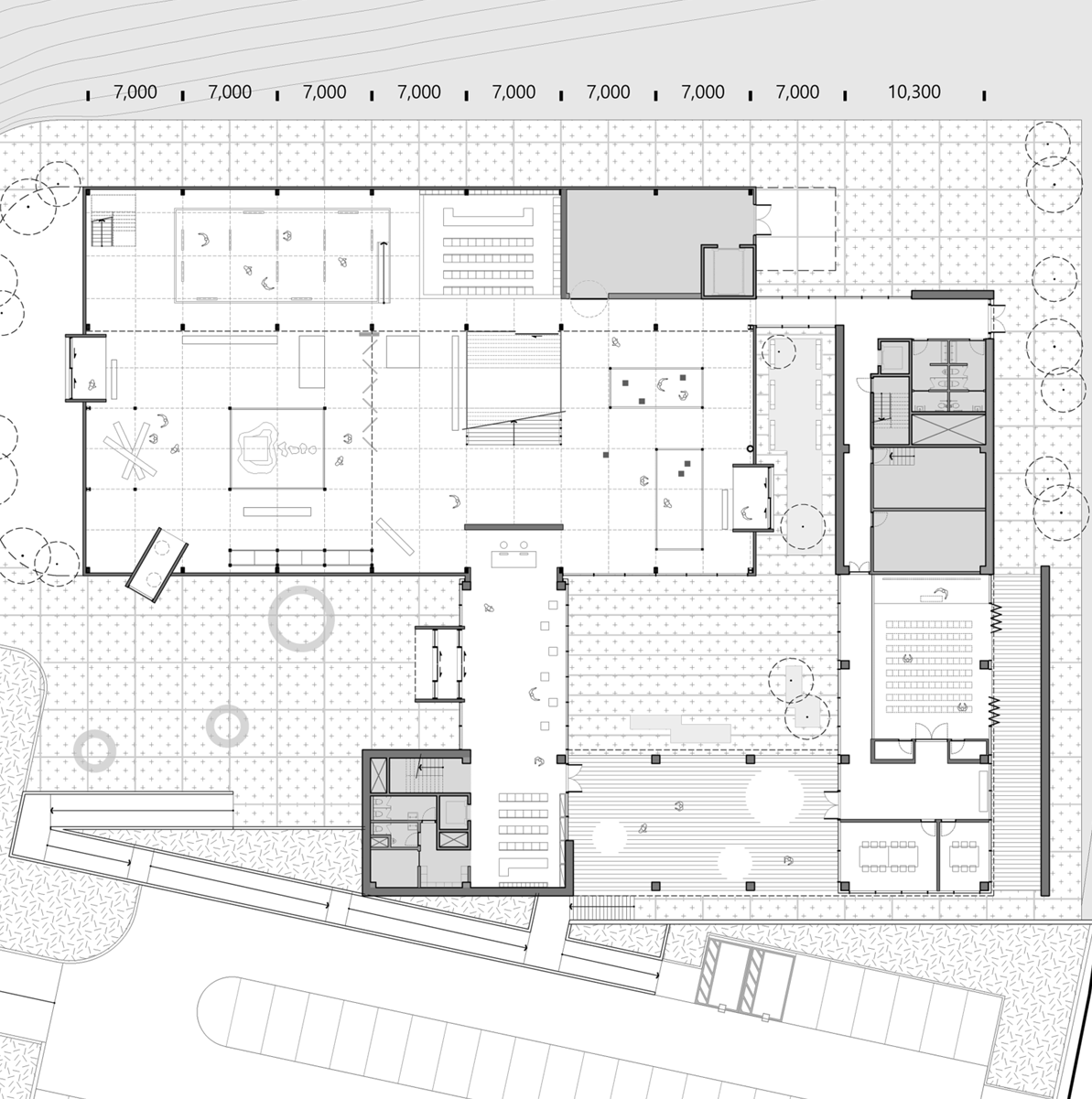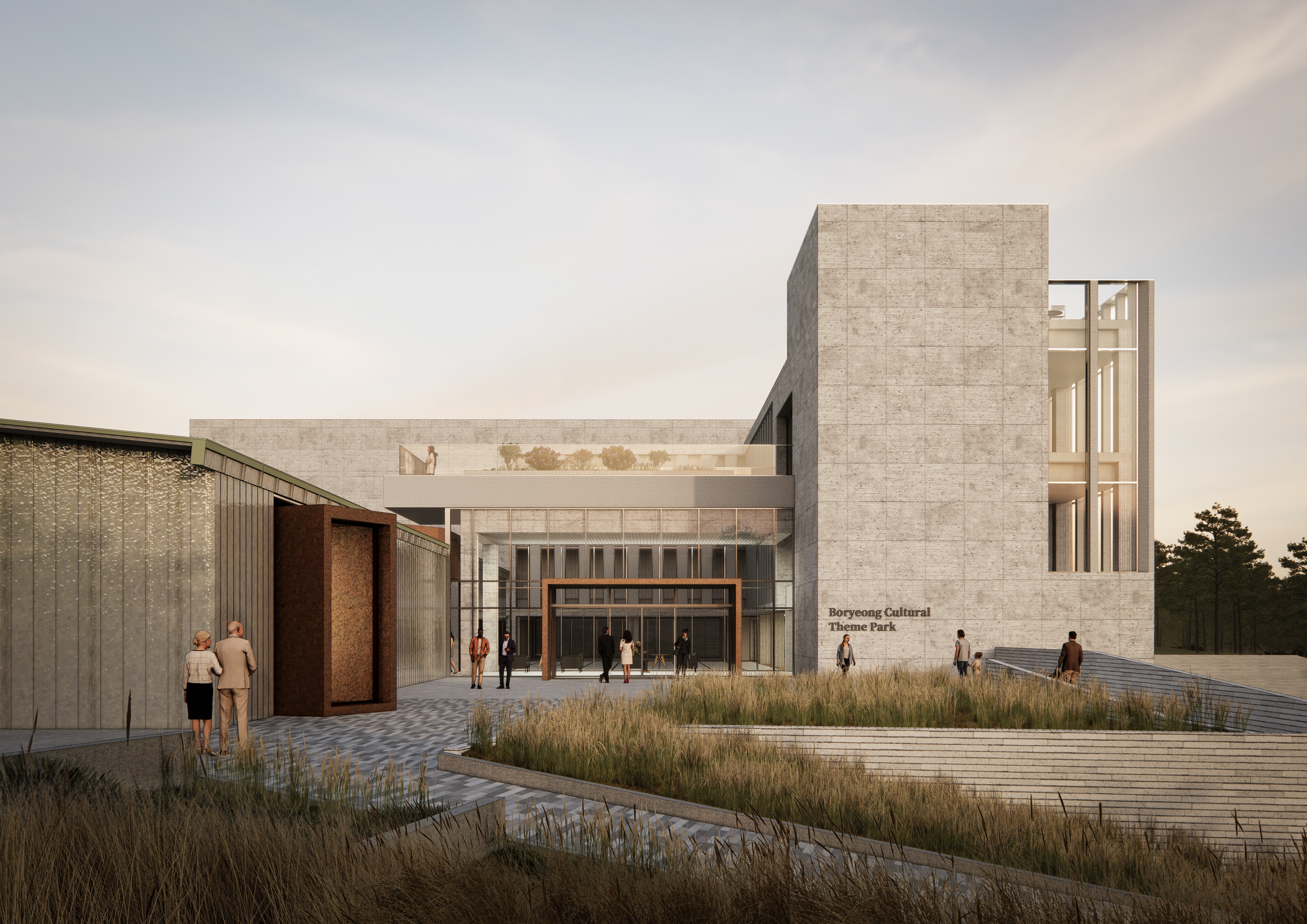 보령문화파크 대지의 단차를 적극적으로 활용하며 설계를 시작하다. 진입부터 5m의 단차를 극복하기 위해 별도의 주차 레벨을 제안한다. 최소한의 절토를 통해 건물보다 낮은 레벨의 주차공간을 확보하고 차량은 완만한 경사지로 진입하게 된다. 조성되는 외부공간에서 시각적으로 주차장이 보이지 않도록하며 보행자의 원활한 접근성을 가능케한다. 북측을 제외한 모든 향에 대해 자연경관을 조망할 수 있는 최적의 매스계획을 고려하여야 하며, 기존 대공간의 장소성을 그대로 보존하면서 천창을 계획해 공간을 더욱 풍요롭게 하고자 한다.