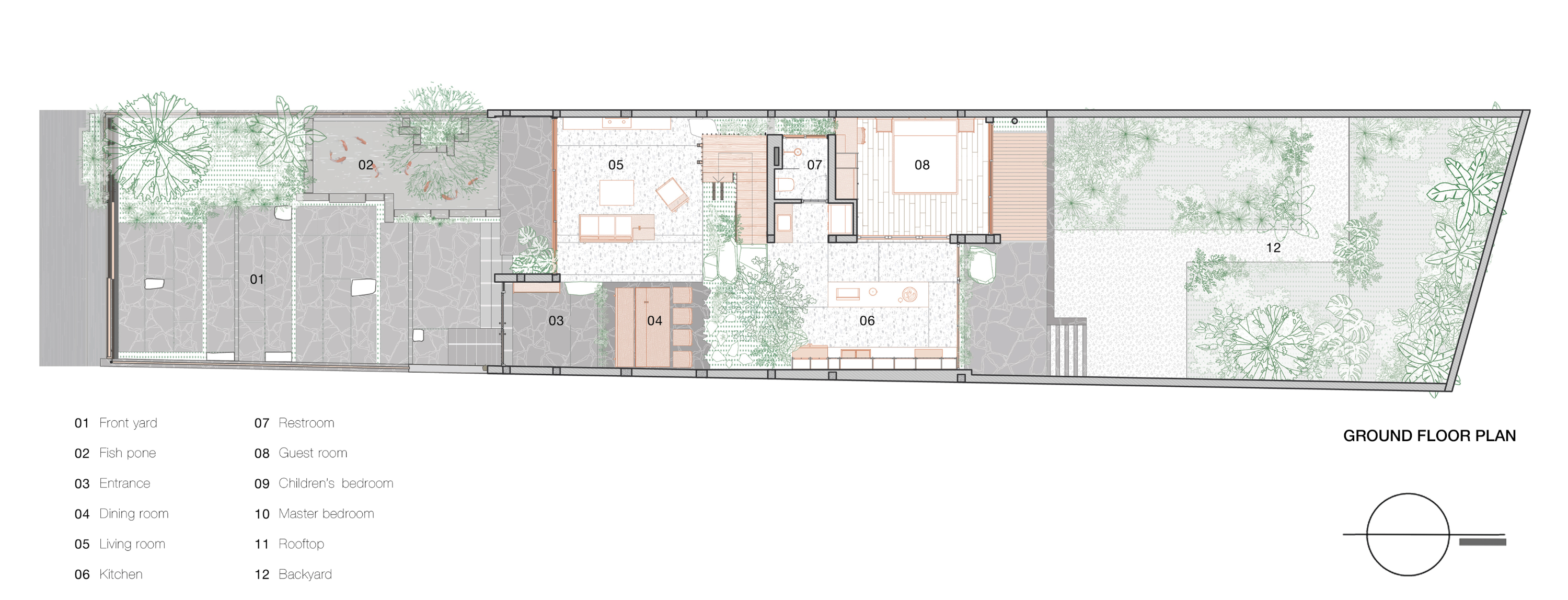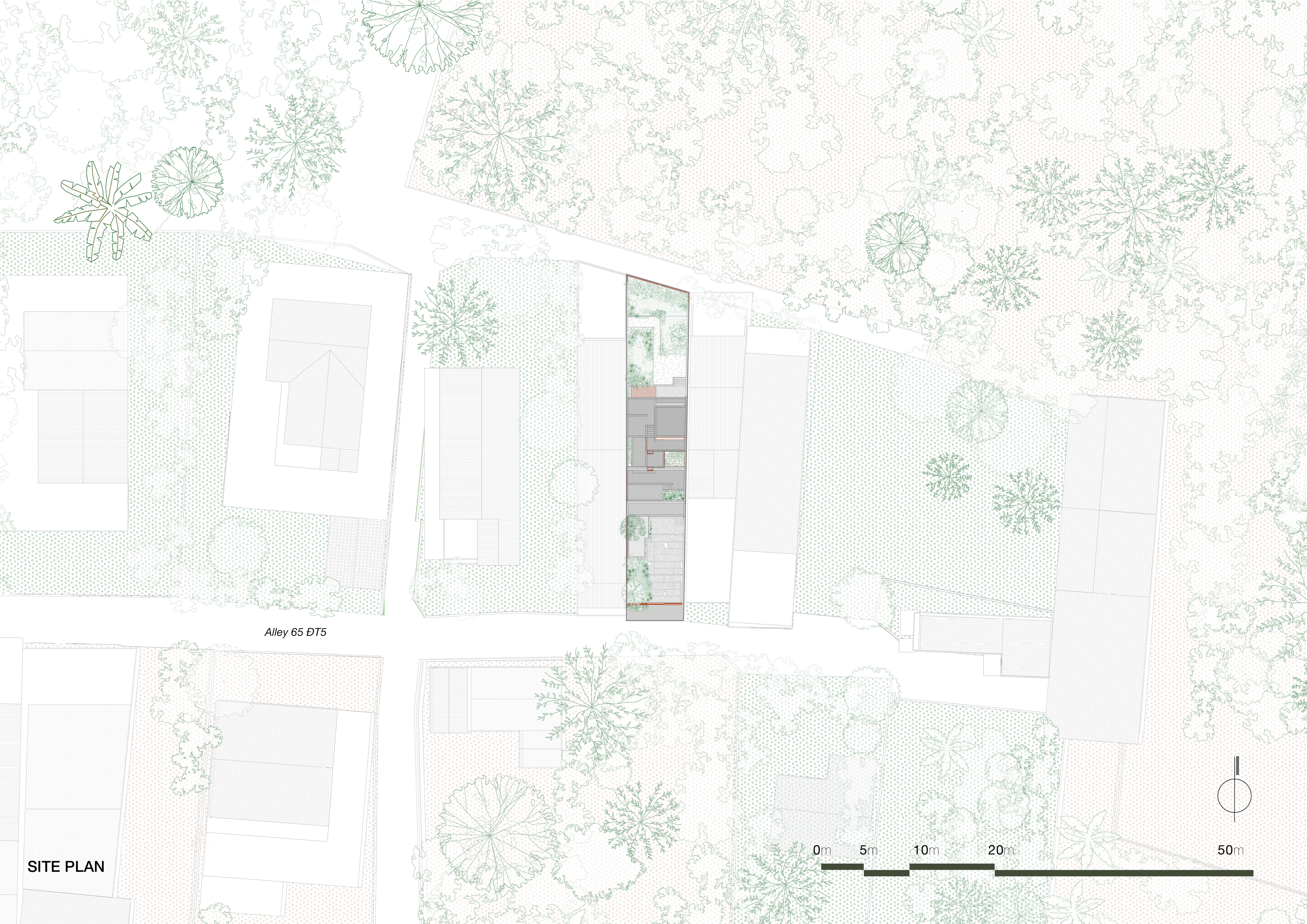 이 주택은 부온마투옛 시 외곽의 준도시 지역, 완만하게 계곡으로 경사진 7×40미터 대지에 자리잡고 있다. 거주자는 젊은 부부와 두 아들로 구성된 4인 가족이다. 이 지역에서 흔히 볼 수 있는 고밀도 주택 형태와 달리, 건축가는 필수적인 공간과 균형에 집중하는 ‘충분한 만큼의 집’을 지향했다. 설계는 대지의 지형과 가족의 일상적인 삶의 방식에 기반하여 세 가지 주요 전략 아래 진행되었다.