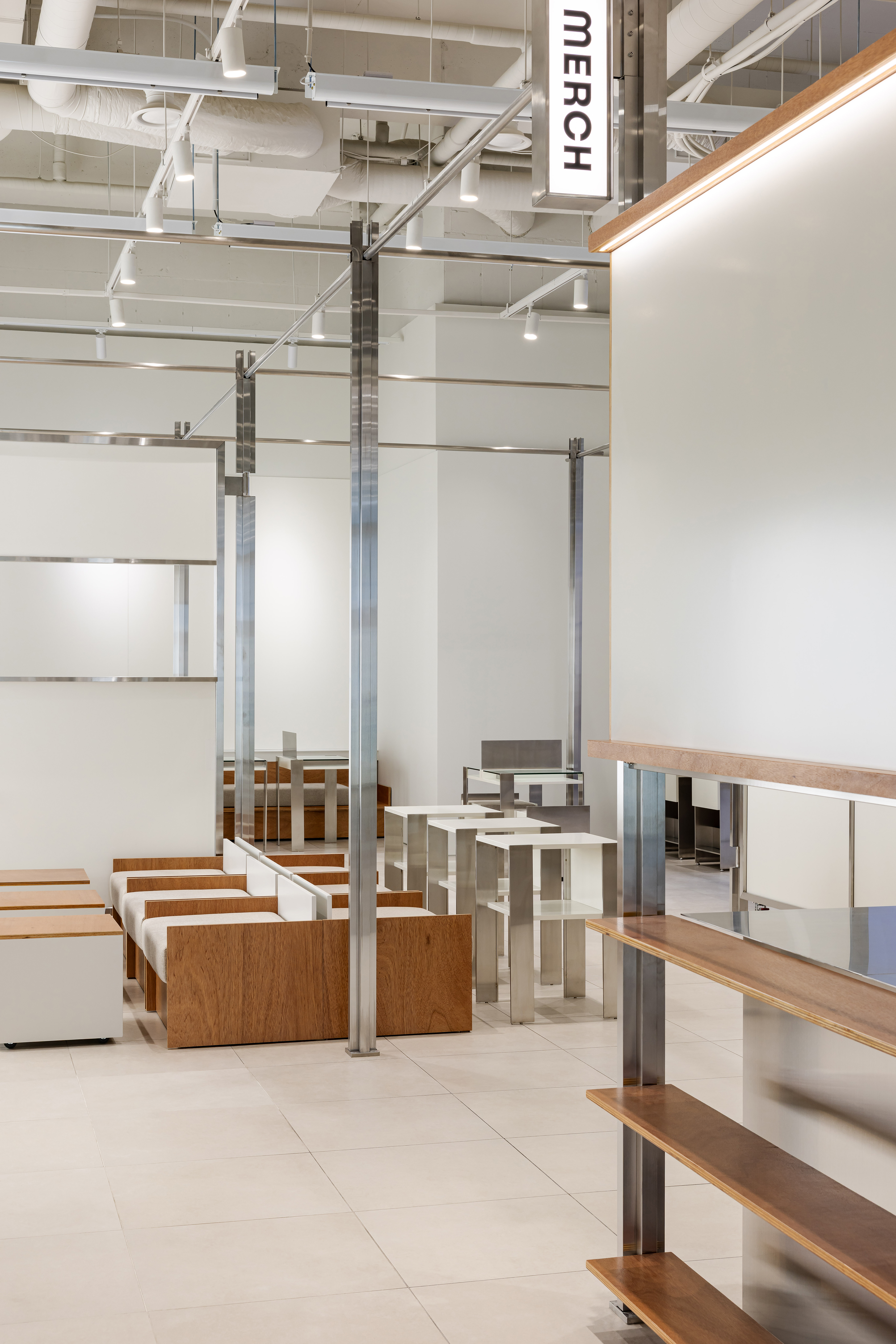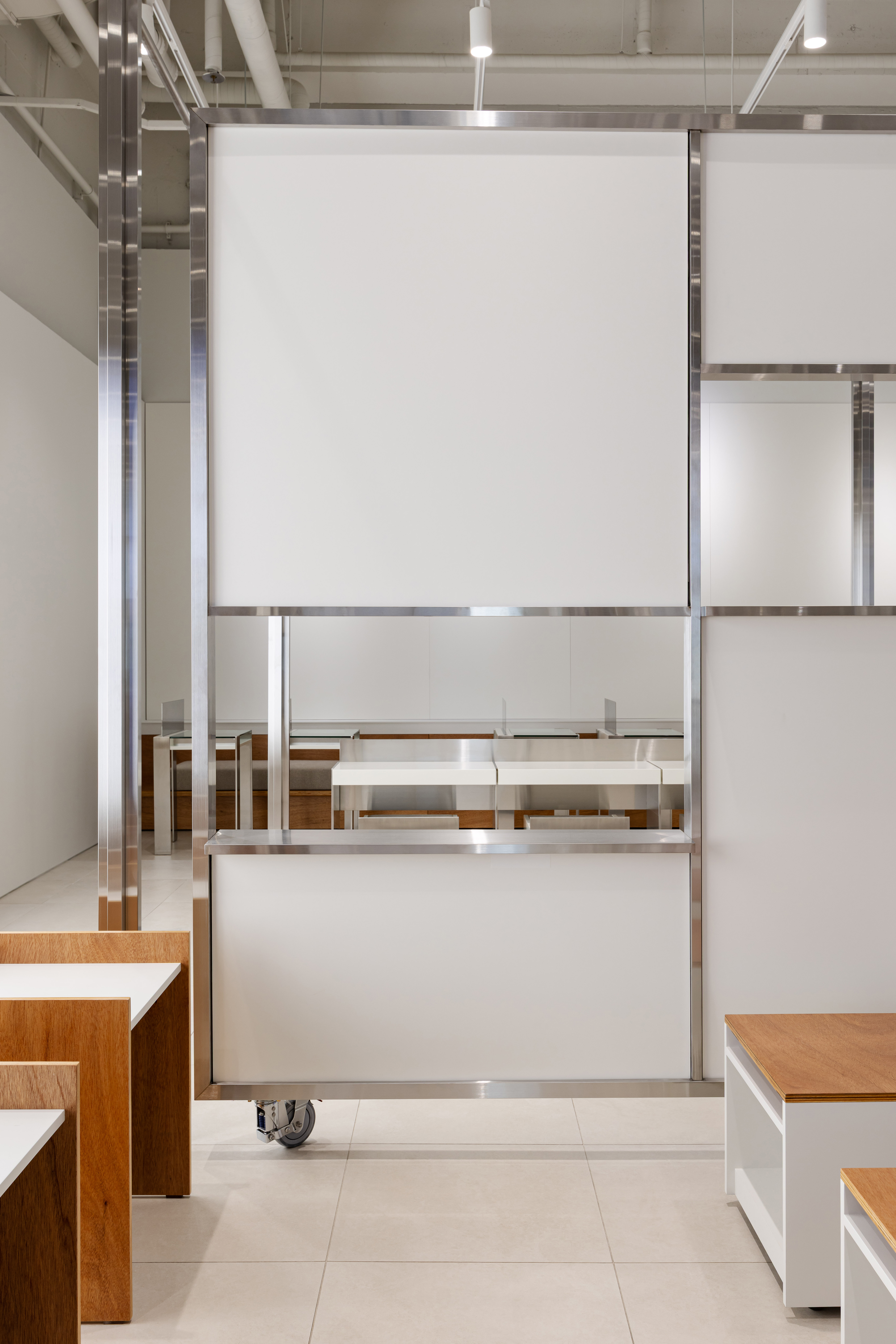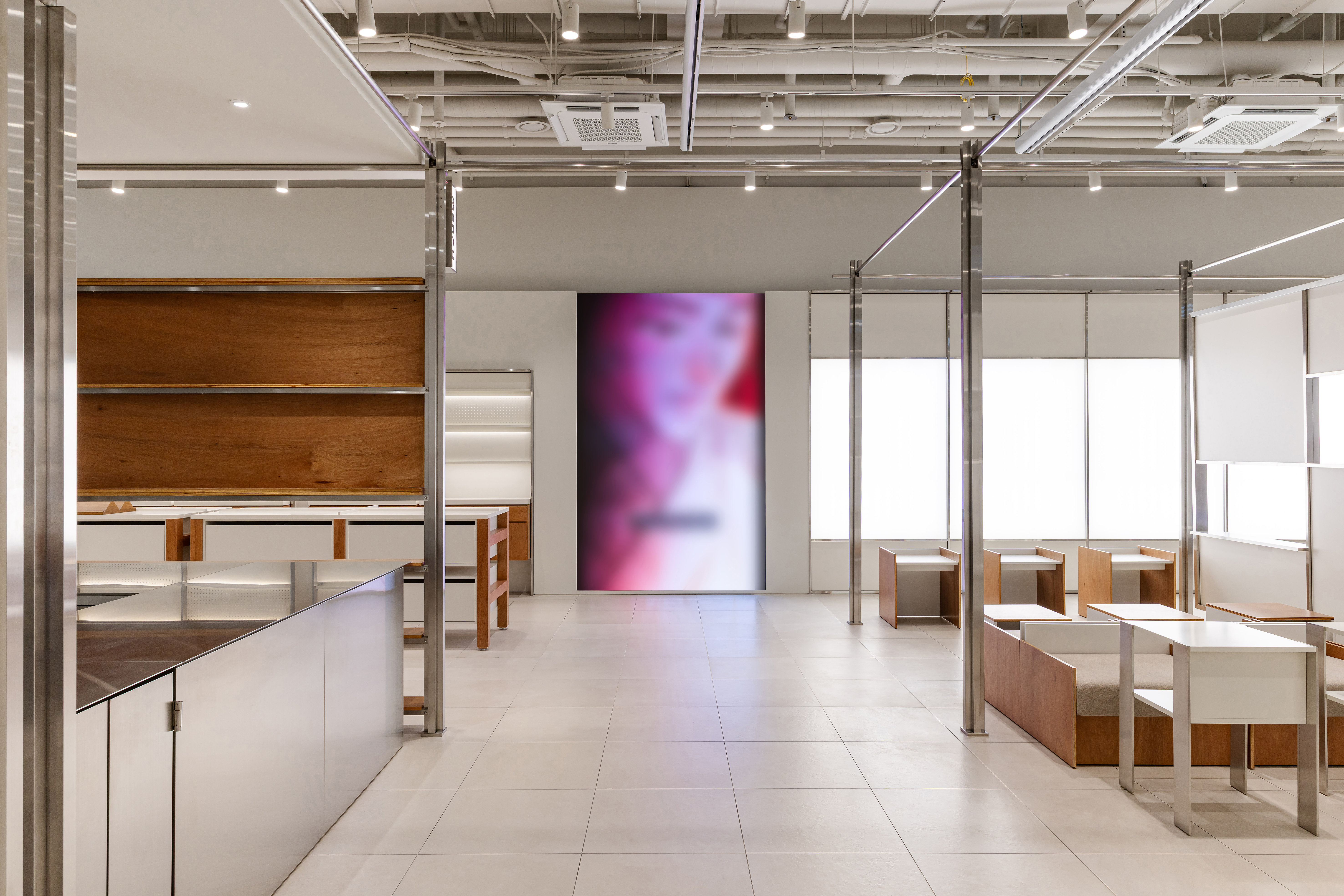 회전하는 만화 원고지 구조는 간판이나 배너를 결합할 수 있도록 십자 기둥과 상부 거치대 형태로 발전했고, 공간의 주요 요소가 되었다. 가구는 다양한 팝업마다 제작되는 굿즈들을 유연하게 진열할 수 있도록 모듈형으로 디자인되었다. 스탠드는 여러 형태로 제작되어 옷장과 진열대에 배치되며, 굿즈 전시에 도움을 준다. 개인의 취향이 점점 더 존중받는 사회 분위기 속에서, 만화에 특화된 이 팝업 공간이 의미 있는 결과를 만들어내길 기대한다.