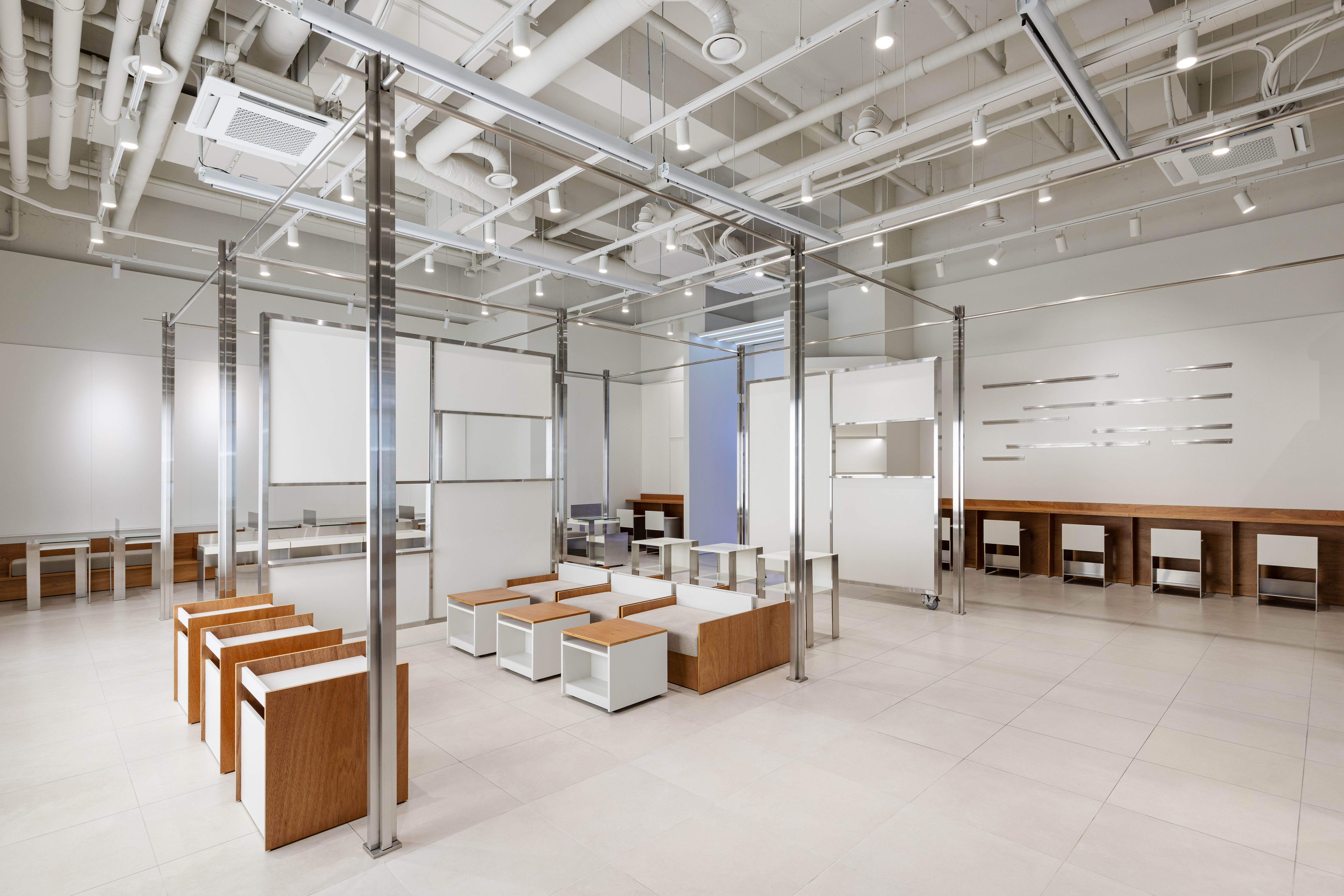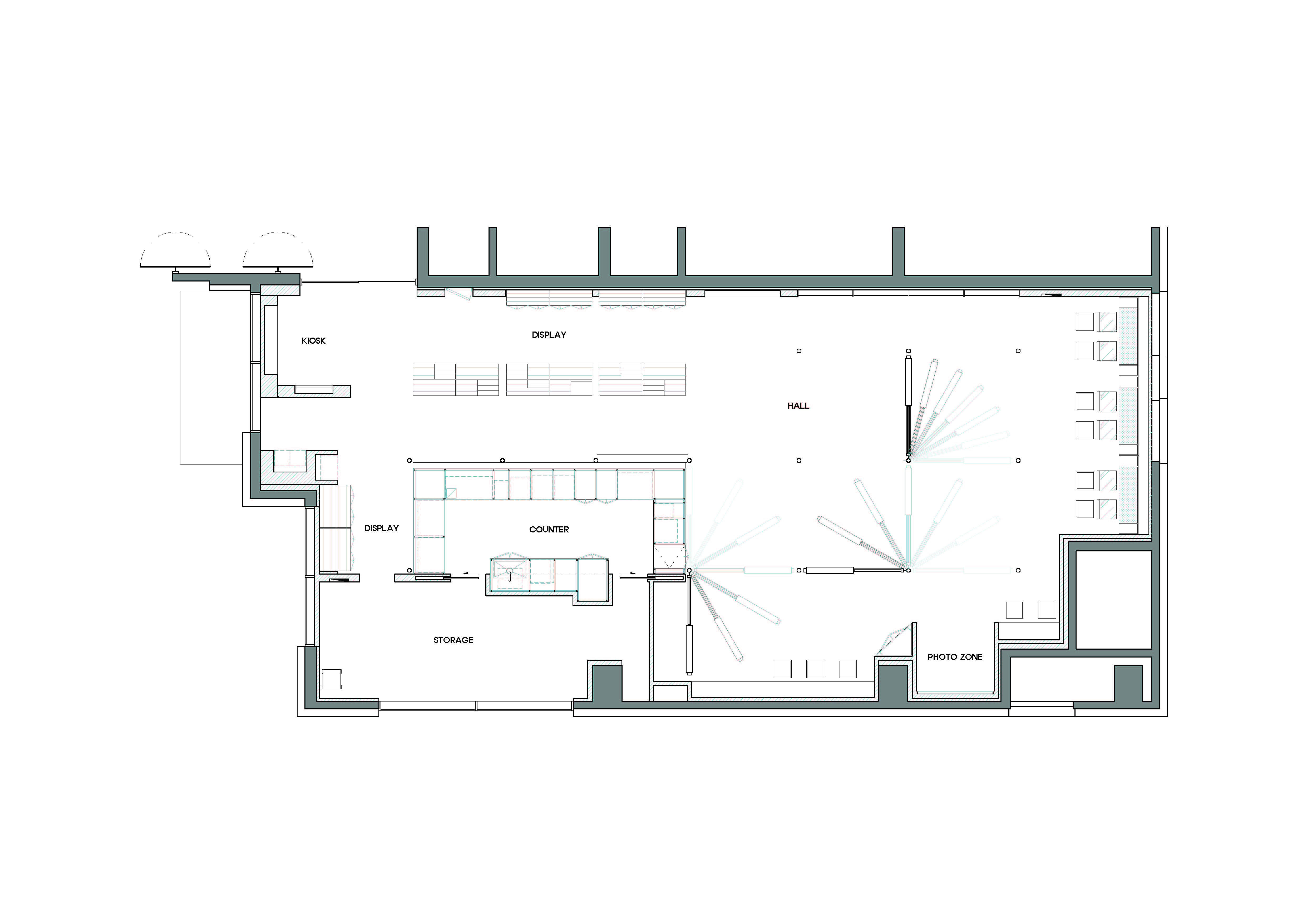 회전하는 만화 원고지 구조는 간판이나 배너를 결합할 수 있도록 십자 기둥과 상부 거치대 형태로 발전했고, 공간의 주요 요소가 되었다. 가구는 다양한 팝업마다 제작되는 굿즈들을 유연하게 진열할 수 있도록 모듈형으로 디자인되었다. 스탠드는 여러 형태로 제작되어 옷장과 진열대에 배치되며, 굿즈 전시에 도움을 준다. 개인의 취향이 점점 더 존중받는 사회 분위기 속에서, 만화에 특화된 이 팝업 공간이 의미 있는 결과를 만들어내길 기대한다.
