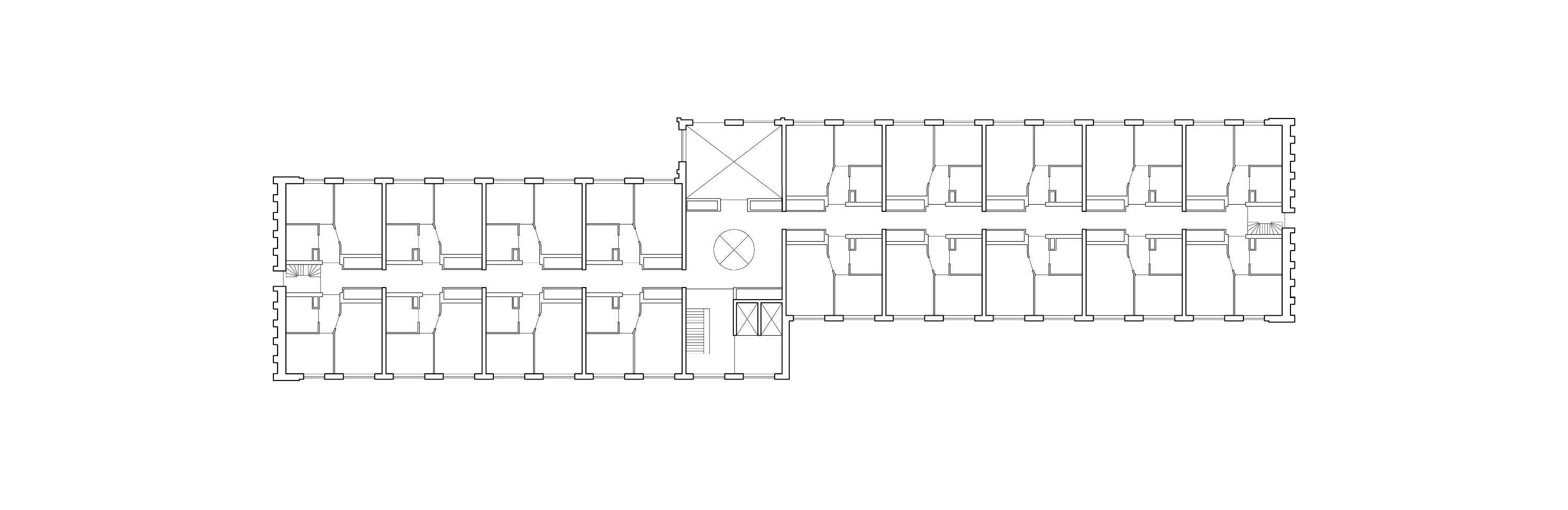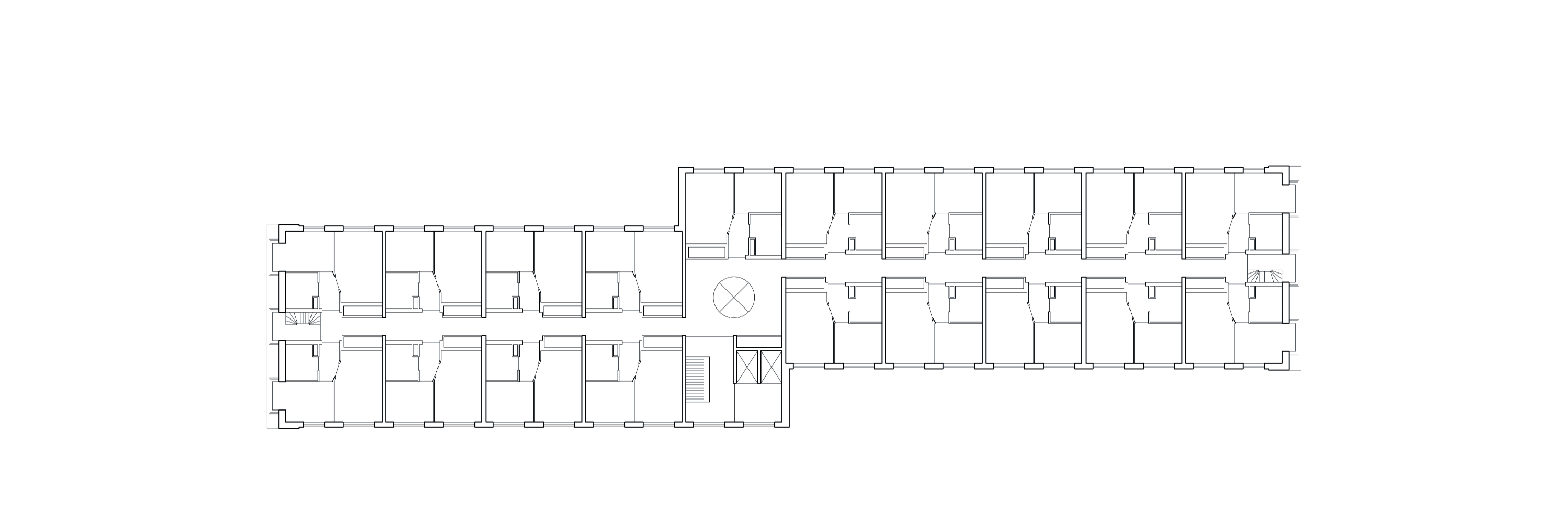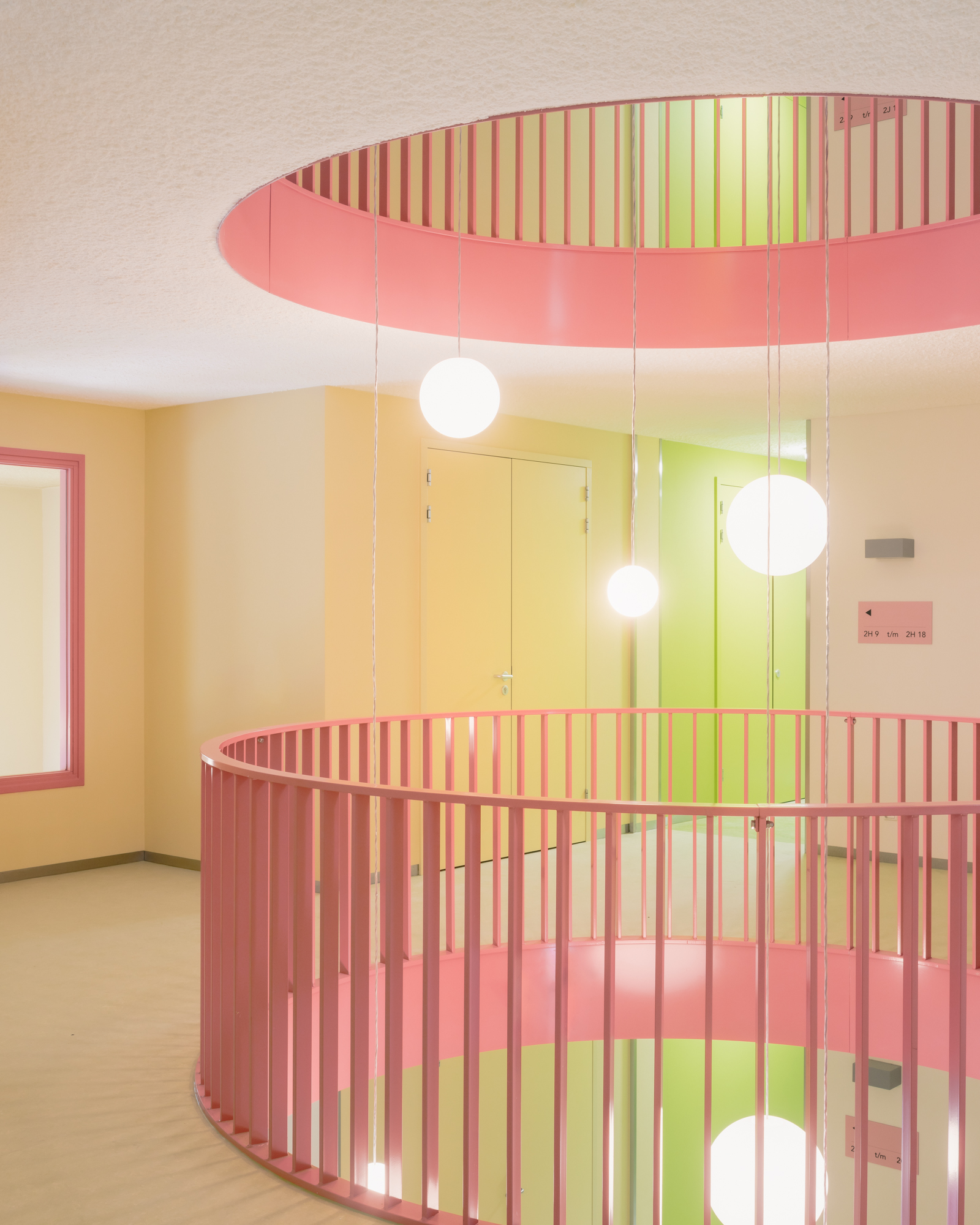 각 세대는 중앙 홀에서 방사형으로 뻗은 복도를 통해 진입하며, 홀 중심에는 원형 아트리움이 자리한다. 건물의 장변 입면은 밝고 긍정적인 색채, 은은한 입체감, 그리고 풍부한 층위감을 통해 활기를 더한다.