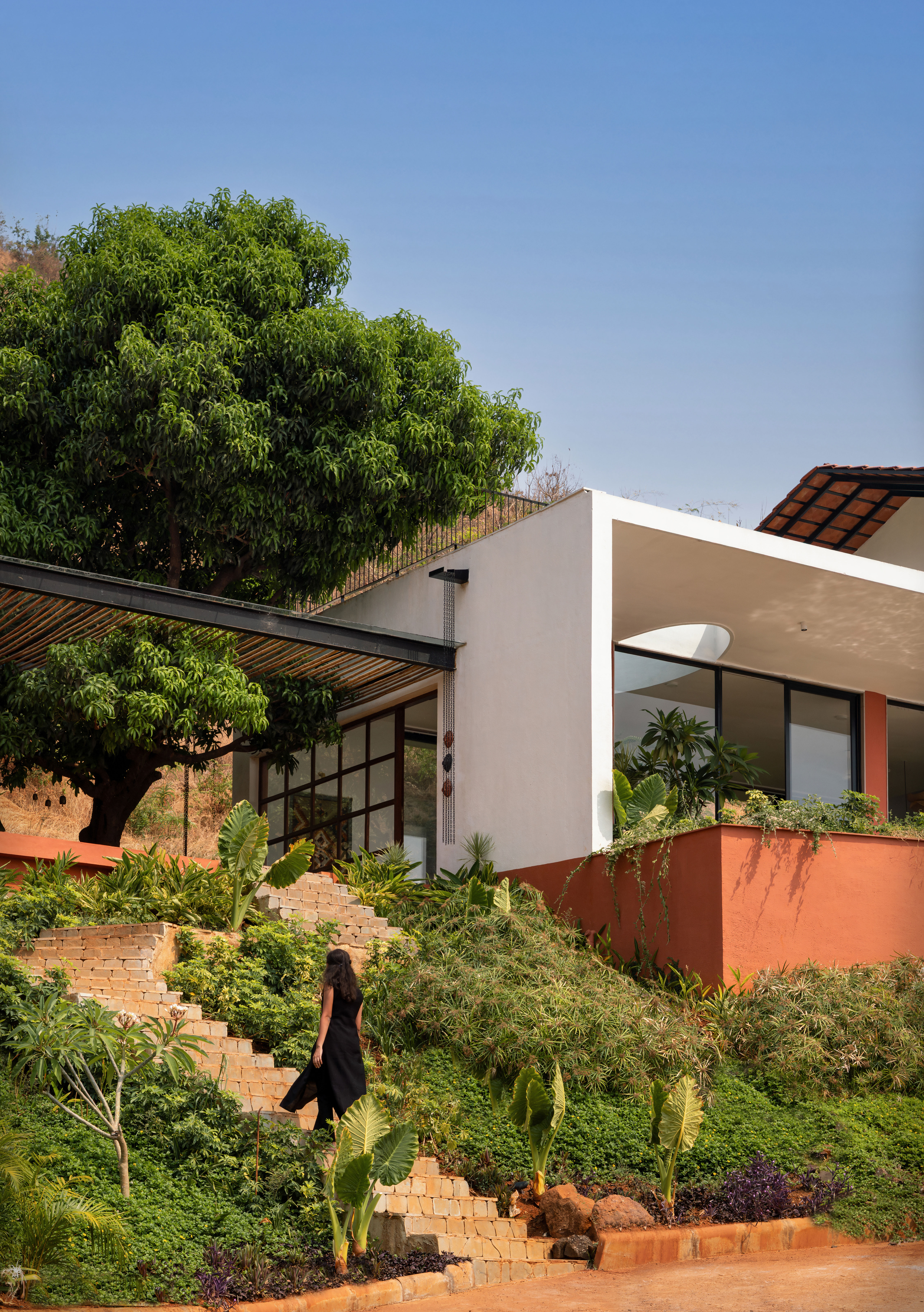 프라크리티(Prakriti)는 산스크리트어로 ‘대자연’을 뜻한다. 인도 사야드리 산맥의 완만한 능선 사이에 자리잡고, 무카네 댐을 내려다보는 이곳에 위치한 프라크리티는 총 4개의 침실, 4500평방피트 규모의 농가 주택이다. 이 주택은 인간과 자연 간의 깊은 연결을 기념하고 강조하는 건축물이다. 프라크리티는 자연을 흉내 내기보다, 자연을 닮아 살아가고자 한다. 적응하고, 생명력을 품으며, 뿌리를 내리고, 아낌없이 베푸는 존재로서. 이 집은 풍경 속에 군림하는 대상이 아니라, 조용한 참여자로서 주변 환경에 스며들고자 한다. 형태, 재료, 방향, 숨결을 통해 자연을 품은 거주 공간이다. 이 숲속 안식처에서 건축은 말하기 전에 먼저 귀 기울인다. 땅 위에 ‘지어진’ 것이 아니라, 땅 속에서 ‘발견된’ 건축이다. 이는 건축이 가장 본질적 형태로서, 듣고, 머물고, 공존하고, 끊임없이 진화하는 방식이다.