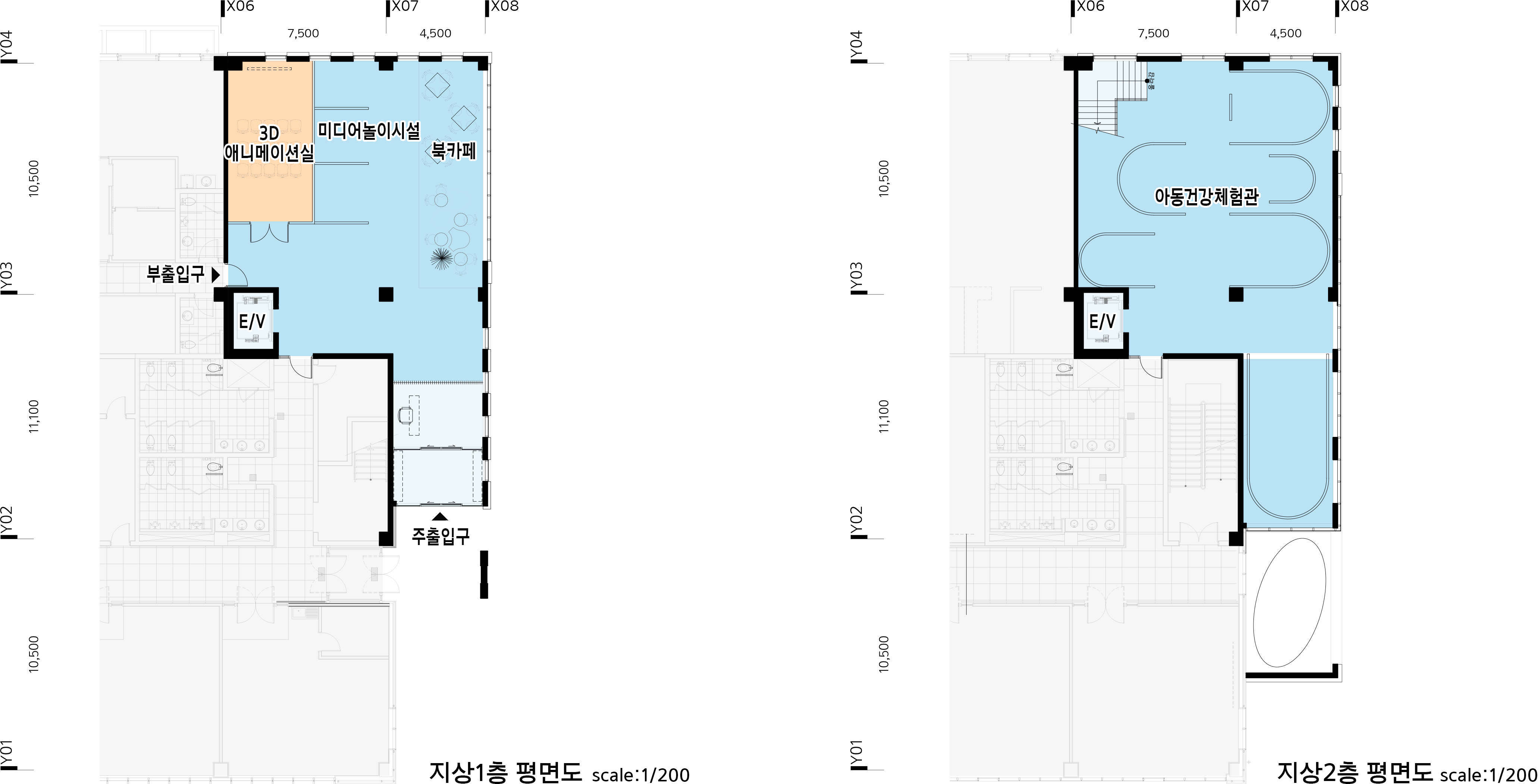 지상 1층, 2층 평면도