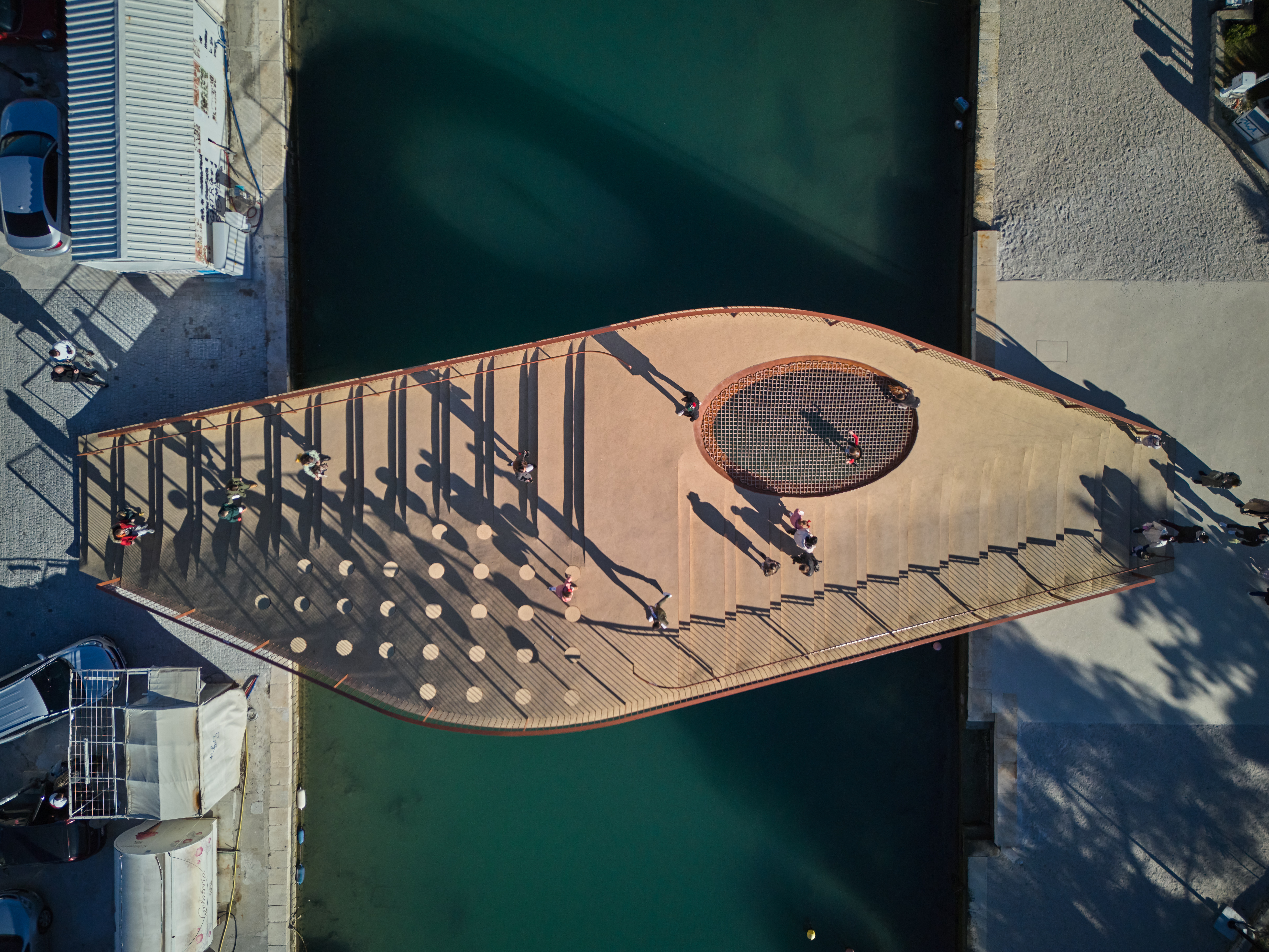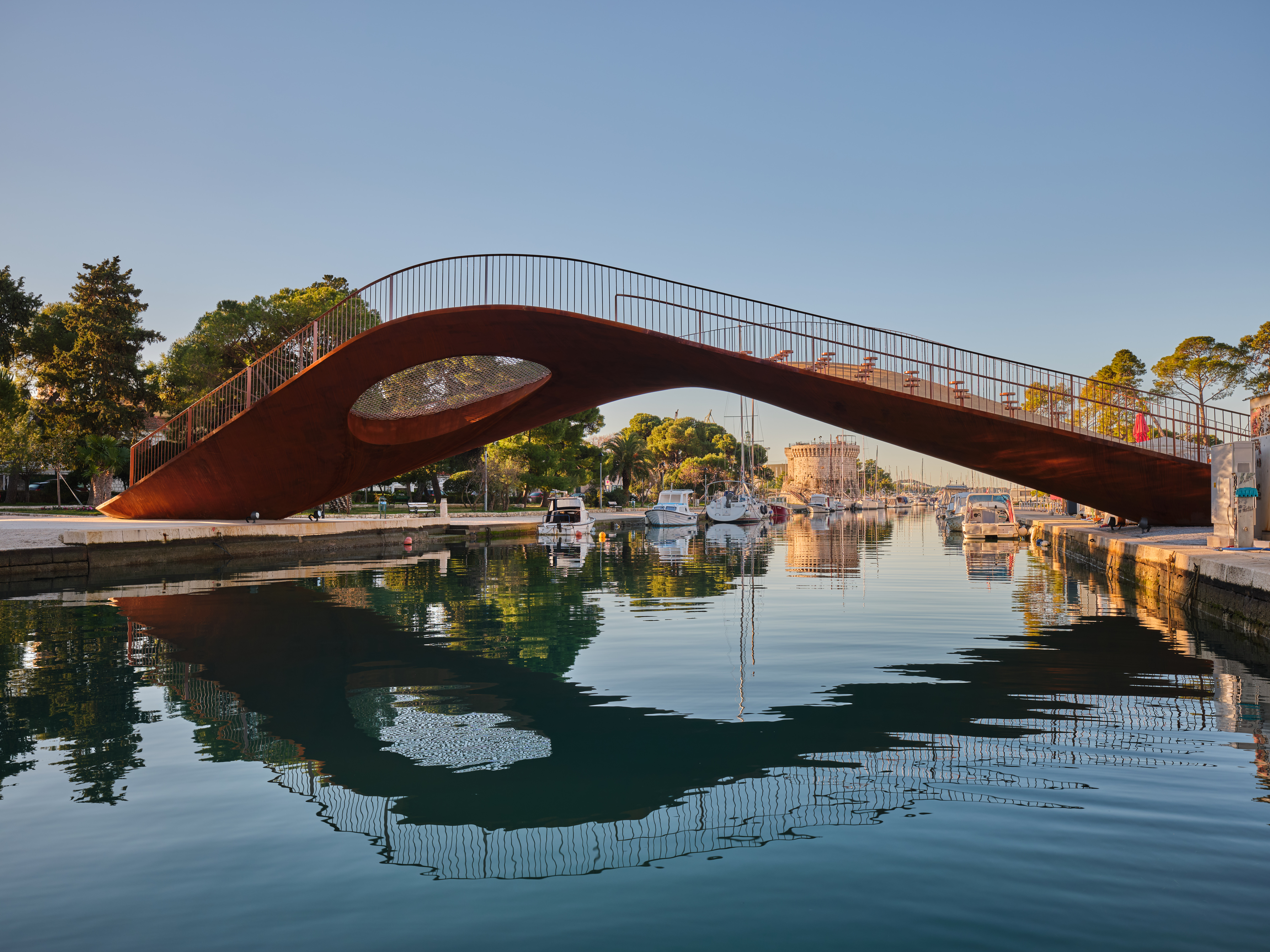 트로기르 보행자 교량은 유네스코 세계문화유산인 트로기르(Trogir)의 역사 도시 경계에 위치하며, 단순한 해협 횡단을 넘어서는 새로운 공공 공간이자 건축적 이정표로서 기획되었다. 이 교량은 도시의 역사적 맥락에 자연스럽게 녹아들면서도 독립적인 정체성을 갖춘 구조물로, 트로기르의 전통적인 조선업과 해양적 정체성을 현대적으로 해석해 반영하고 있다.