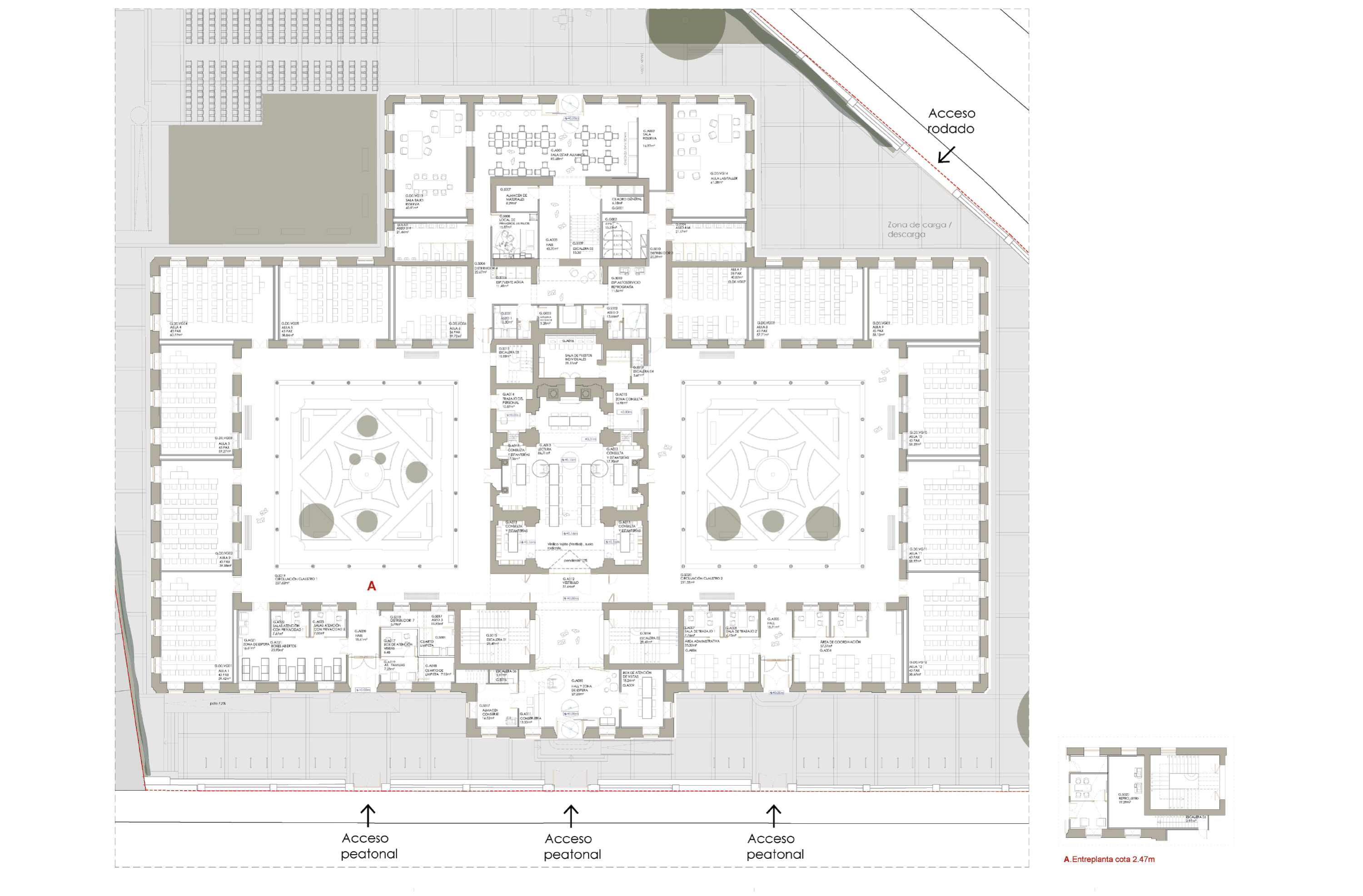 이 역사적 건물의 복원 외에도, 부지 서측에는 신축 부속동이 건립되었다. 이 새로운 매스는 기존 건물과 조화로운 대화를 형성하며, 재료, 색채, 구성 리듬에서 일관성을 유지한다. 이로써 보호 대상인 역사 건축물의 건축적 완결성을 해치지 않으면서도, 현대적 볼륨을 자연스럽게 통합하는 결과를 이끌어냈다. 발렌시아 중심에 자리한 이 건축적 복합체는 문화유산 개입의 모범 사례로 자리매김하며, 디자인과 기능이 조화를 이루는 공간 속에서 풍부한 경험과 효율적인 공간 활용을 가능하게 한다.