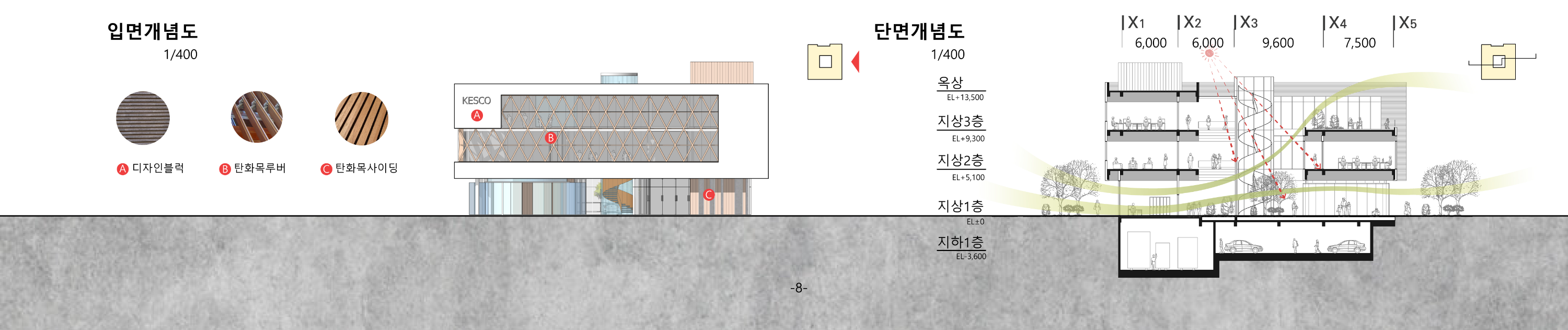 한국전기안전공사의 심볼마크를 활용한 루버를 디자인하여 로고와 함께 파사드에 적용하였다.
