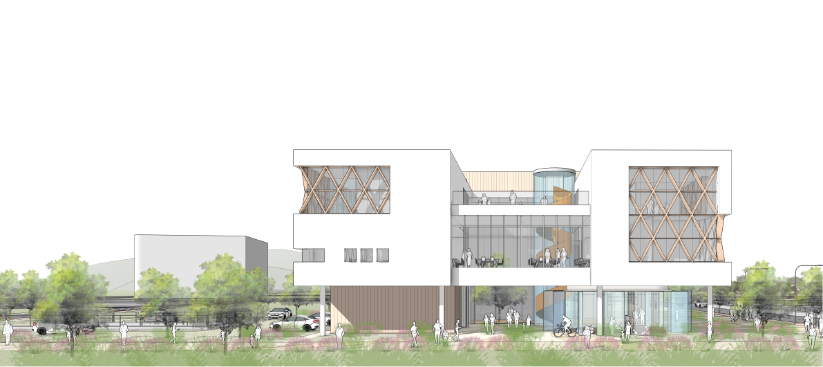 도시계획 상 동쪽으로 보행자 전용도로가 형성되어 북-남방향을 가로지르는 동선이 형성될 예정이다. 때문에 유일하게 차량이 접근 가능한 남쪽으로 주차장을 배치하고, 보행자와의 동선을 명확하게 분리함으로써 안전한 보행환경을 마련해줄 필요성이 있었기 때문에 건물은 북-동쪽으로 열린 중정형 배치로 계획되었다. 또한 시설을 찾는 방문객들은 대상지 기준으로 북쪽에 형성되어있는 도시로부터 주로 유입될 것으로 예상했고, 또한 8차선 광로가 있어 건물의 인지성 또한 가장 높을 것으로 보이는 북쪽으로 건물의 정면과 민원실이 향하도록 했다.