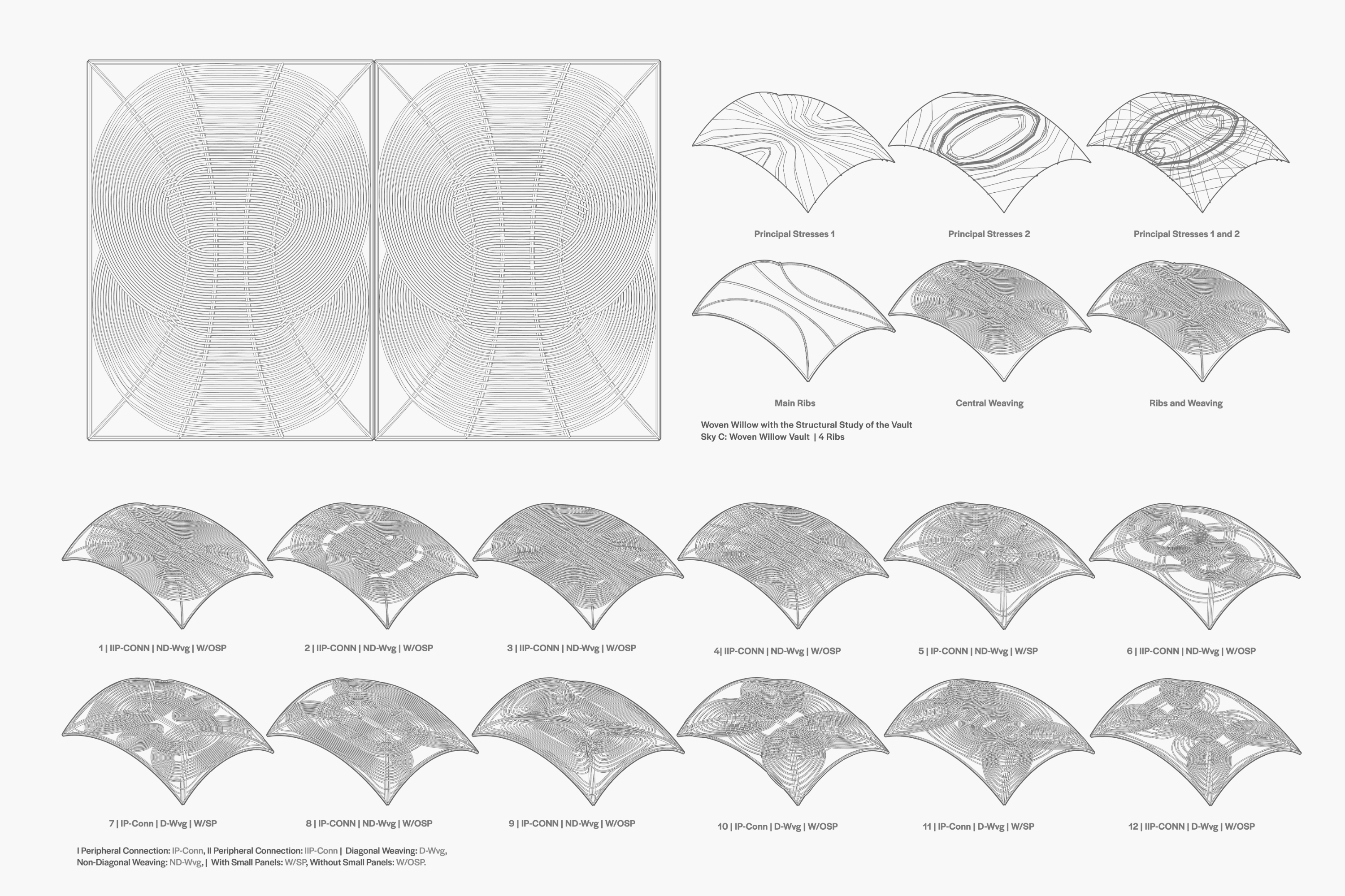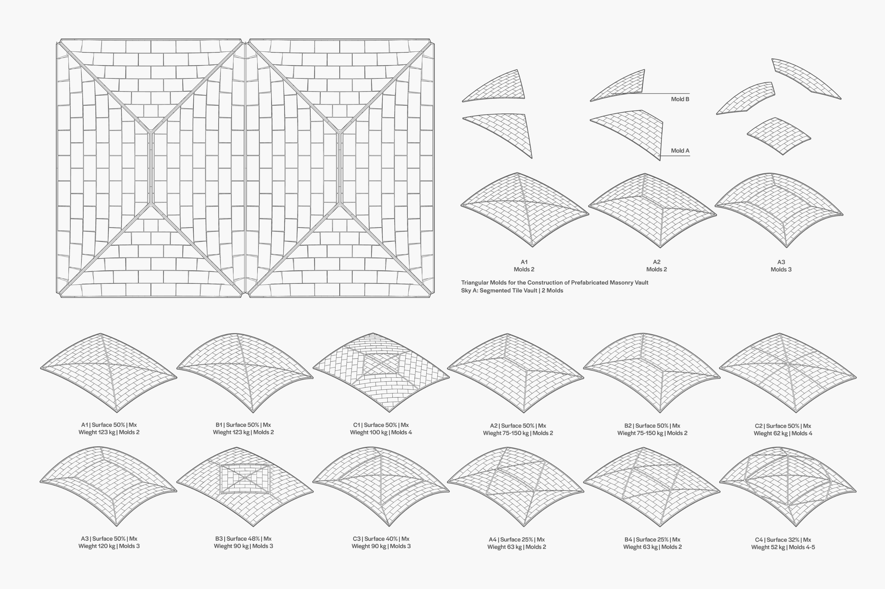 이 설치물은 스페인의 전통 건축 장인과의 협업을 통해, 전통 지식과 신기술의 대화를 이끌어낸다. 설치물은 아케이드(세 가지 지붕 및 바닥 시스템 기법으로 제작된 길이 7.5m의 볼트 구조물)와 그 아래의 ‘Alternative Skies 아카이브’로 구성된다. ‘아케이드’는 시그리드 아드리안센스와 웨삼 알 아살리가 진행한 ‘Structural Crafts’ 협업 프로젝트의 결과물로, 아래의 세 가지 실물 크기 볼트 시스템을 포함한다