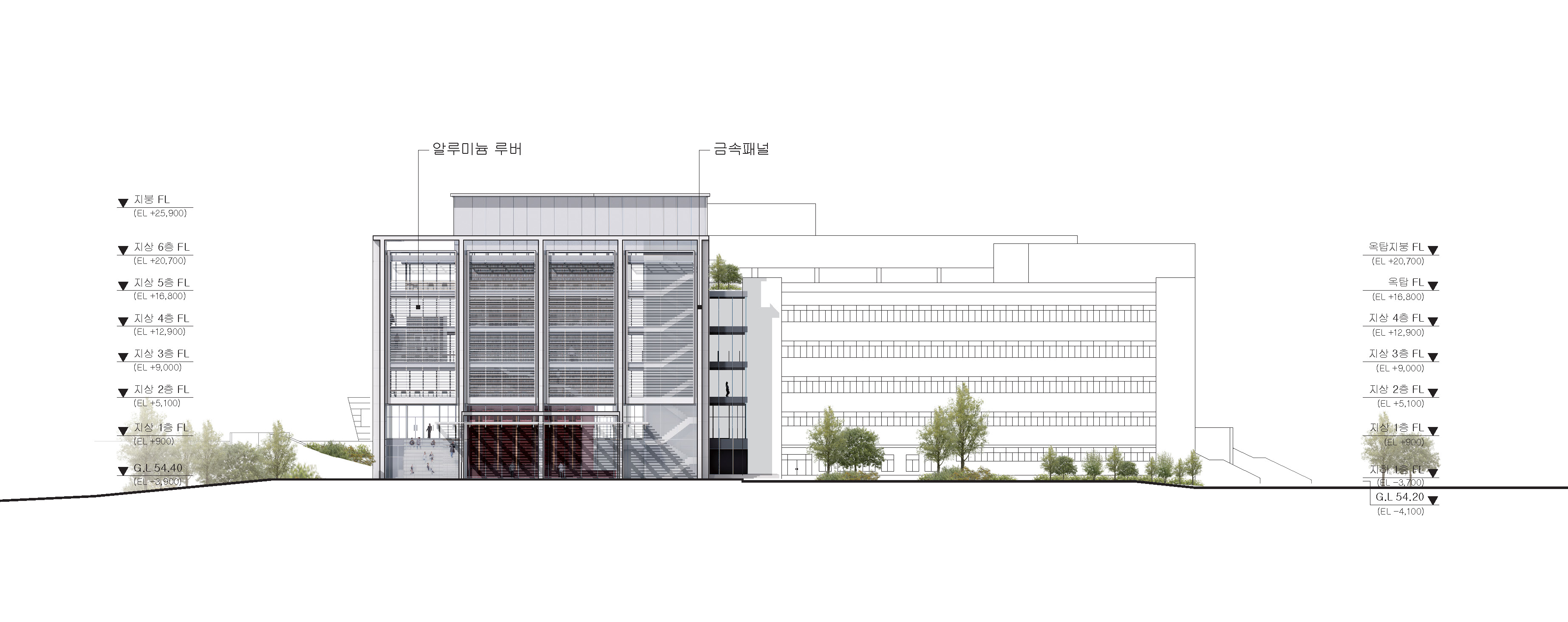 외부마감 금속패널, 로이복층유리, 알루미늄 루버, 알루미늄 시트