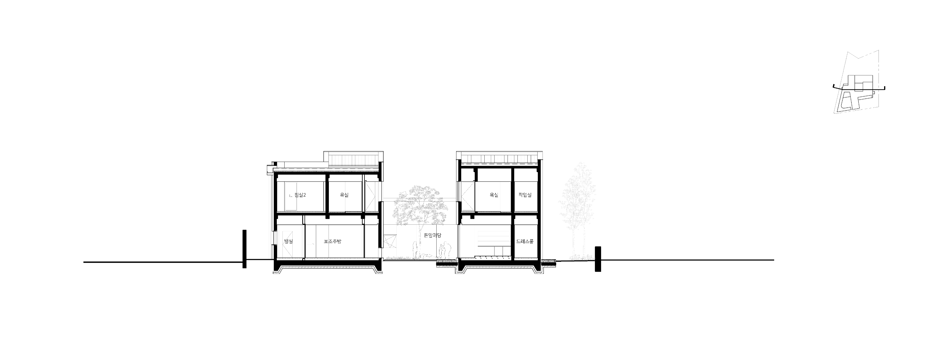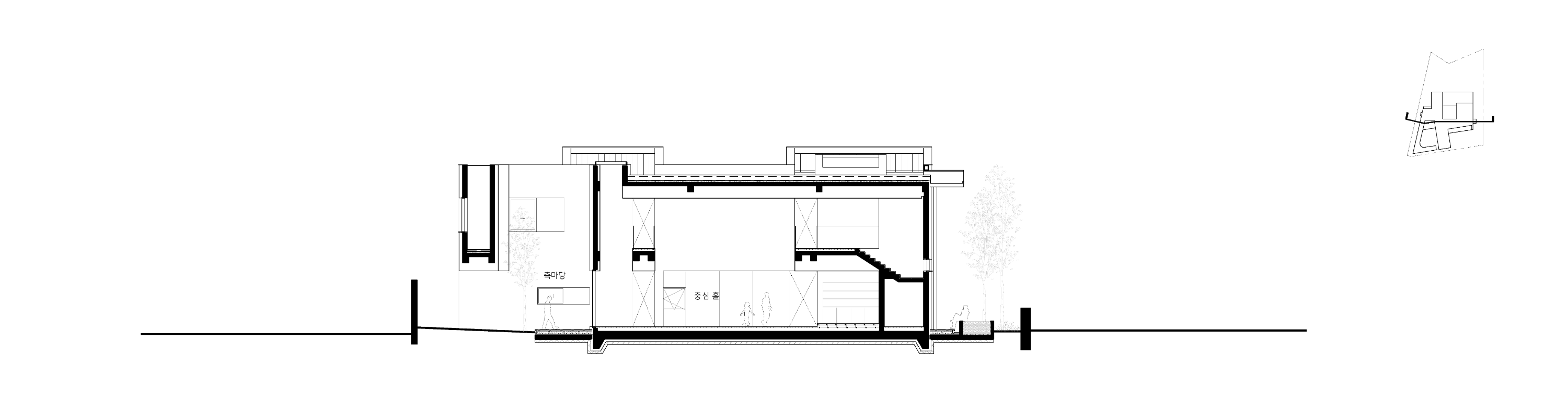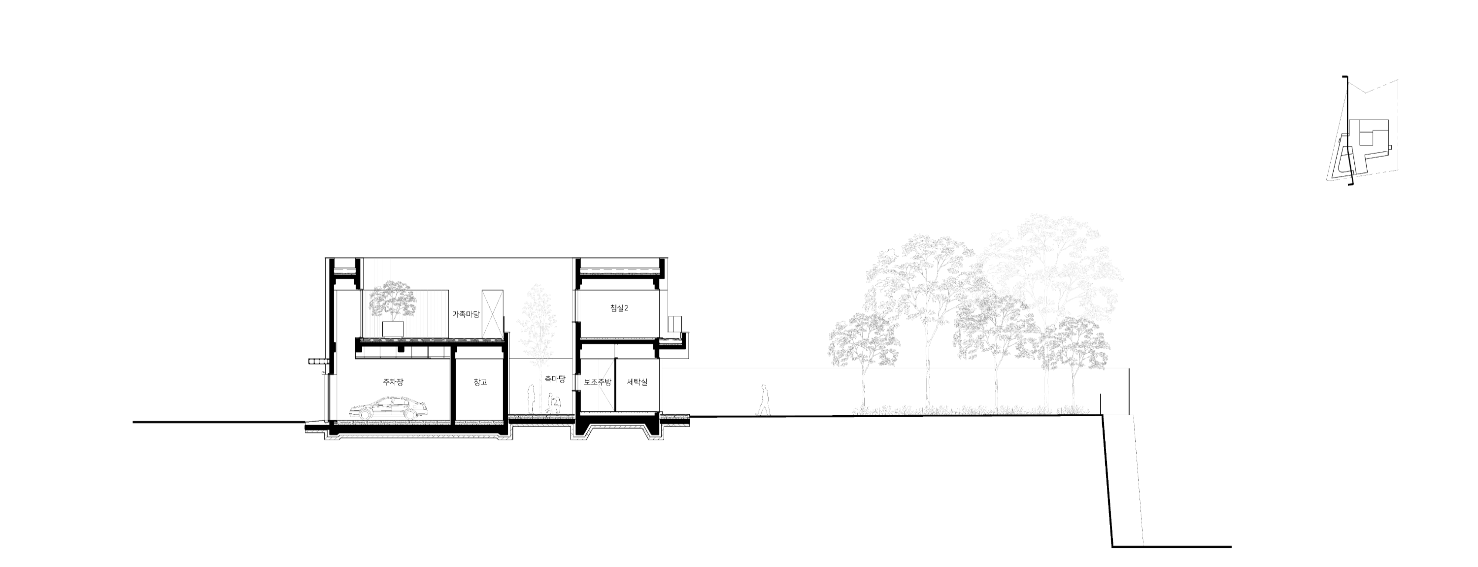 청기와 양옥 자리는 건축주 가족에 의해 두 차례 새로운 주택으로 지어졌고, 기존 주택의 누수 문제로 인해 건축주는 같은 장소에 새로운 집을 짓기로 결심했다. 이 장소에서 50여 년간 살아온 건축주에게 새로운 주거형식을 제시하는 것이 이 프로젝트의 핵심 주제였다. 계획의 방향은 돈암장에서 시작되는 장소의 기억과 관계성을 새롭게 해석하고, 건축주가 살아왔던 주택의 기억과 현 시점의 주거 공간 체계를 연결하는 것이었다. 기존 주택은 거실 중심의 1층, 가족실 중심의 2층, 지하 공간과 부속동으로 구성된 일자형 양옥 구조였다. 이러한 실내 공간 배열, 진입 마당, 거실 앞마당의 기억을 유지하면서, 돈암마당과 중심 홀을 관입시켜 새로운 중심 공간을 만들고자 했다.