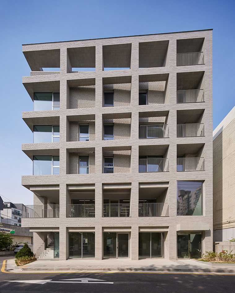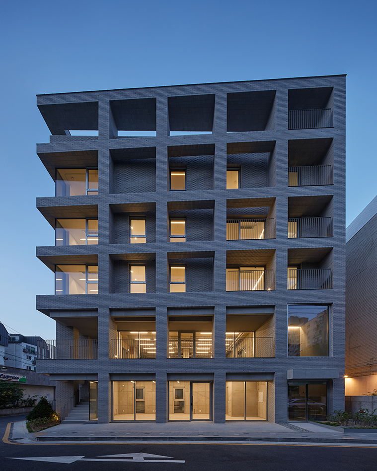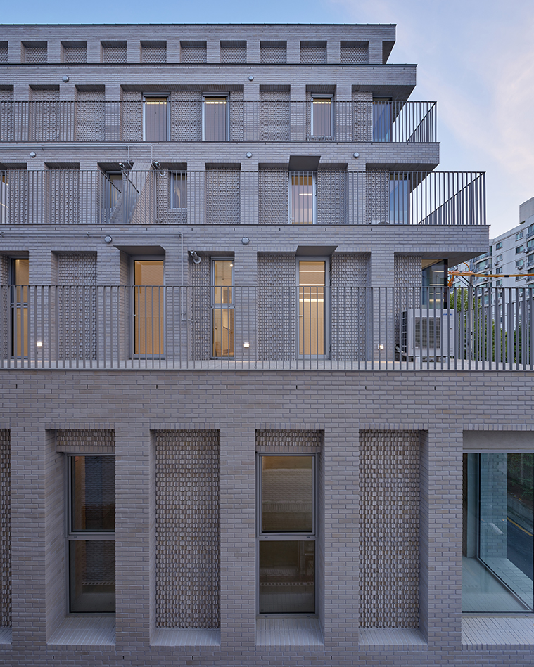그리드 149는 고층의 대규모 아파트 단지와 저층 소규모 공동 주거의 경계에 있다. 이 경계는 아파트와 소규모 공동 주거의 주민들이 다양한 일상을 공유하는 생활 가로이다. 생활가로의 활력을 유지하며, 아파트 일색의 도시에서 다양한 주거 생태계를 위한 새로운 저층 주거에 대한 고민이 프로젝트의 시작이다. 생활 가로의 활성화를 위한 저층 상업시설의 주변으로의 ‘열림’과 아파트 못지않은 주거의 프라이버시를 위한 ‘닫힘’이 공존할 수 있도록 땅과 길의 경계에 건축적인 장치인 그리드를 제안하였다. 안과 밖으로 작동하는 양면의 그리드는 닫힌 담장이 되는 동시에 열린 창이 되기도 한다. 그리드와 외벽 사이의 비워진 여지의 공간은 서향의 빛을 조율하는 가림막이자, 일상을 보호하는 구조물이 된다.