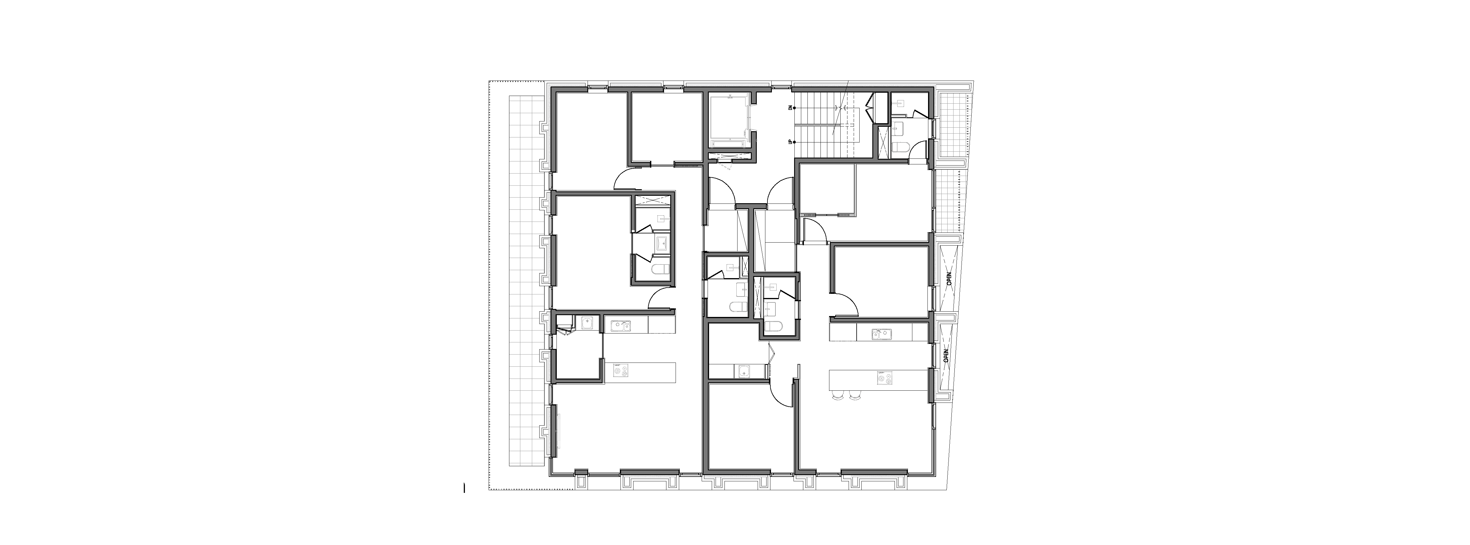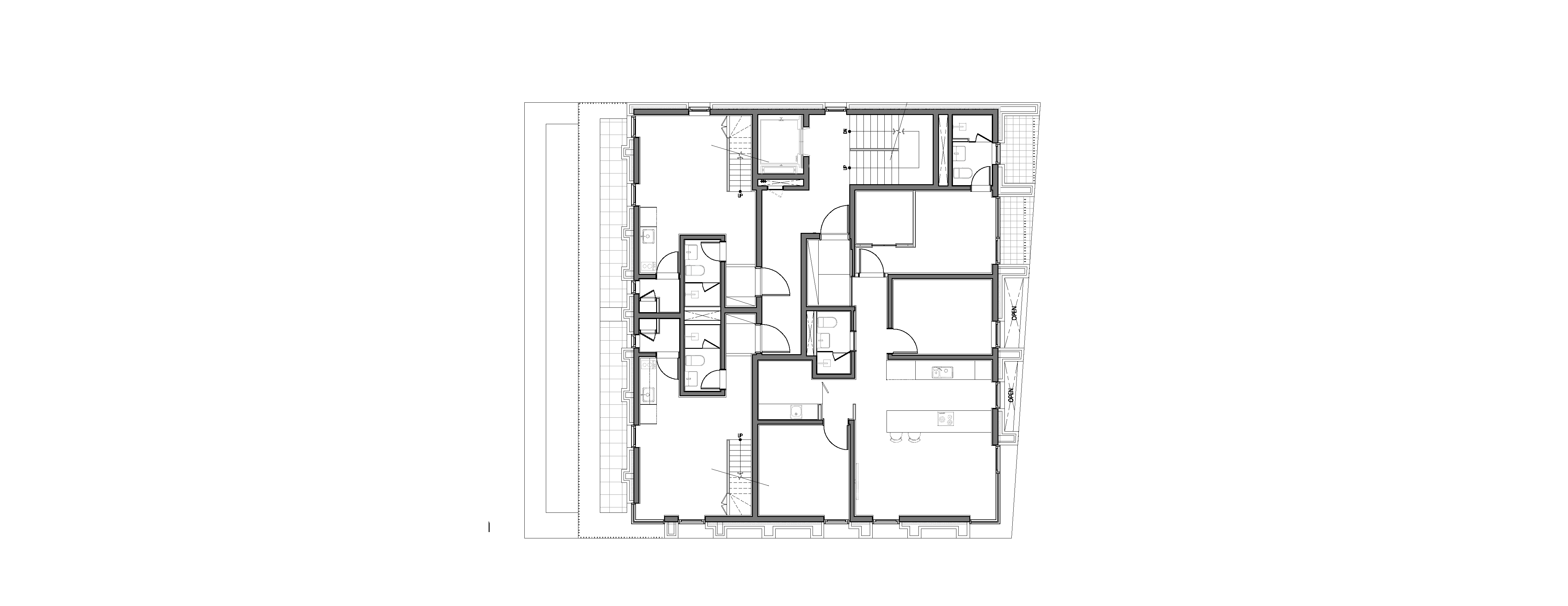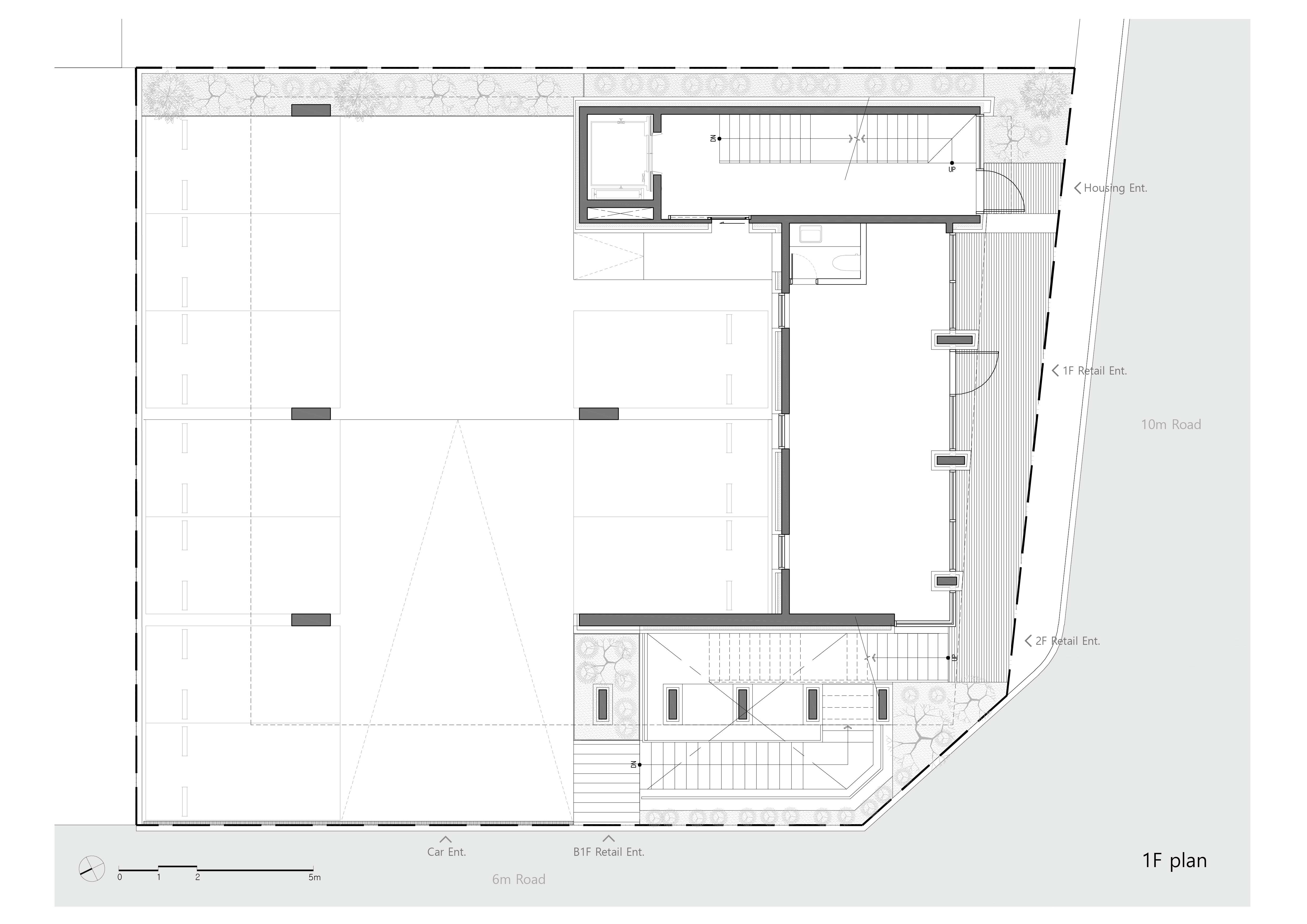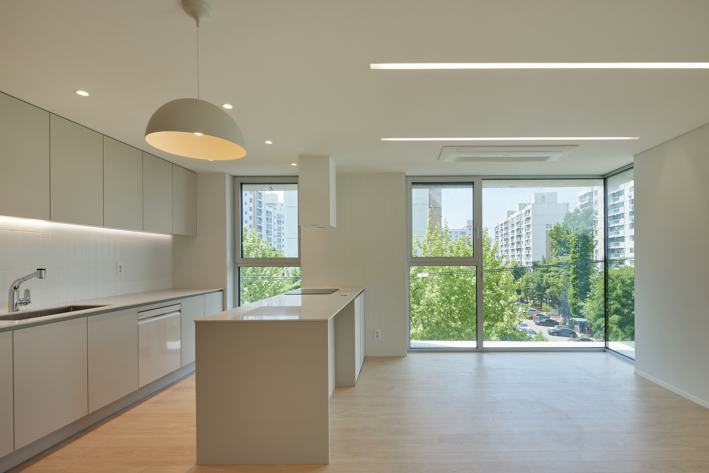 얕은 깊이감을 가지는 도로의 교차 면에는 거실과 응접실, 주방 등 비교적 공적인 영역을 배치하고, 깊은 깊이감을 가지는 부분에는 침실, 욕실 등을 배치하여 도시로 좀 더 열린 주거를 계획하고자 하였다. 향마다 다른 깊이를 가지는 그리드는 각 향에 맞게 일조량을 조율하는 처마와 차양으로 친환경적인 장치이다.