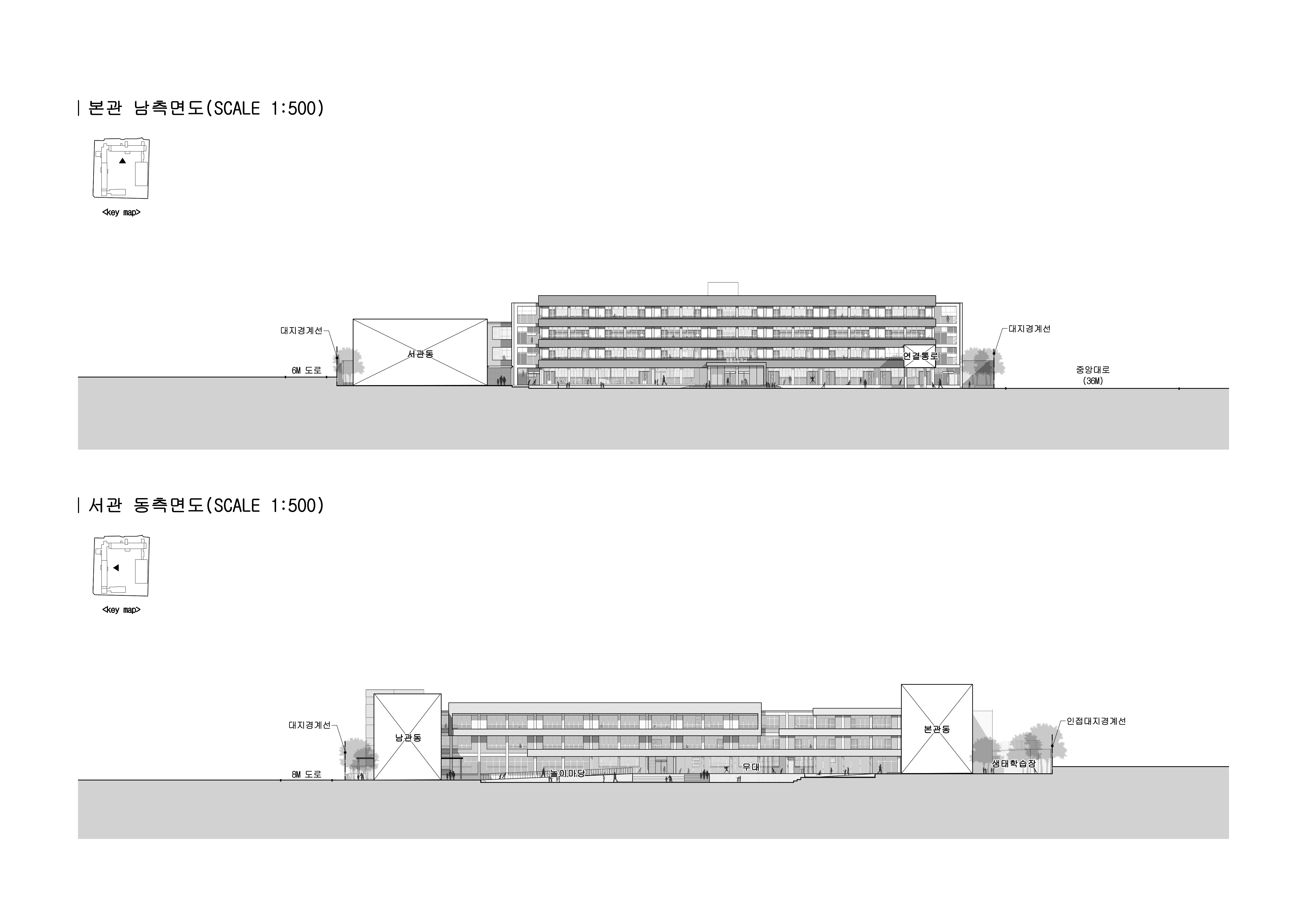 층수 본관 지상4층, 서관 지상3층, 남관 지상4층