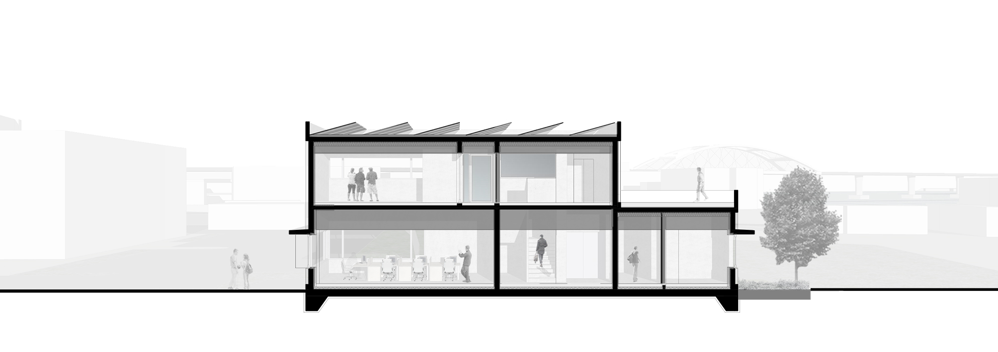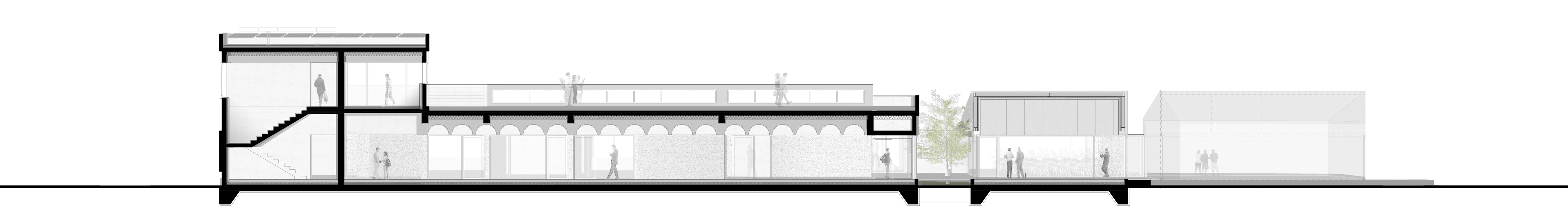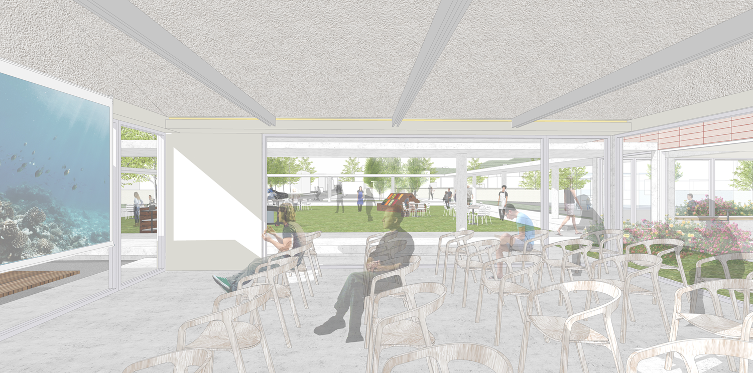 우리는 이 잊혀진 흐름의 끝, 내항과 도시가 다시 만나는 자리에 건축의 가능성을 그려보고자 했다. 단절된 도시의 블록에 작은 틈을 내어 공공성과 역사의 결을 이어 흐름을 회복하는 일. 건축이 마치 도시침술처럼 작동되길 바랬다. 길게 뻗은 대지 위로 자연스레 사람들의 발걸음을 유입하고, 건물의 회랑과 만나 더 적극적인 동선을 만든다. 회랑은 대지를 한 바퀴 돌며 기존의 건축물과 새로운 볼륨을 유기적으로 연결하고, 누구나 잠시 머물며 숨을 고른 뒤 내항과 도시 사이를 잇는 자연스러운 흐름의 일부가 된다. 존치 건물과 신축건물은 마치 처음부터 그러했던 것처럼 적당한 긴장감과 일정한 간격을 두고 배치되며, 그 사이 공간들은 다양한 외부공간들을 통해 채워진다. 세 건물은 하나의 군도처럼 흩어져 있되, 비워진 틈새마다 자연과 휴식의 공간을 스며들게 하여 다소 경직된 업무공간을 일상적이지만 특별한 경험의 공간이 되로록 계획하였다.