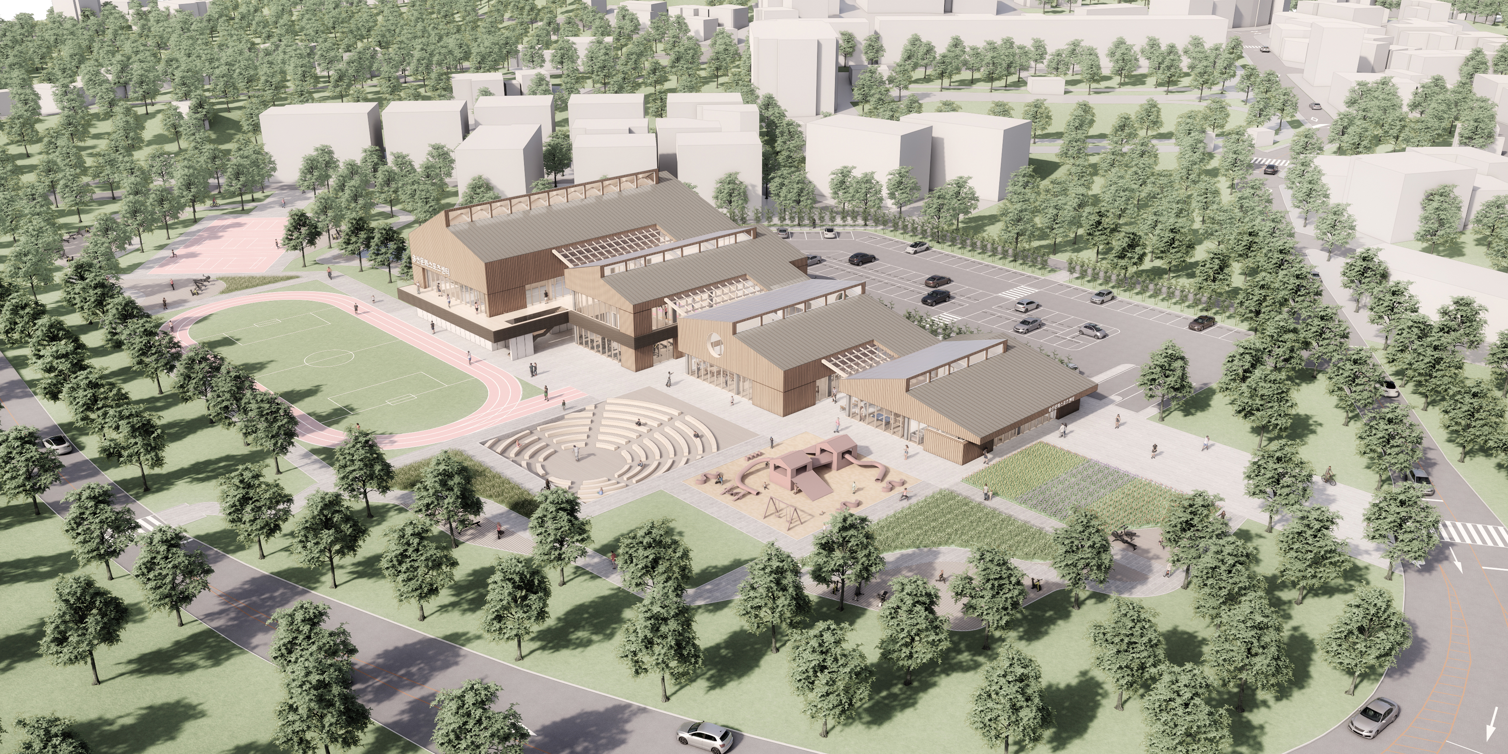본 계획은 전 세대를 아우르는 복합 문화체육시설로, ‘한 마을 네 가족’이라는 개념 아래 구성되었다. ‘한마을’은 동일한 땅 위에서 살아가는 공간 구조를 뜻한다. 네 개의 프로그램 그룹은 ‘네 가족’이라는 은유를 통해 독립성과 개별성을 부여받는다. 그 모두가 마을 이웃처럼 ‘연결마을’을 중심으로 관계를 맺고 살아가는 공동체를 만드는 것이 본 계획의 핵심이다.