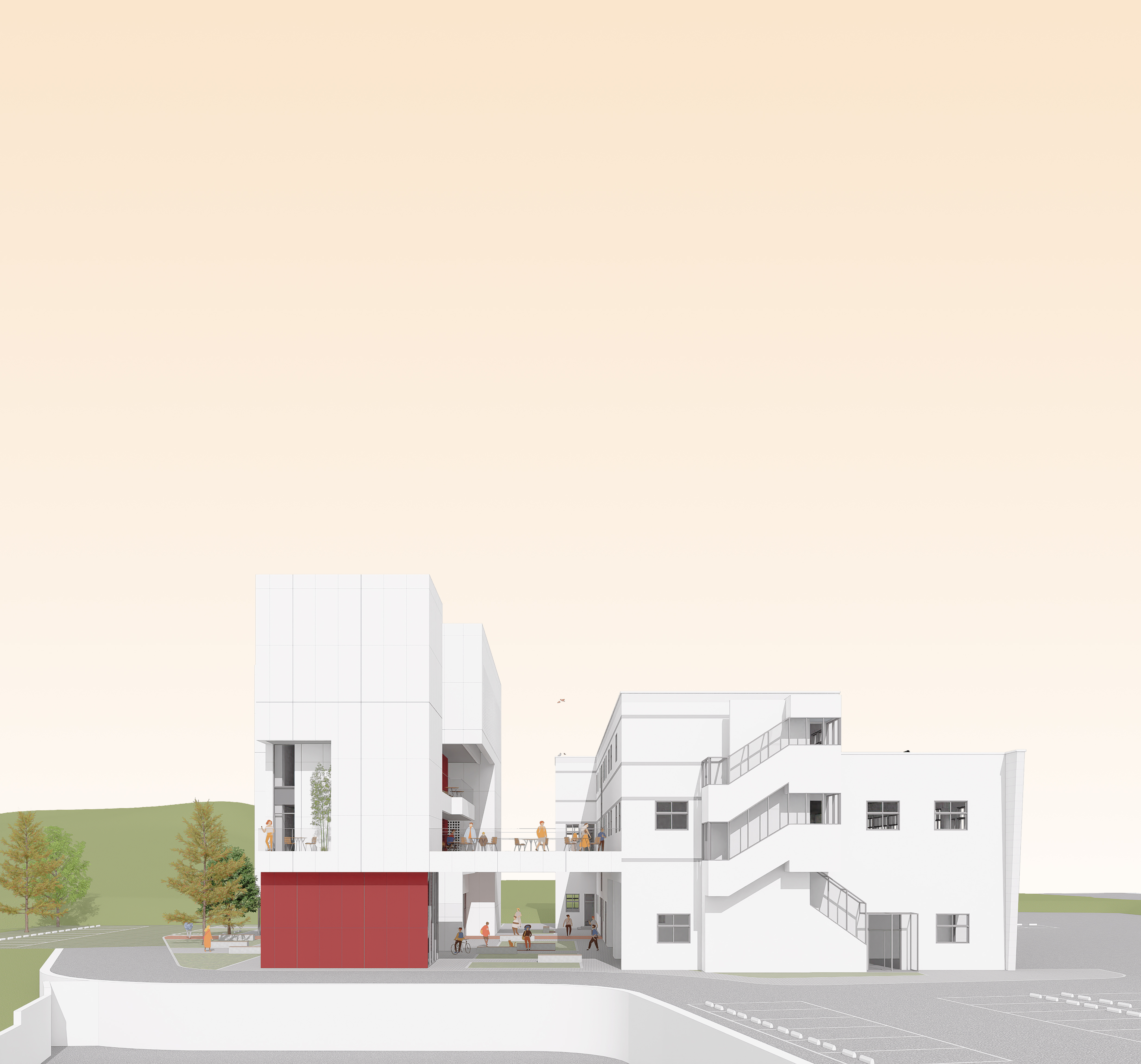 부여소방서 증축은 단순히 공간이 부족해진 청사를 확장하는 계획이 아니다. 이 프로젝트는 기존 건물과 새 건물이 어떻게 서로 다른 기능을 이어가며, 동시에 하나의 시스템으로 작동할 수 있을지를 질문한다. 기존 청사는 오랫동안 지역 안전을 지켜왔지만, 기능 중심의 배치로 인해 조직 간 단절이 발생했고, 동선과 시선의 불연속성이 드러났다. 따라서 이번 증축은 ‘더 많은 면적을 만드는 것’이 아니라, ‘서로 다른 기능을 연결하는 새로운 관계’를 구축하는 데서 시작했다.