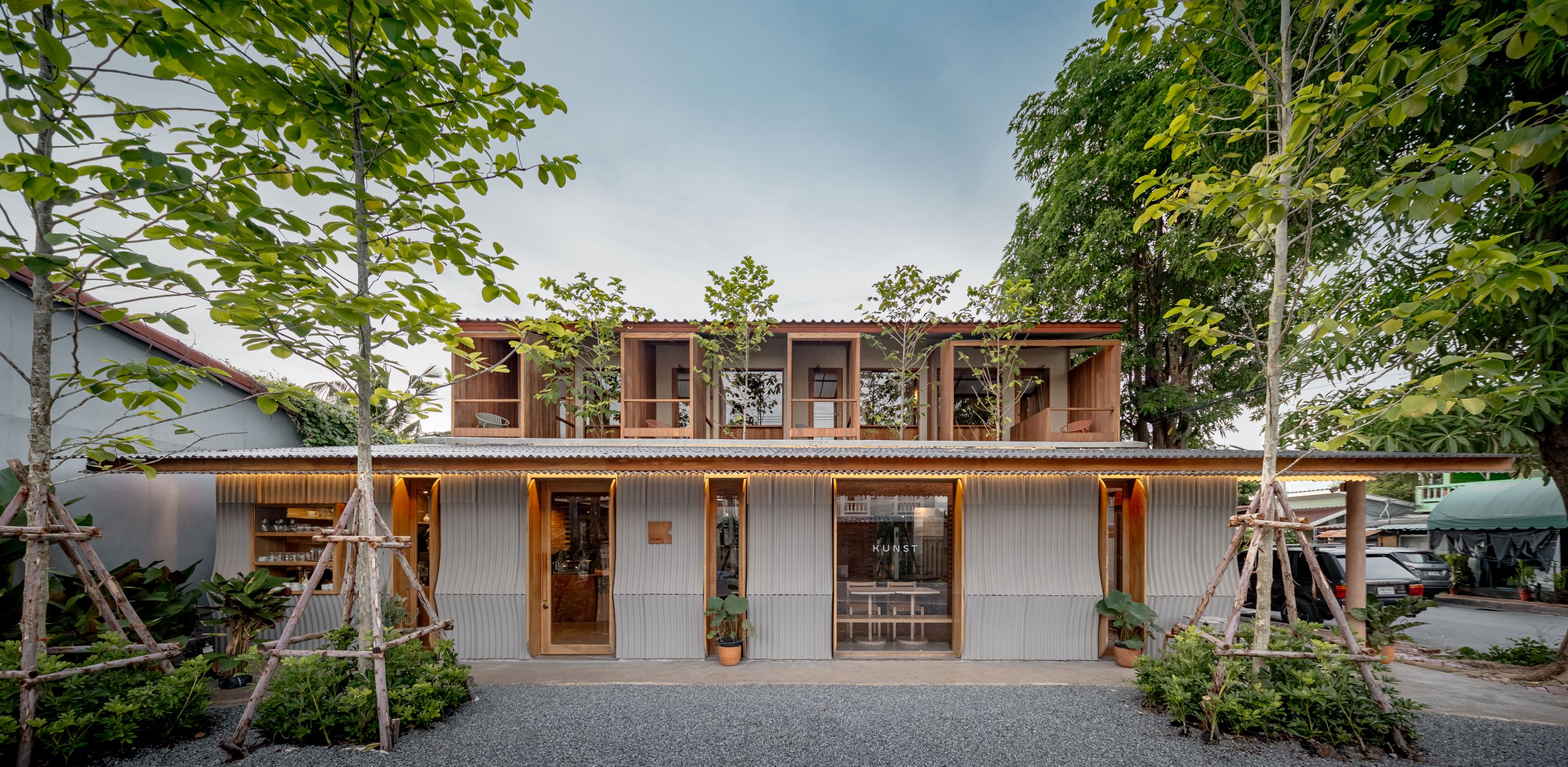 건축물 Kunst Ayutthaya는 보딘차파 팀과 그 가족의 다층적인 삶을 담아낼 수 있는 공간에 대한 필요에서 출발했다. 단순히 하나의 건물이 아니라, 열매를 맺고 영감을 주며 공동체의 성장을 지속시키는 ‘생성적 공간’을 지향한 것이다. 이 과정은 낯설지 않으면서도 새로운 공간에 대한 탐색으로 이어졌고, 이는 보딘차파 특유의 디자인 언어와 해석을 통해 구현됐다.