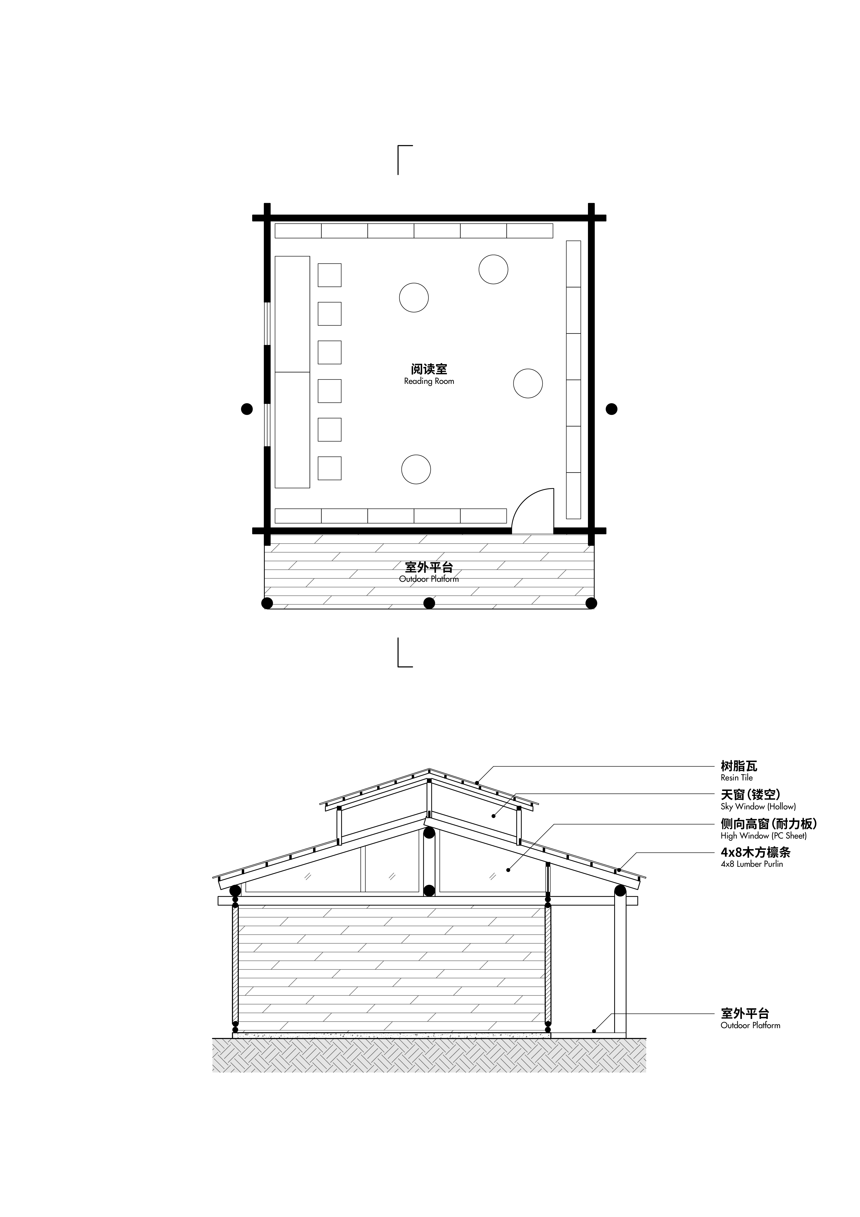 책이 늘어나자 간 씨는 교실과 부엌으로 쓰던 기존 가옥 한 채를 열람실로 리모델링하고자 했고, 건축팀이 설계를 맡게 됐다. 대상 건물은 누족 전통가옥인 적층 목조 가옥(플랫폼형)에 속한다. 이 주거 유형은 이중 지붕 구조와 통나무 벽체로 특징지어진다. 지붕과 벽 사이에는 곡물 건조와 농기구 보관을 위한 틈새 공간이 있고, 벽체가 후퇴하면서 생기는 그레이 스페이스가 외부 공간과 연결된다. 하지만 내부는 5×5m 단일 공간에 작은 창 두 개만 있어 채광과 환기가 열악하다. 이는 독서 공간에 치명적인 문제였다.