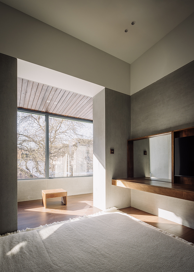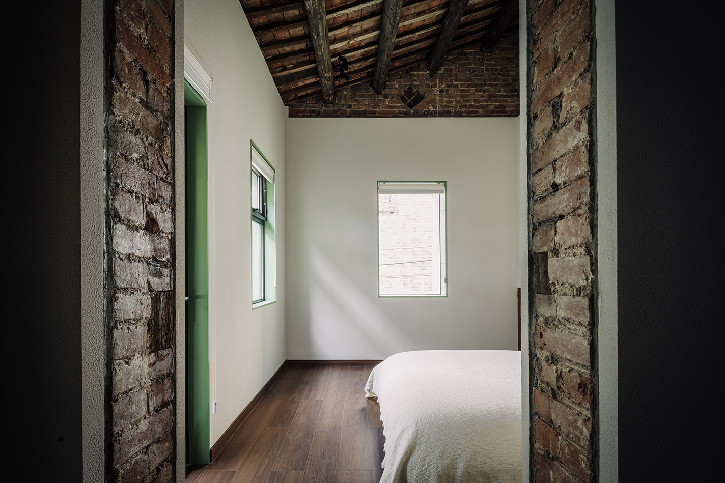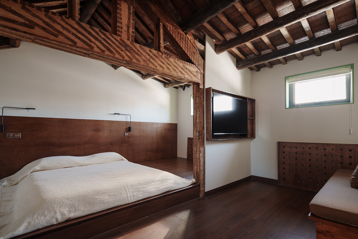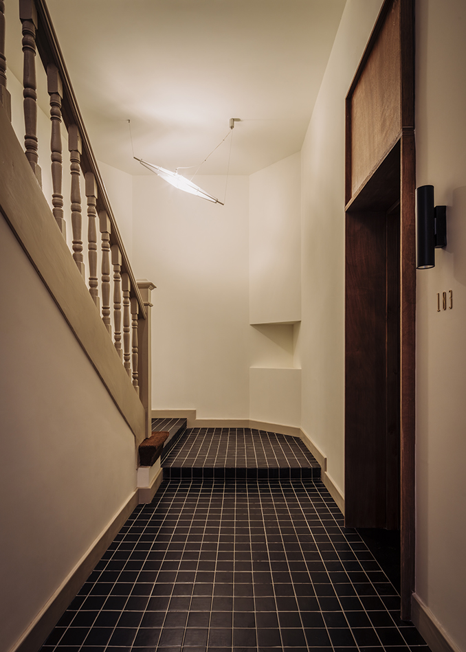 실내는 단순한 일상의 관점에서 접근했다. 시장 수요에 맞추는 동시에, 기존 건물의 재료적 장인정신을 최대한 보존했다. 벽체 노출과 목조 지붕은 20세기 건축기법의 흔적을 드러냈다. 공용부는 기존 계단을 그대로 유지해 시각적 중심으로 삼았고, 다른 벽체는 새로 조립해 계단을 더욱 부각시켰다. 계단을 오르는 과정에서 층마다 열린 창을 통해 과거의 건축과 현재 도시 풍경을 함께 경험할 수 있게 했다.