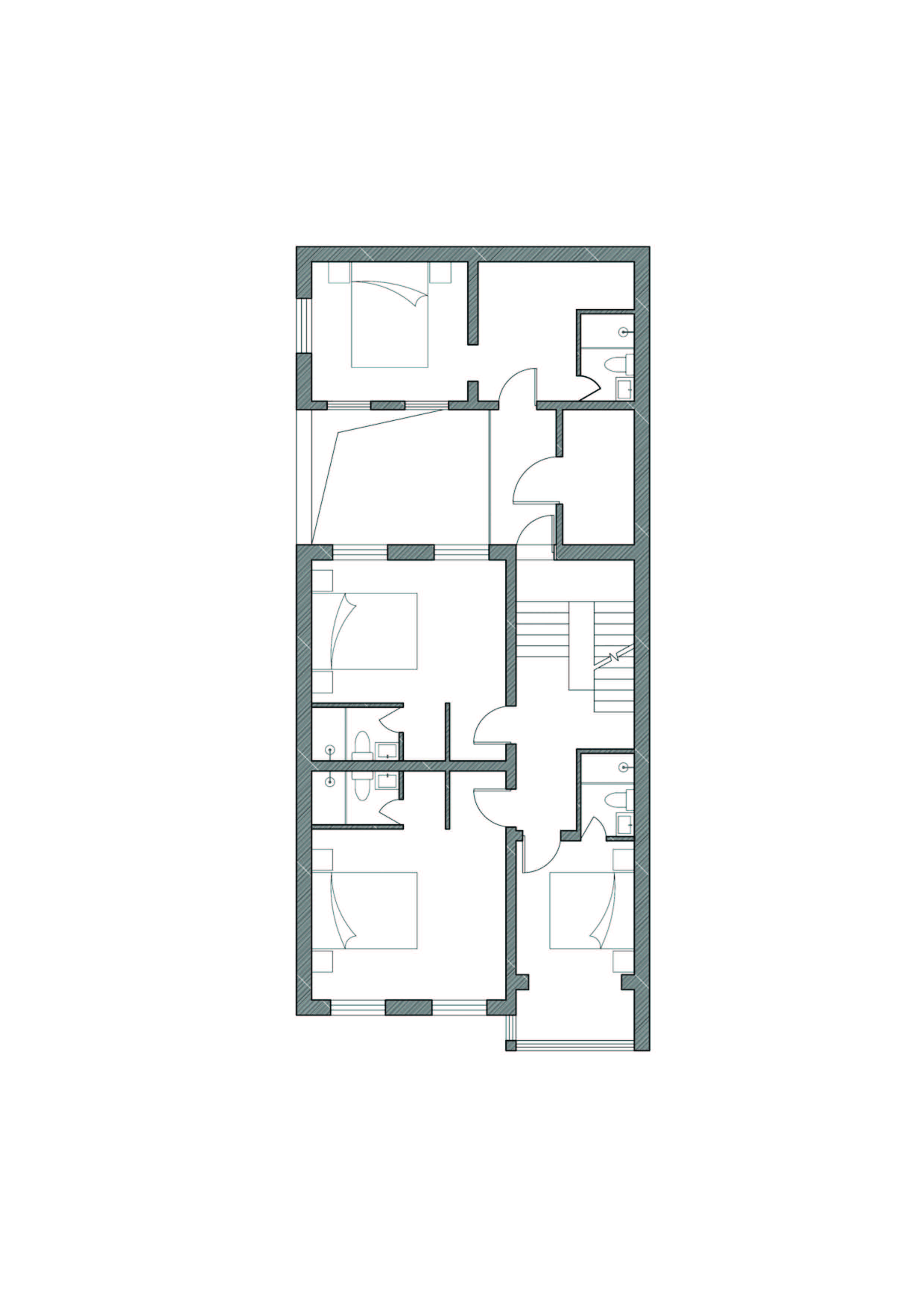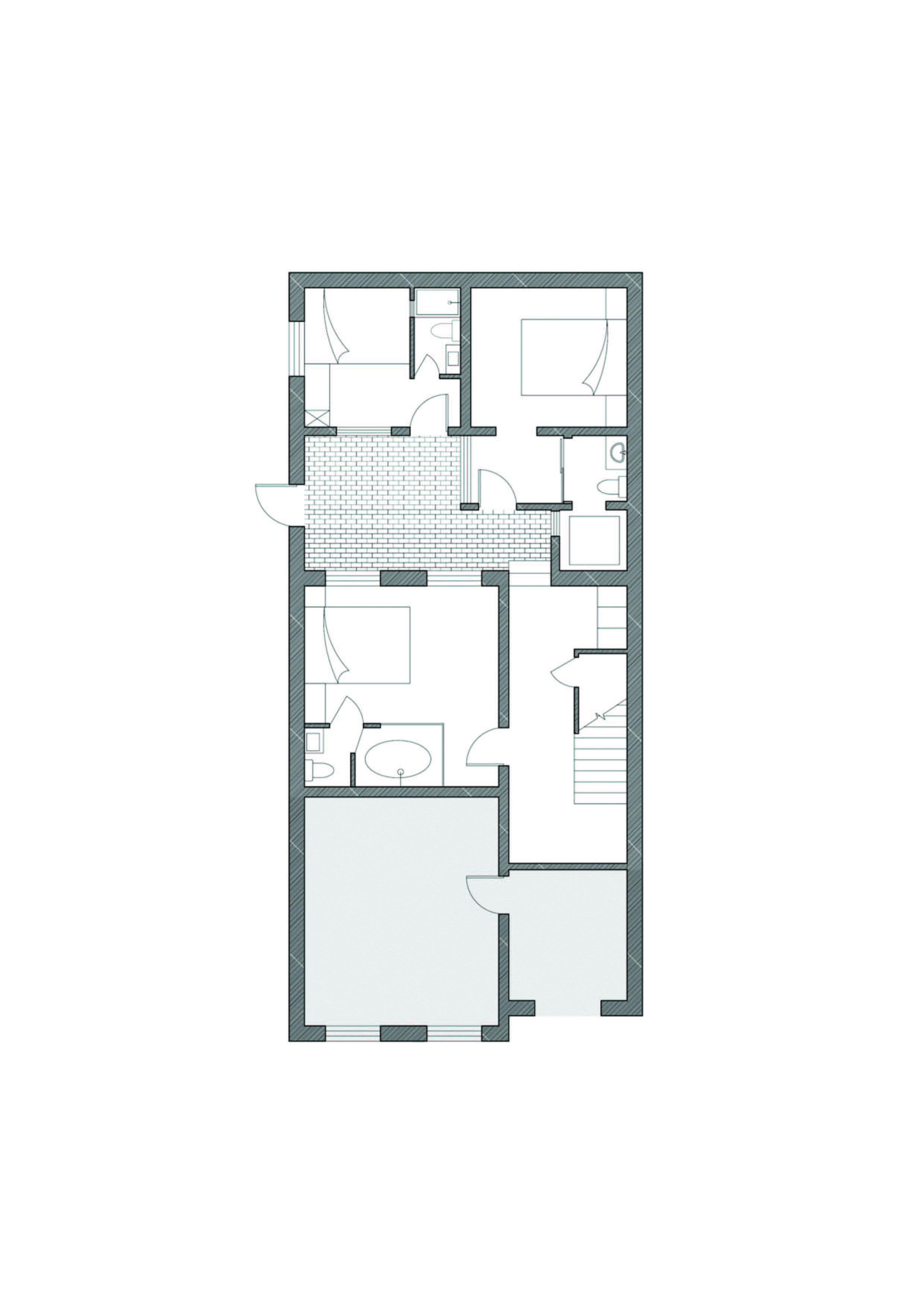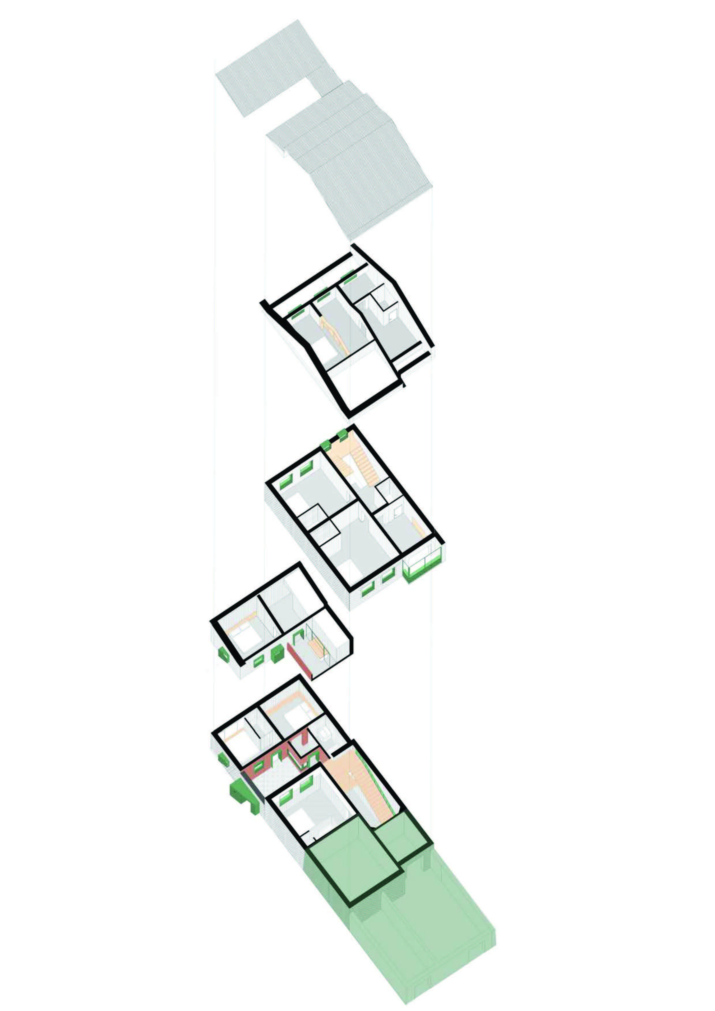 실내는 단순한 일상의 관점에서 접근했다. 시장 수요에 맞추는 동시에, 기존 건물의 재료적 장인정신을 최대한 보존했다. 벽체 노출과 목조 지붕은 20세기 건축기법의 흔적을 드러냈다. 공용부는 기존 계단을 그대로 유지해 시각적 중심으로 삼았고, 다른 벽체는 새로 조립해 계단을 더욱 부각시켰다. 계단을 오르는 과정에서 층마다 열린 창을 통해 과거의 건축과 현재 도시 풍경을 함께 경험할 수 있게 했다.
