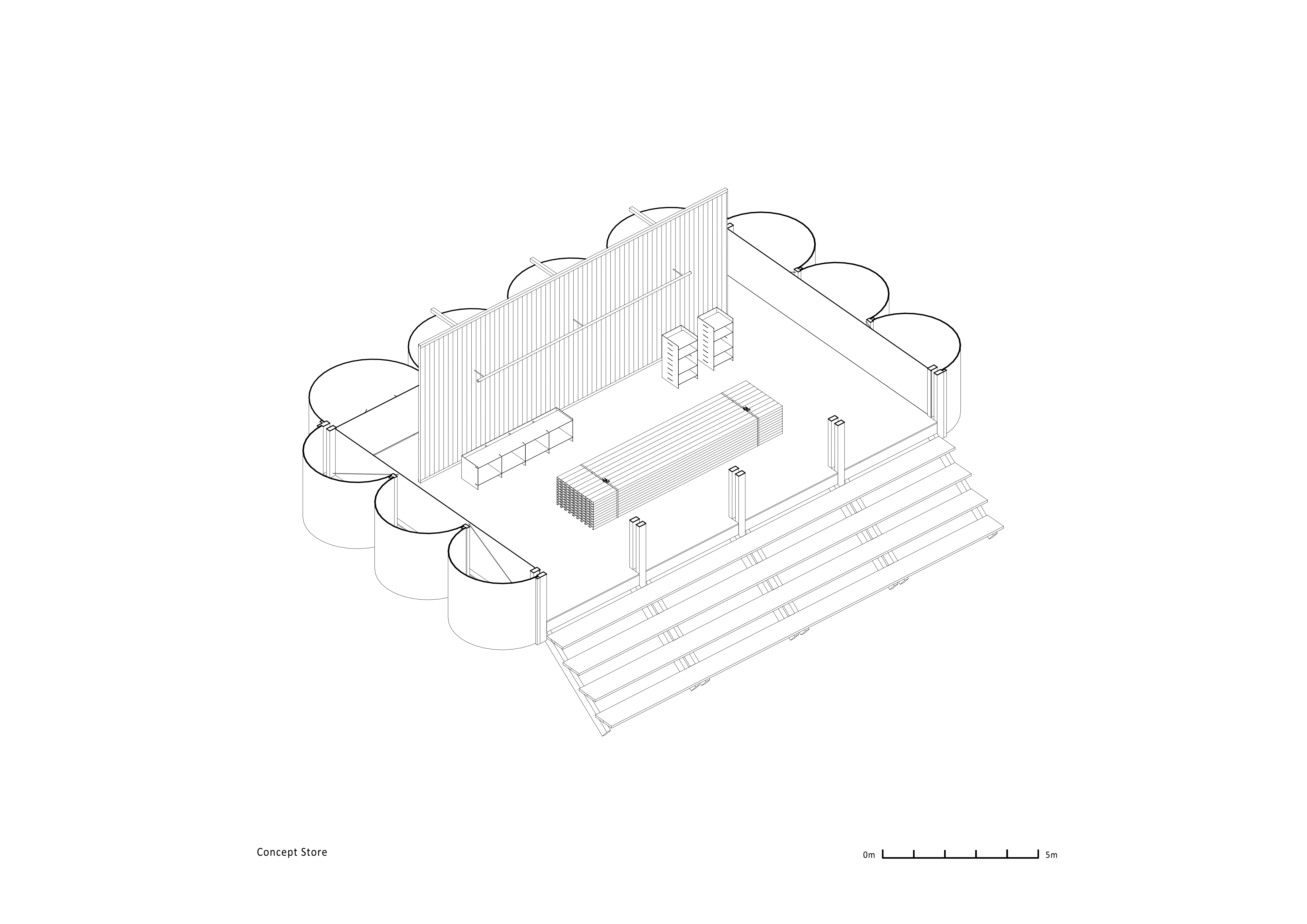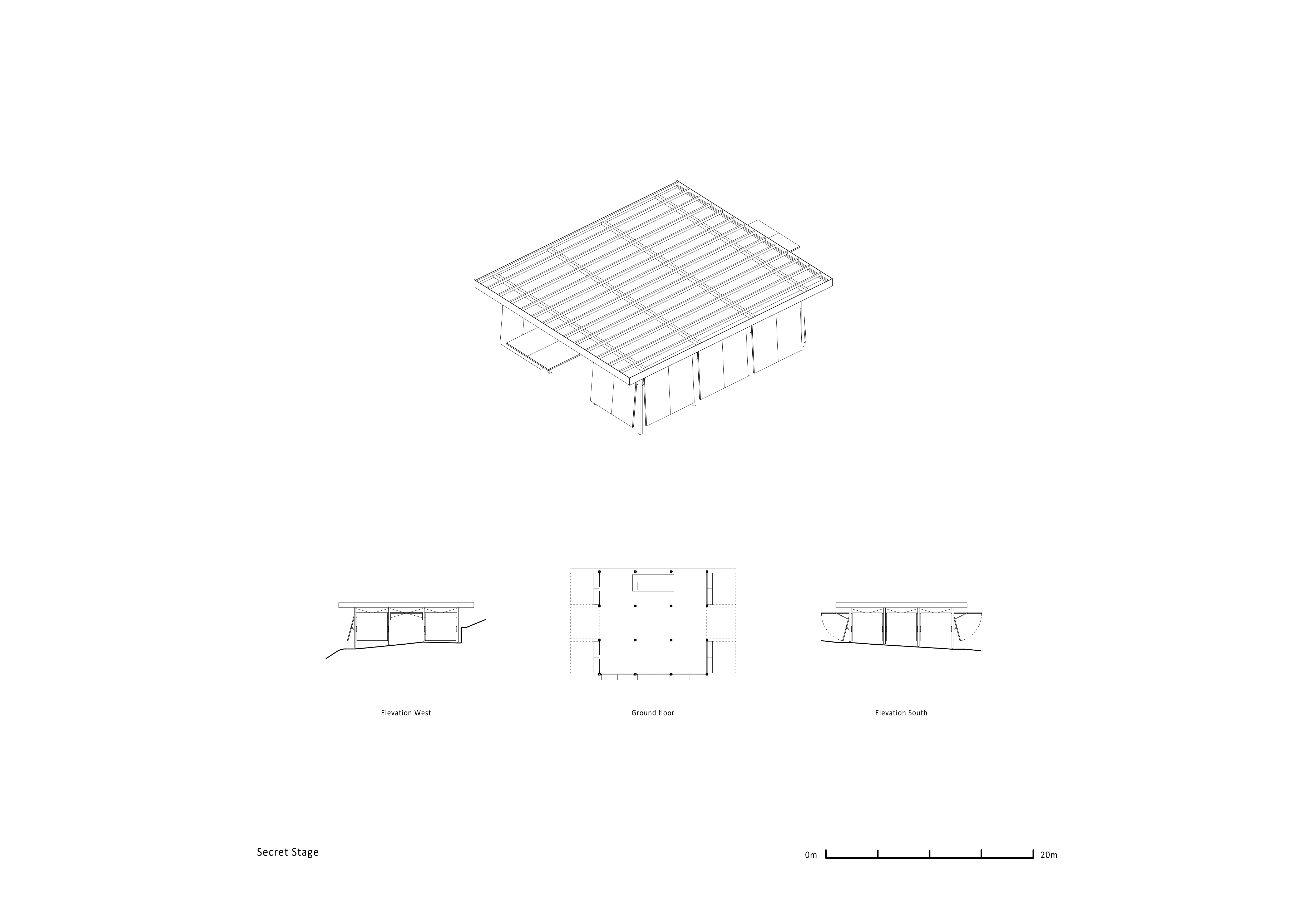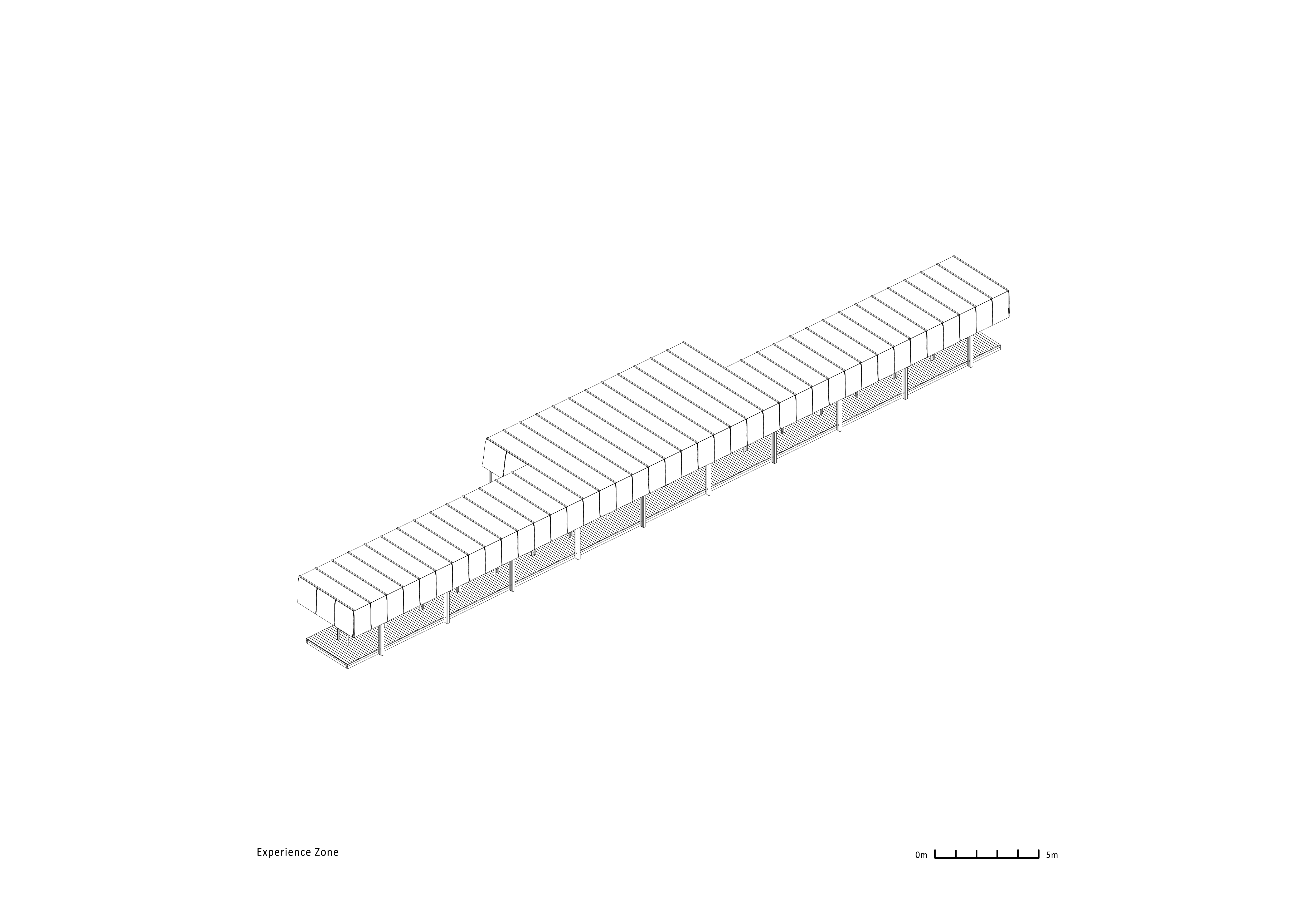 낮과 밤에 따라 개방성과 폐쇄성이 조절되는 가변형 음향·시각적 쉘로 설계되었다. 4x4 목재 기둥 모듈과 평지붕 구조를 갖고 있으며, 피벗 패널로 구성된 파사드는 낮에는 열려 주변 경관을 담고, 밤에는 닫혀 클럽 공간으로 변한다. 유일하게 축제 후에도 영구 구조물로 존치될 예정이며, 관광자원으로 활용된다.