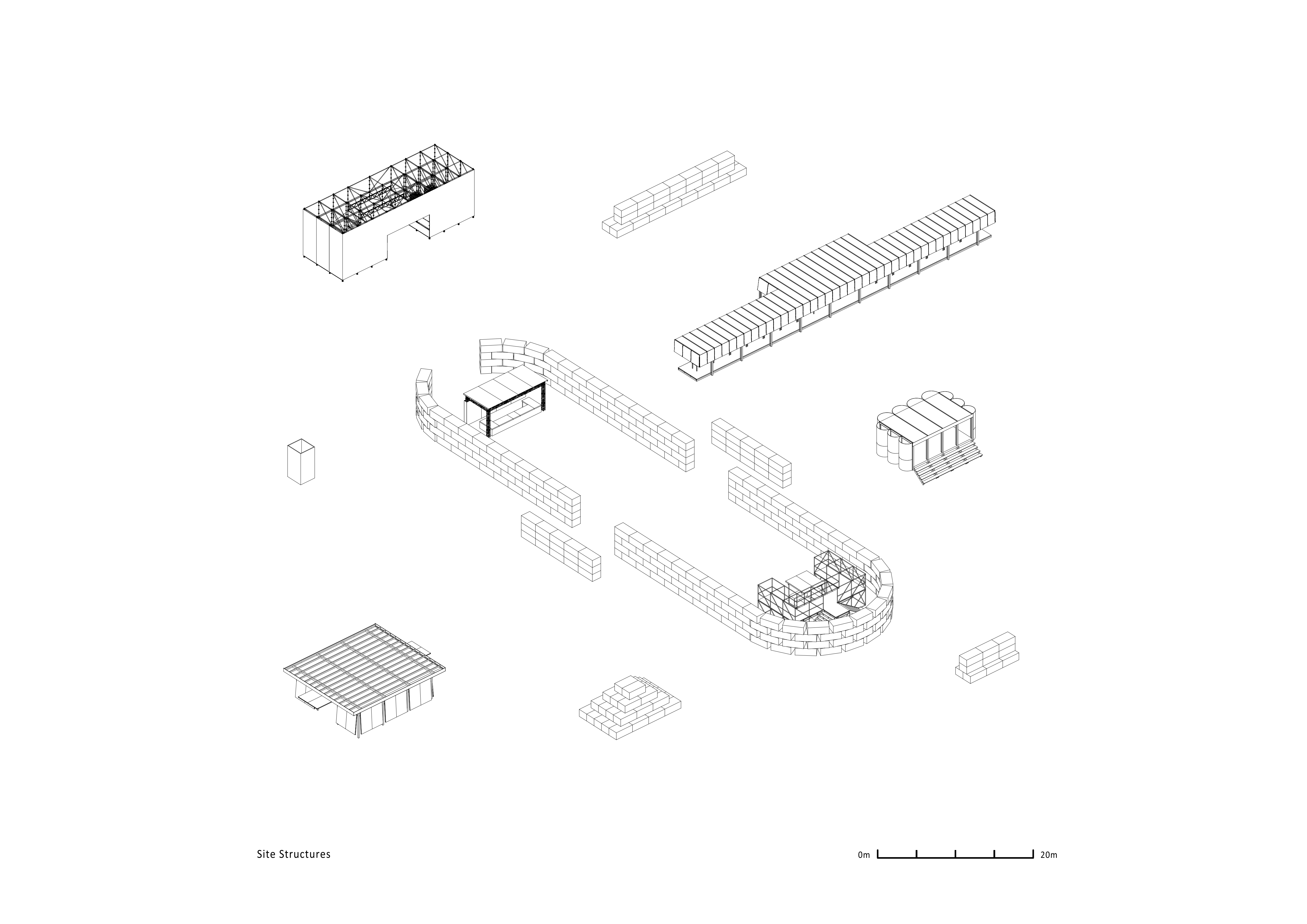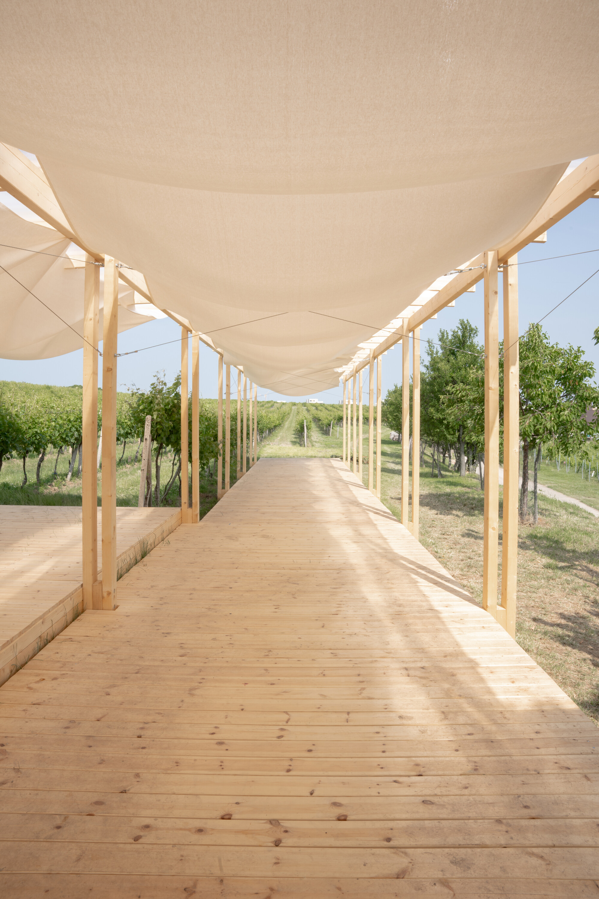 축제 공간은 북쪽의 중심점을 향해 모이는 선형 구역들로 나뉘며, 주변 지형과 포도밭의 리듬에서 영향을 받은 배치를 따른다. 공간 요소들은 어떤 경우에는 시각적 강조를, 어떤 경우에는 환경과의 조화를 통해 다채로운 공간 구성을 이룬다. 입구에서부터 정렬된 구조물들은 축제장 내부의 축을 형성하며, 주요 공간들은 이 축선을 따라 배치된다.